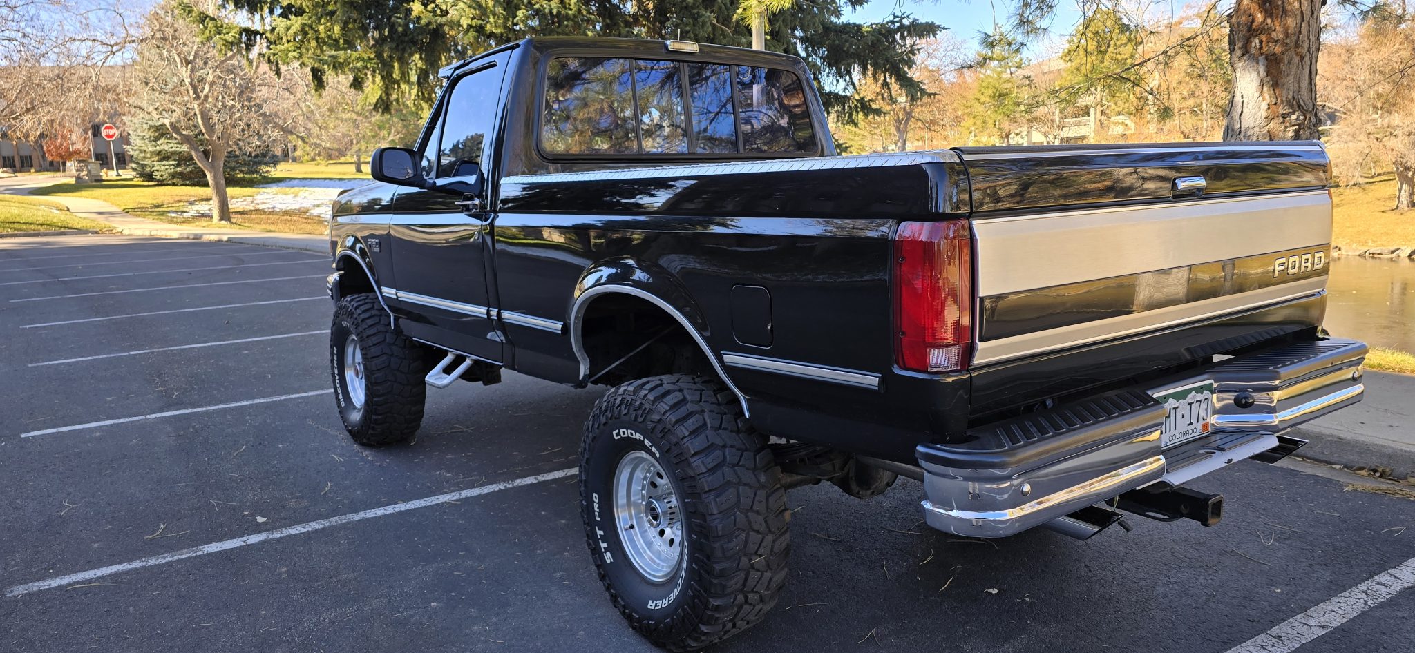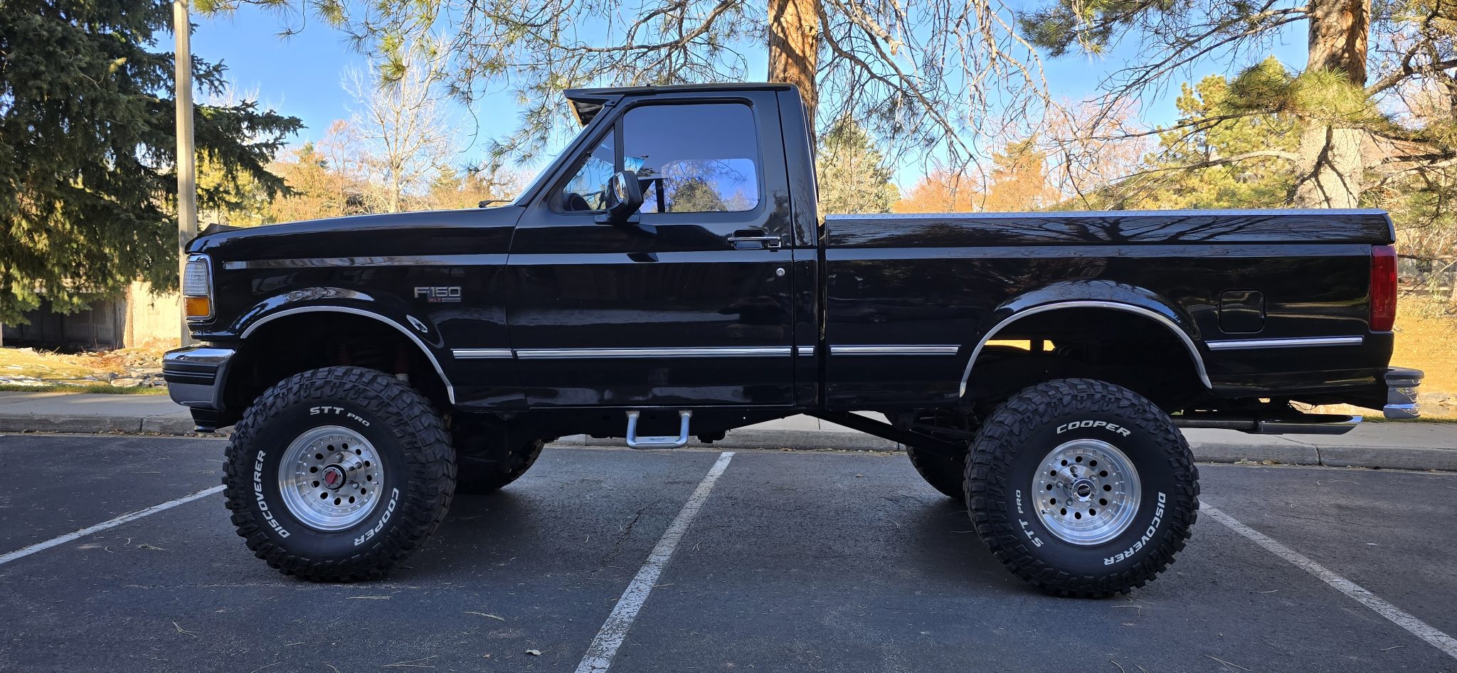 The 15″ deep-dish aluminum wheels are mounted with 35×12.5″ Cooper Discoverer STT Pro tires. The truck rides on a lifted suspension with 6″ Pro Comp shocks, and stopping power is provided by power-assisted front disc and rear drum brakes with a rear anti-lock feature. Recent work consisted of replacing the steering gear and front and rear brake components.