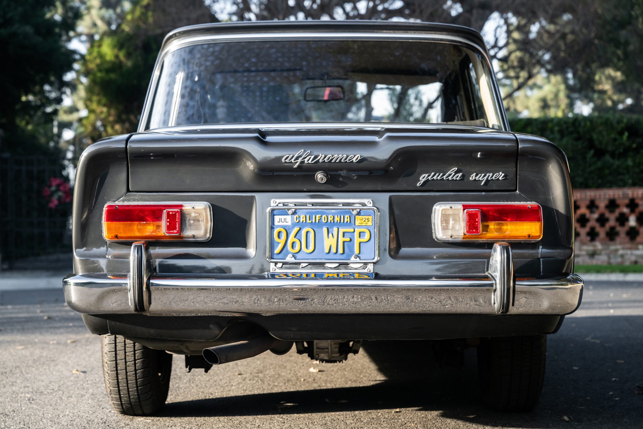 The 14″ steel wheels wear Alfa Romeo–branded hubcaps and are mounted with 165-width Vredestein tires. Stopping power is provided by four-wheel disc brakes, the fluid for which was reportedly flushed in September 2024. The seller notes that the tires are older.
