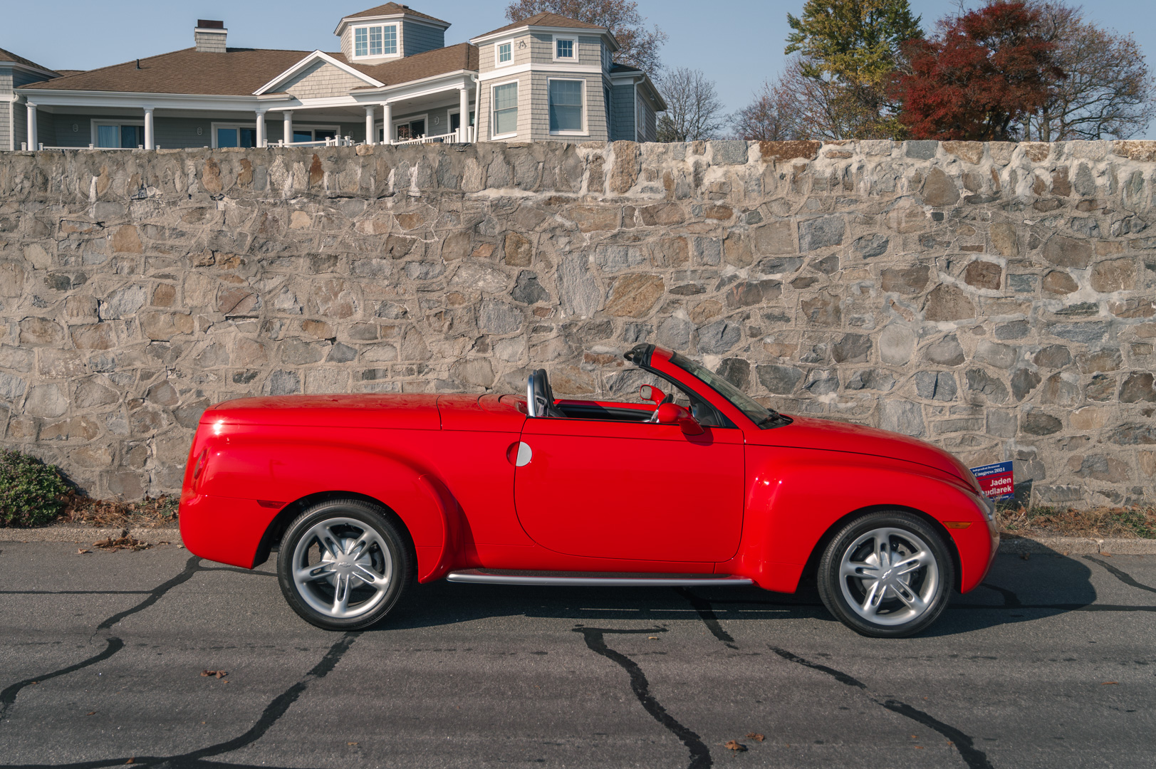 Silver-finished 19″ front and 20″ rear five-spoke cast-aluminum wheels are mounted with Goodyear tires. The SSR was equipped from the factory with a ZQ8 sport suspension featuring an independent front and five-link solid-axle rear setup with front and rear stabilizer bars. Stopping power is provided by four-wheel ventilated disc brakes.