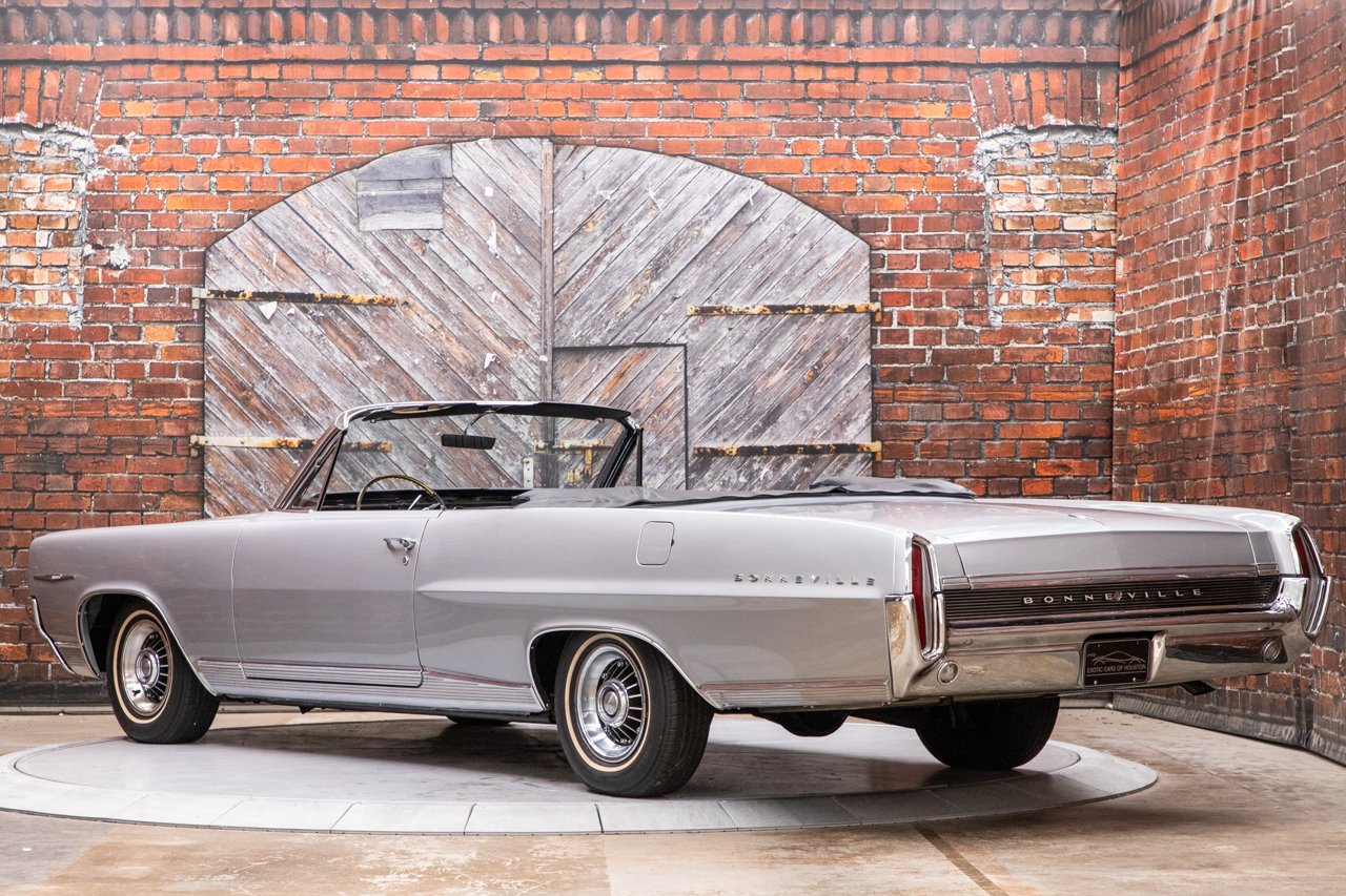 Eight-lug 14″ wheels wear Pontiac Motor Division covers and are mounted with 225/75 Cooper Trendsetter white-stripe tires. The car was equipped from the factory with power steering and power brakes. The brakes were serviced in 2021, and work under current ownership involved overhauling the suspension and replacing the rear springs.