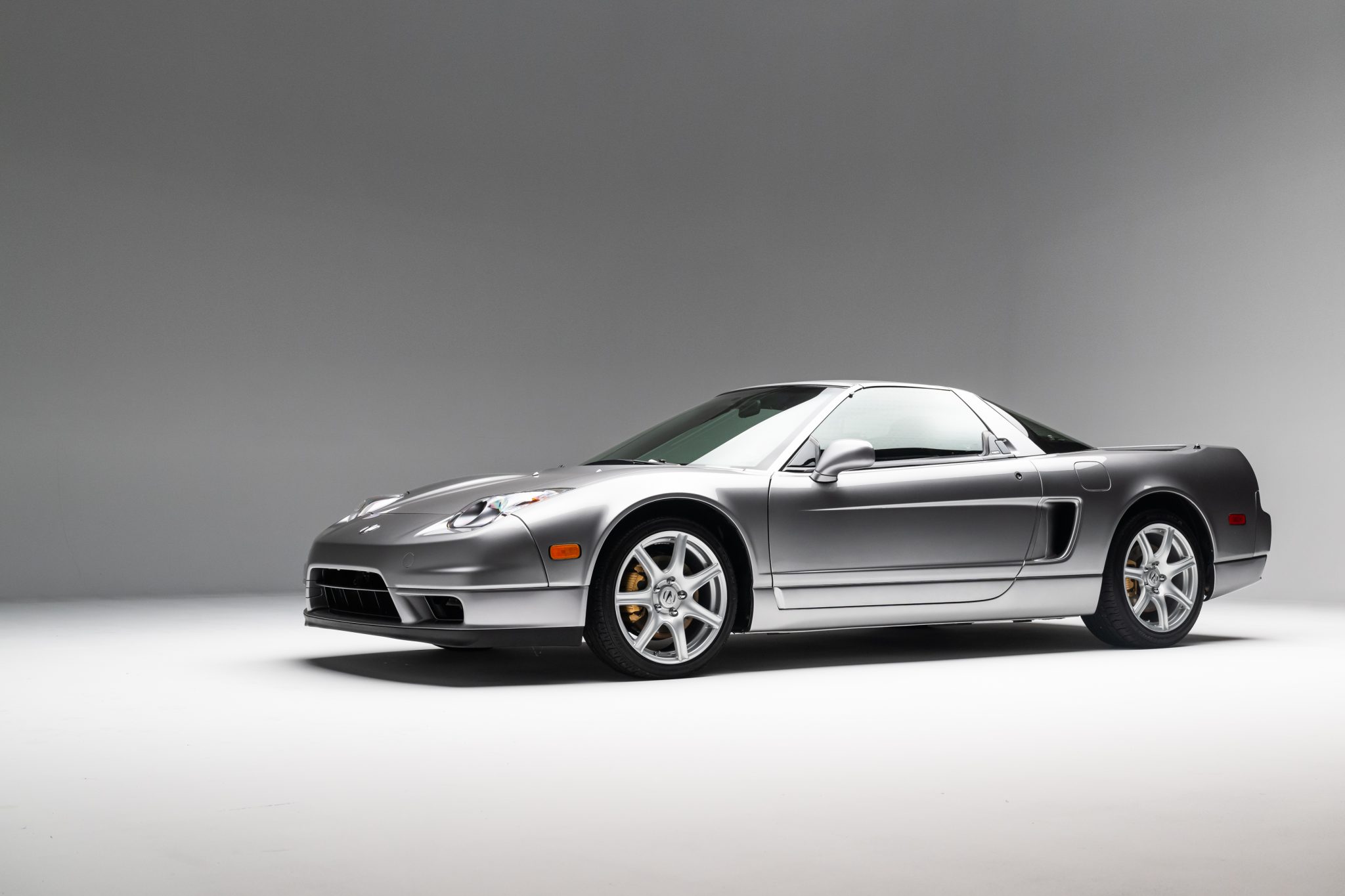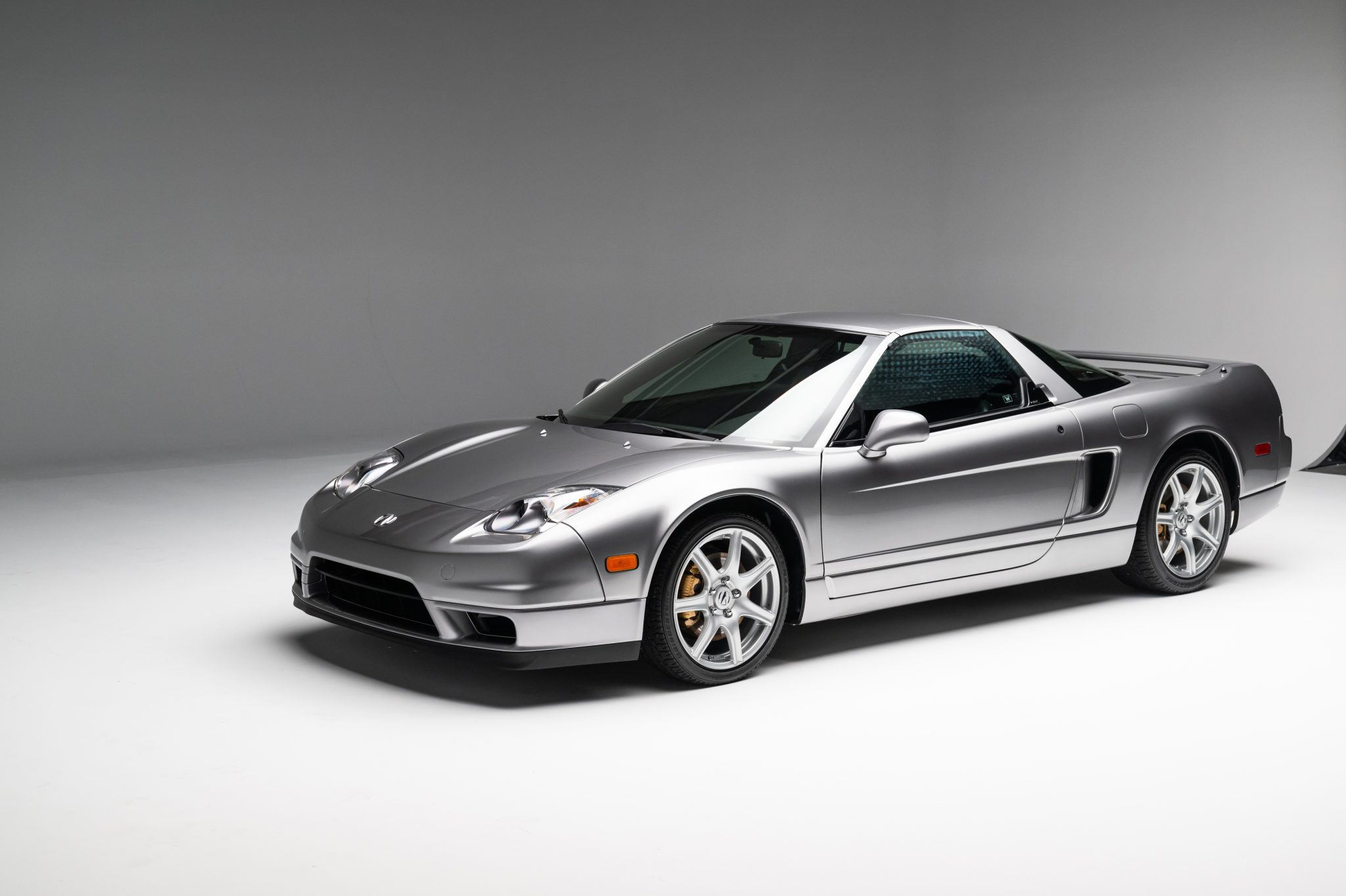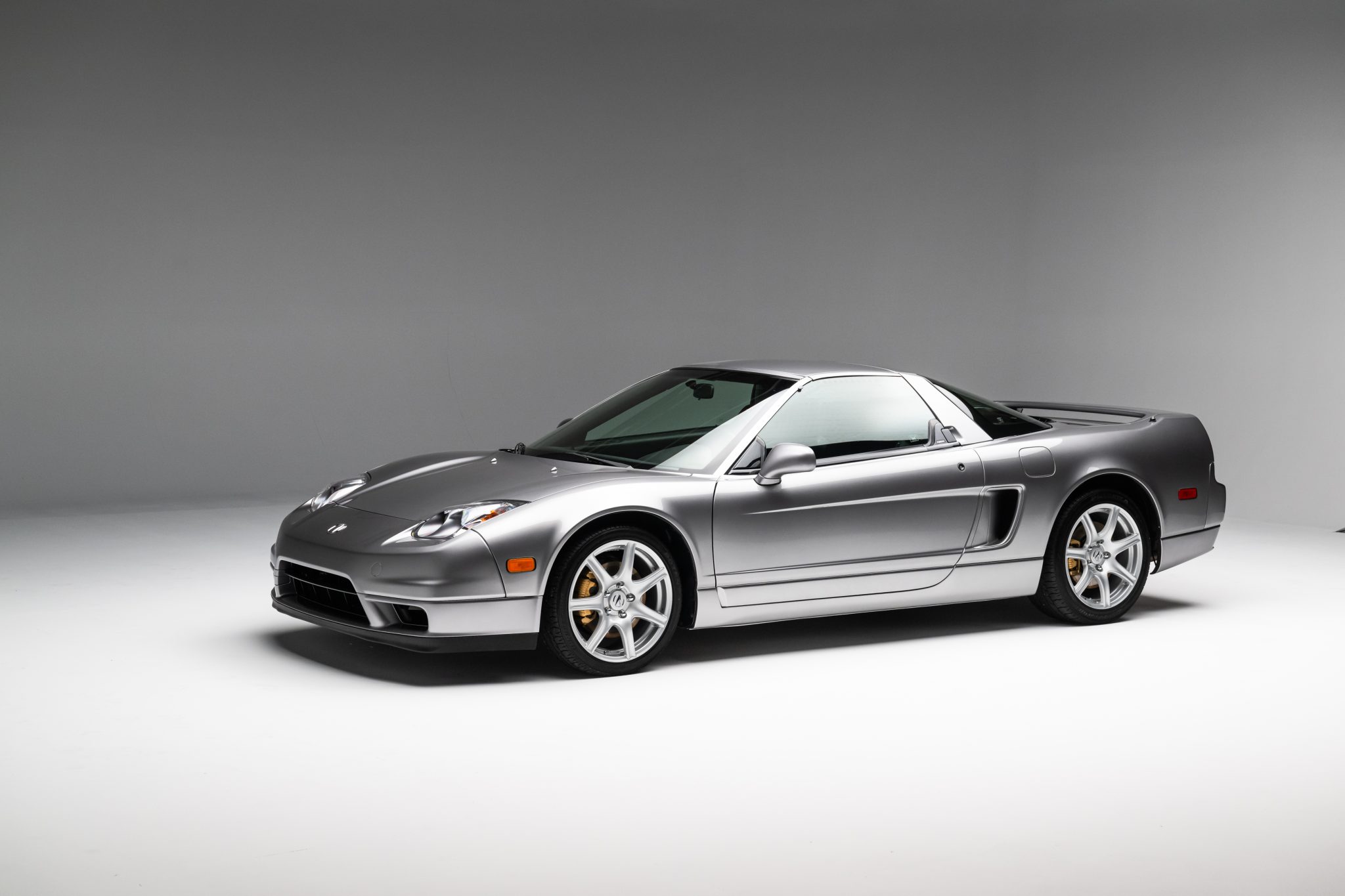 The 17″ forged wheels are mounted with Bridgestone Potenza tires. The car features a four-wheel double-wishbone suspension with front and rear stabilizer bars, and braking is handled by NSX-branded calipers over vented rotors at each corner.