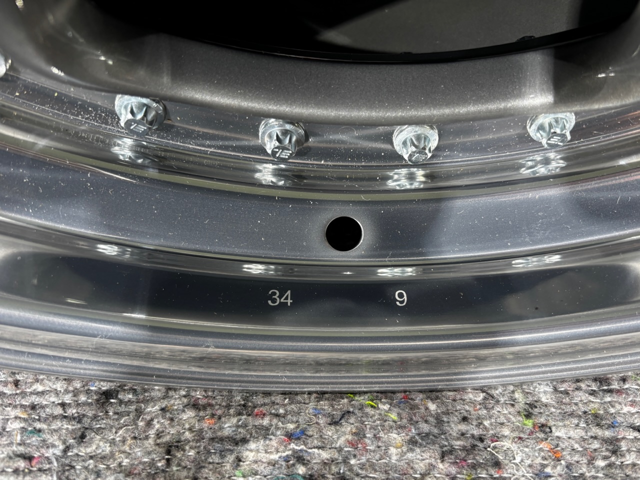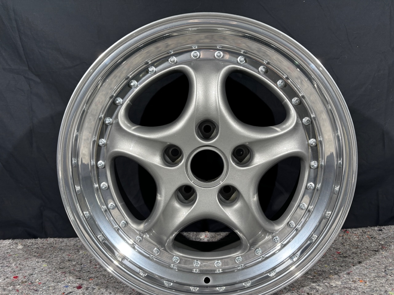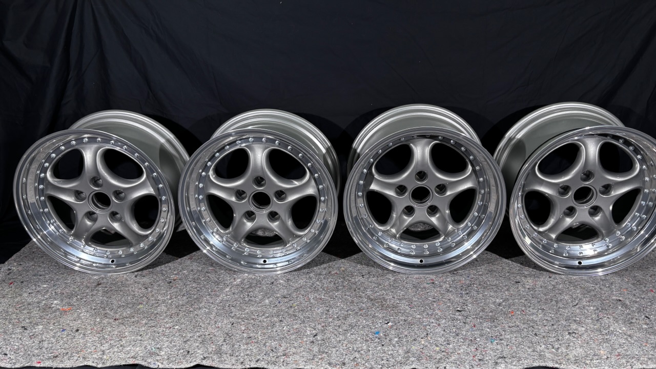 Dimensions, offset markings, and “Speedline for Porsche” are etched on each lip.