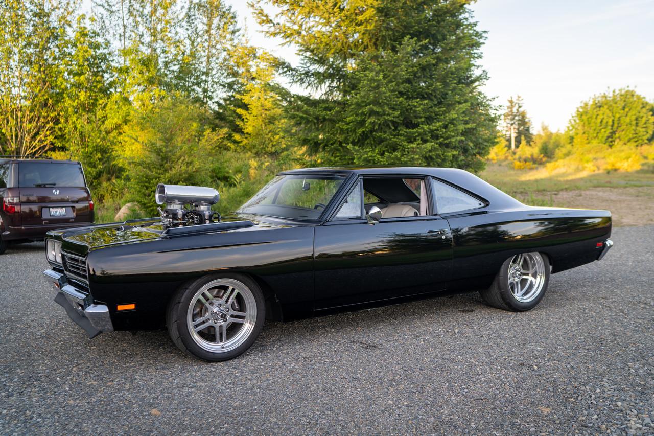 The rear of the car was mini-tubbed to accommodate 18″ Centerline wheels mounted with 245/40 front and 345/35 rear Mickey Thompson ET Street tires that the seller recommends replacing. The suspension features an independent front setup and a live rear axle with front and rear coilovers. Stopping power is provided by Wilwood power-assisted disc brakes. An electric parking brake system is also fitted.