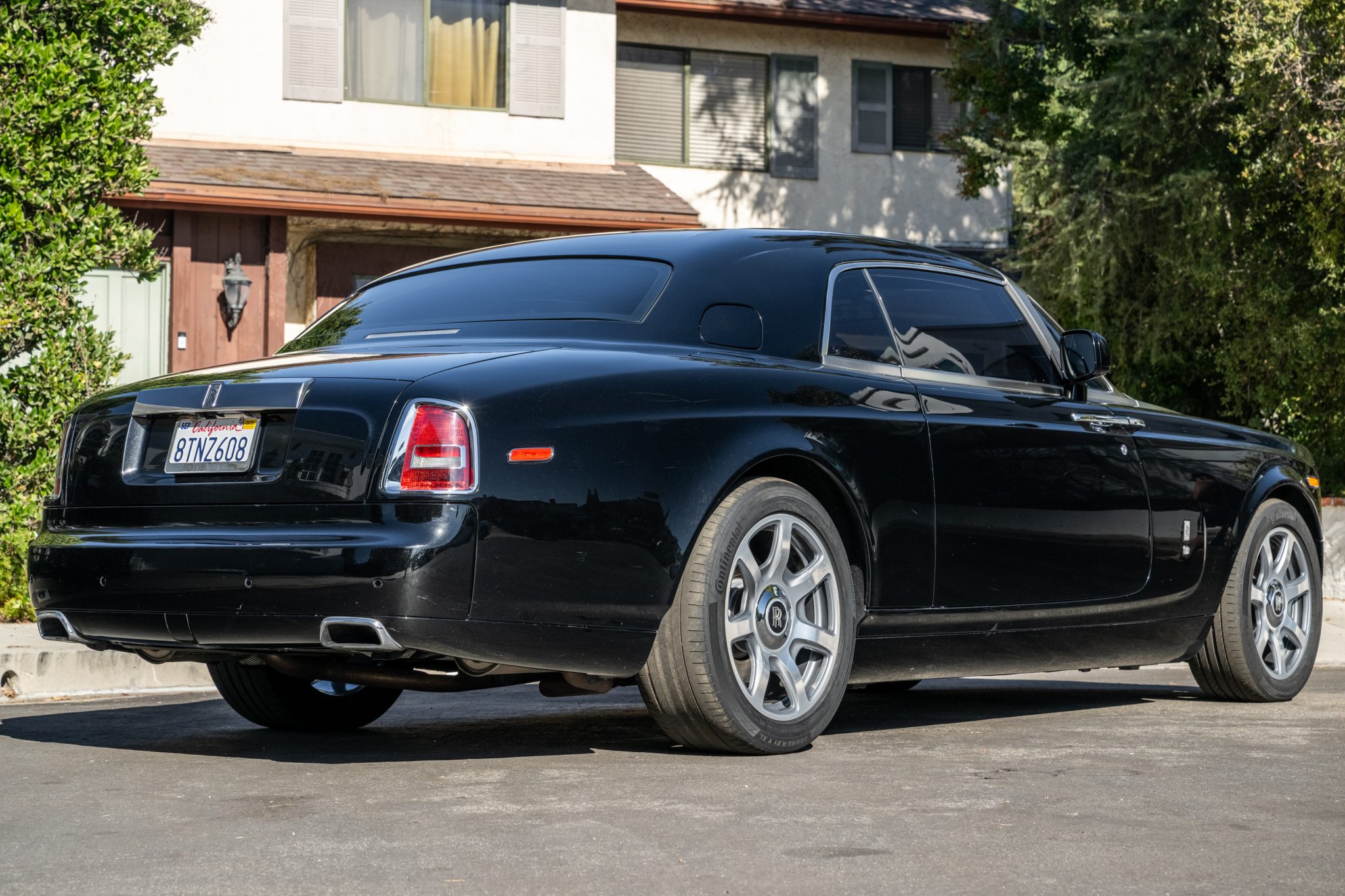 Polished 21″ seven-spoke alloy wheels with self-righting Rolls-Royce monogram center caps are wrapped in 255/50 front and 285/45 rear Continental ContiSportContact tires that have 2017 and 2020 production-date codes. The factory automatic load-leveling suspension is comprised of air-sprung double wishbones up front, a multi-link setup out back, and computer-controlled dampers.