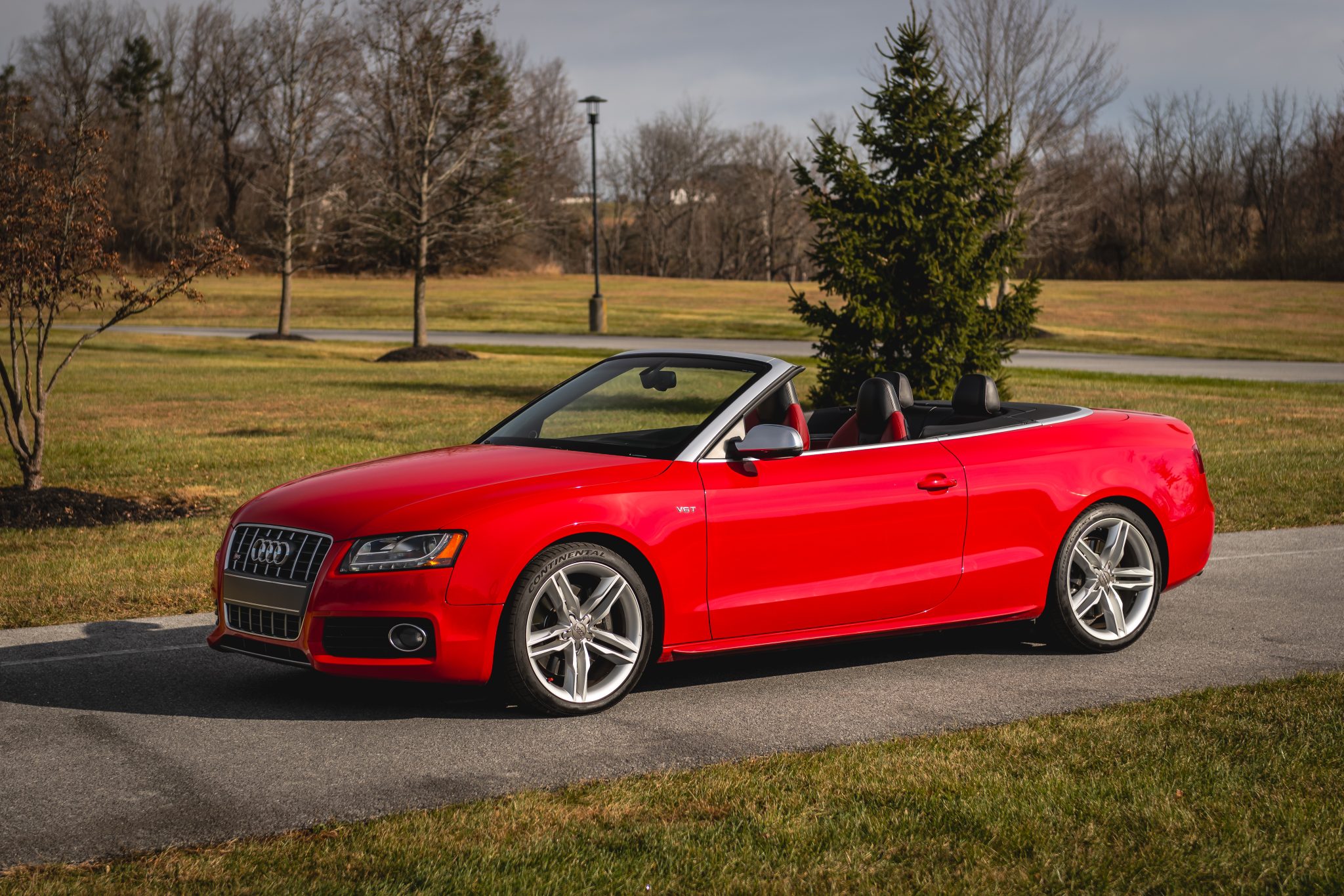 The 19″ double-five-spoke alloy wheels are mounted with 255/35 Continental tires, one of which was replaced in February 2024. The car is equipped with a sport suspension and speed-sensitive power steering, and stopping power is provided by four-wheel disc brakes with S5-branded front calipers.
