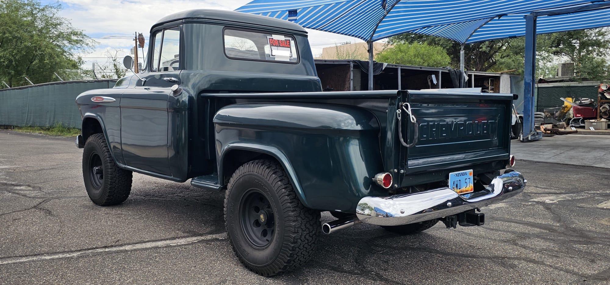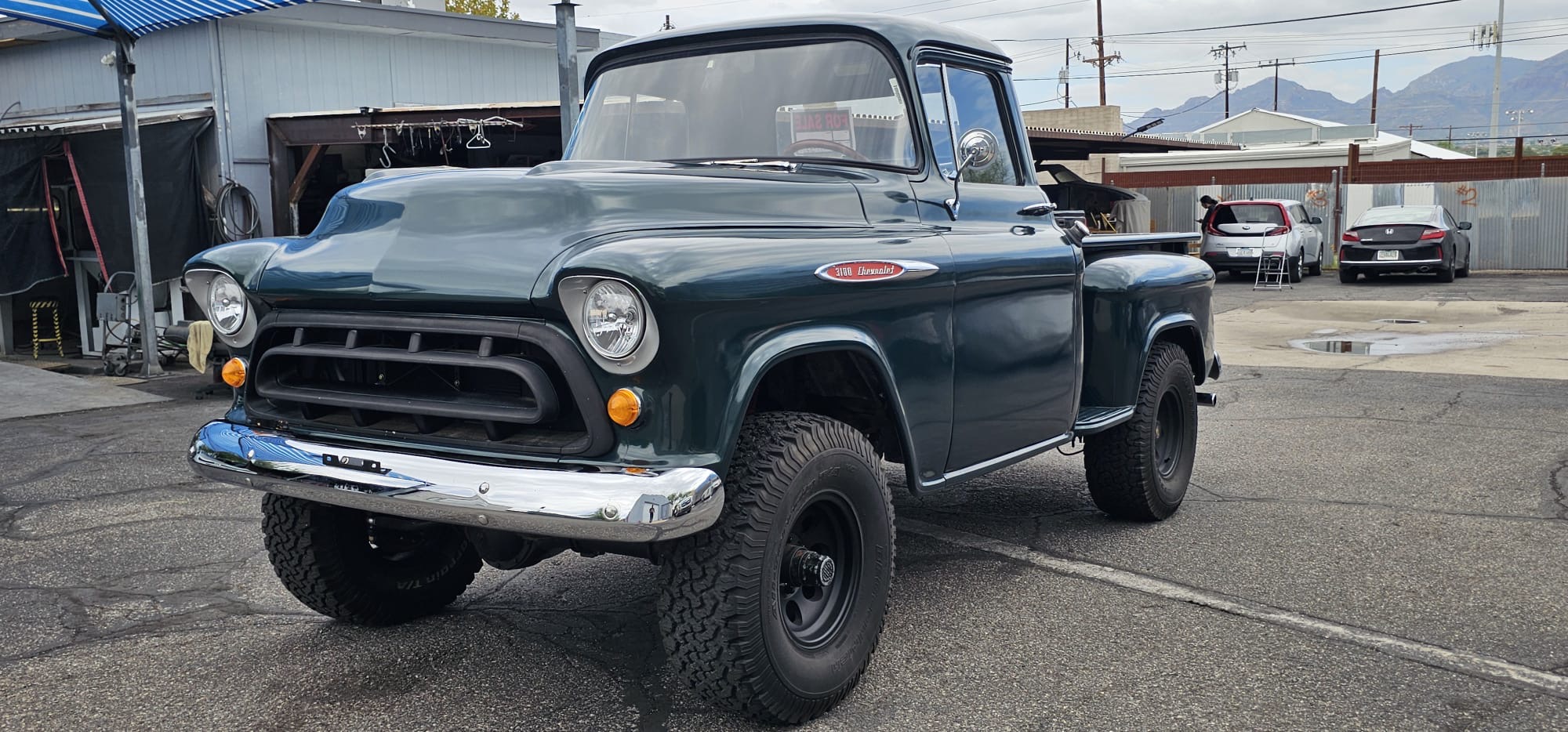 The 15″ aluminum wheels are wrapped in BFGoodrich All Terrain T/A K02 tires measuring 33×12.50″. Stopping power is provided by four-wheel drum brakes. The truck is fitted with power steering and Rancho RS5000 shocks.