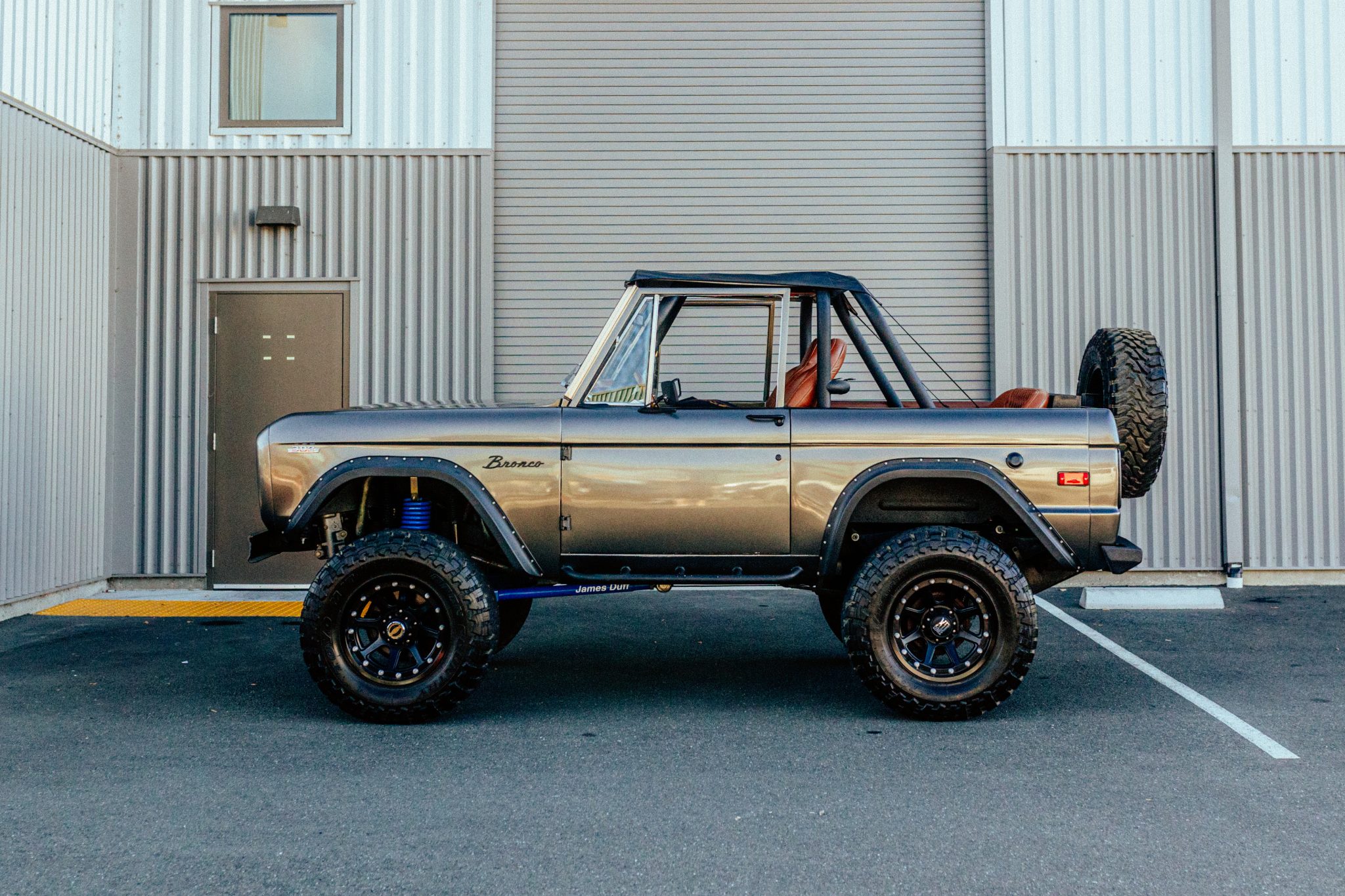 Black 17″ XD wheels are mounted with 295/70 Toyo Open Country M/T tires, and a matching spare is affixed to the swing-away tire carrier. The truck is equipped with manually locking front hubs and a James Duff suspension lift. Braking is handled by front discs and rear drums. The seller recommends an alignment.