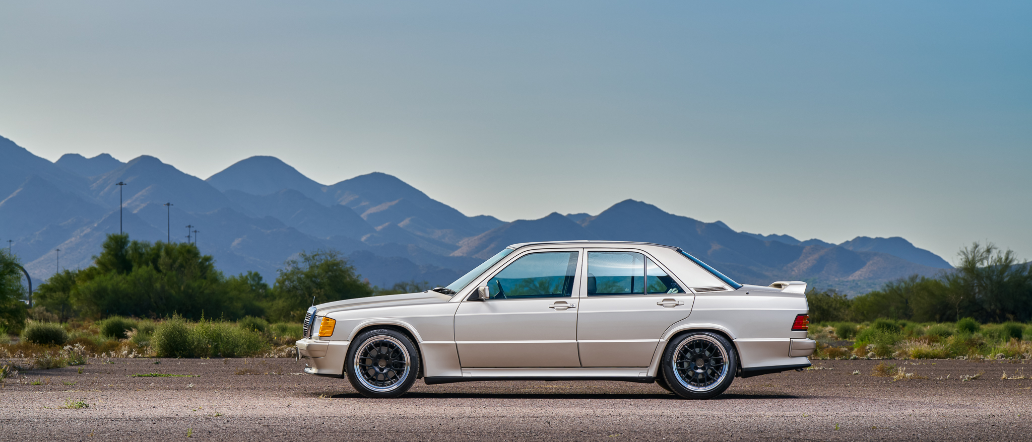 The 17″ ESR modular wheels feature black centers and are mounted with 215/45 front and 225/45 rear Pirelli P Zero tires. The self-leveling suspension was removed during previous ownership, and the power-steering system was resealed in 2022. Braking is handled by four-wheel ventilated discs with ABS.