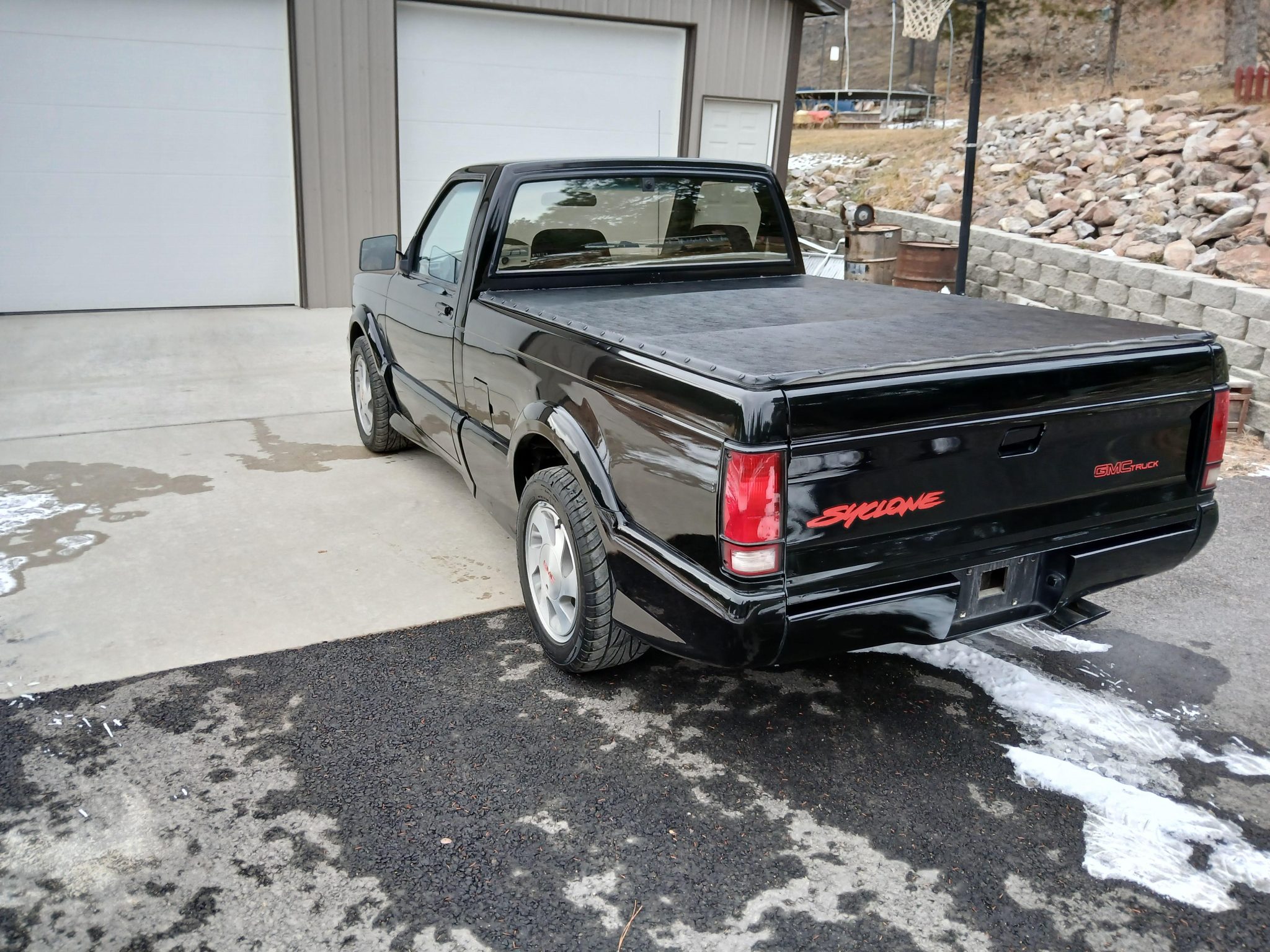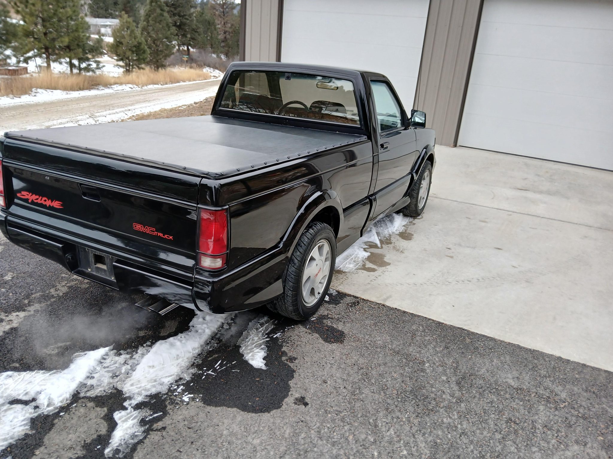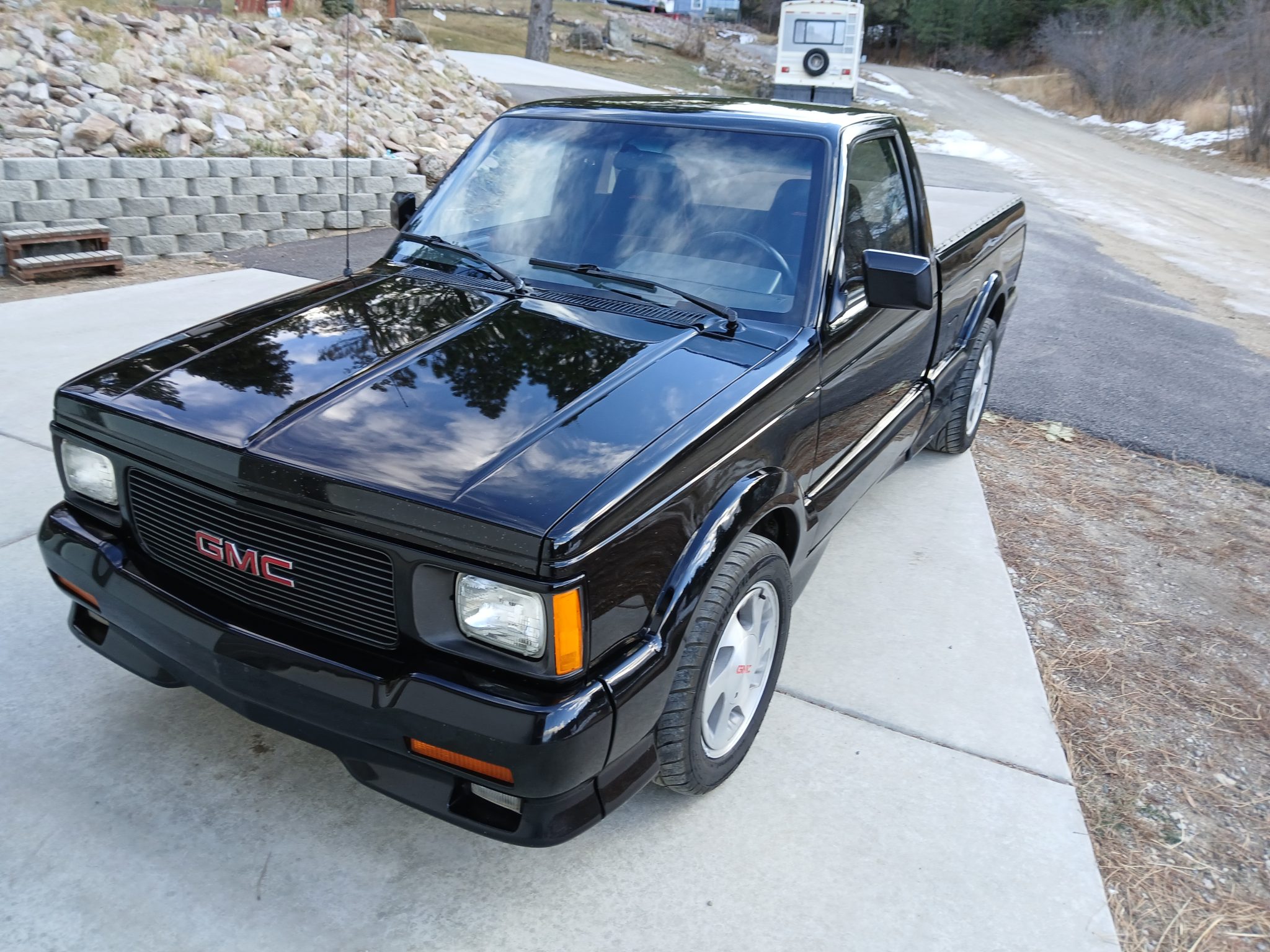 Turbine-style 16″ aluminum wheels wear GMC-branded center caps and are mounted with Cooper Zeon ZPT tires. The truck is equipped with power steering, a sport-tuned suspension with Bilstein shocks, and four-wheel anti-lock brakes with discs up front.