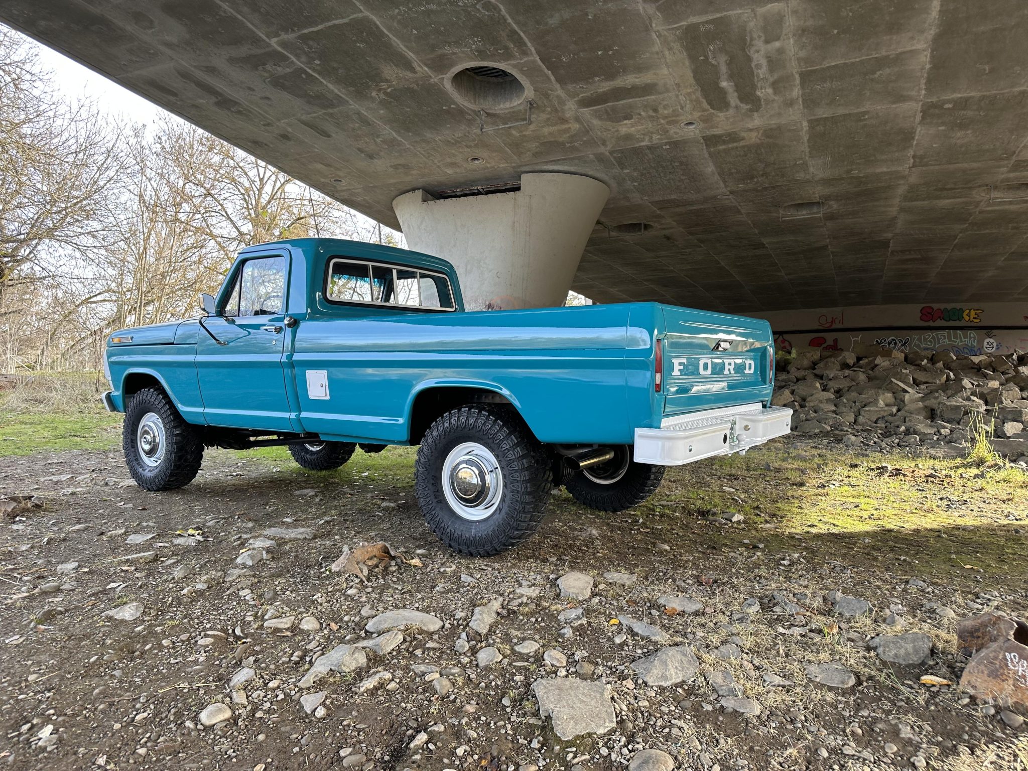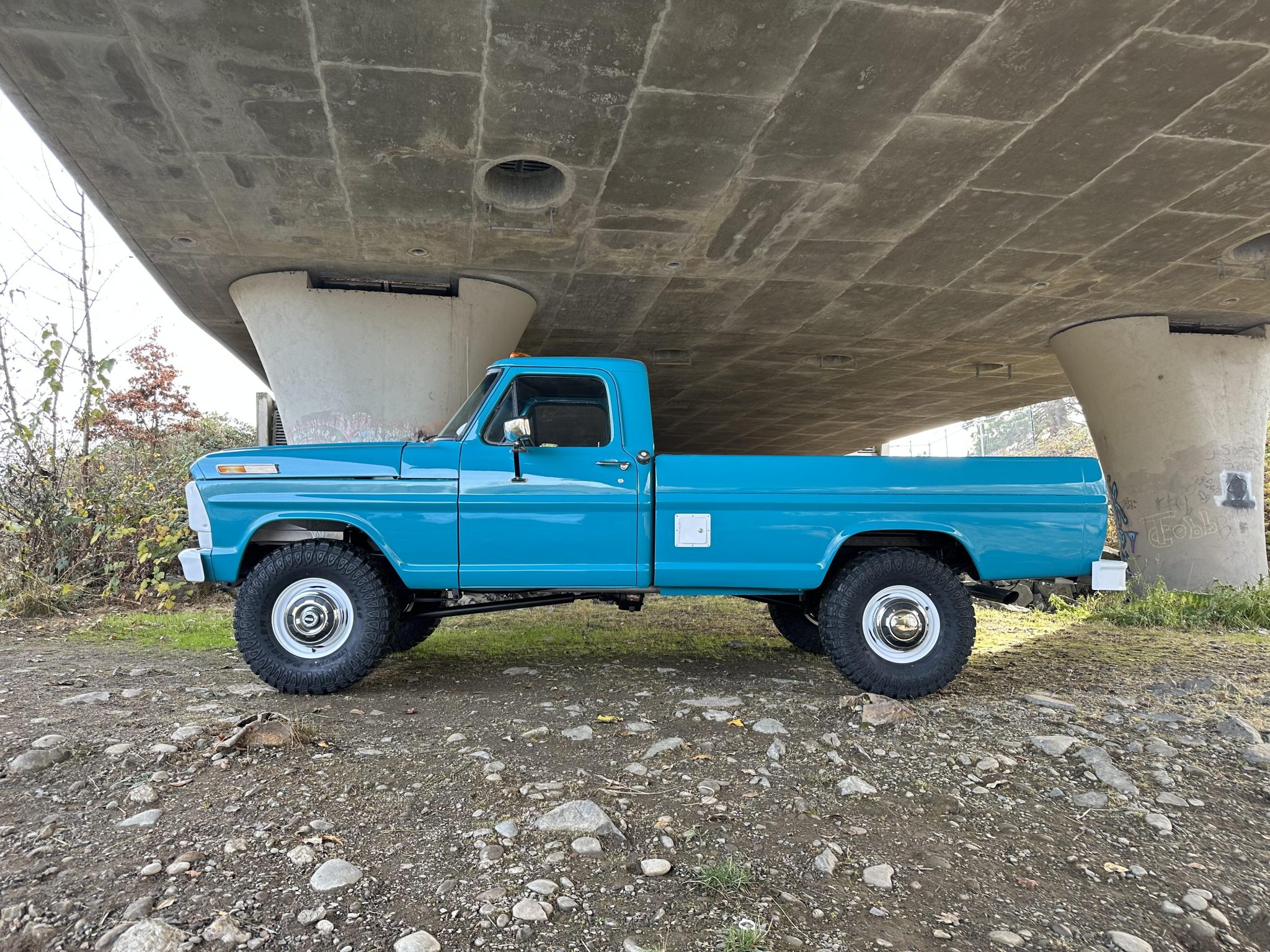 The 16″ steel wheels were repainted white and mounted with 315/75 Atlas Paraller M/T tires in preparation for the sale. Additional work included replacing the shock absorbers and adding power steering. The truck is equipped with manually locking front hubs, and braking is handled by power-assisted drums at each corner.
