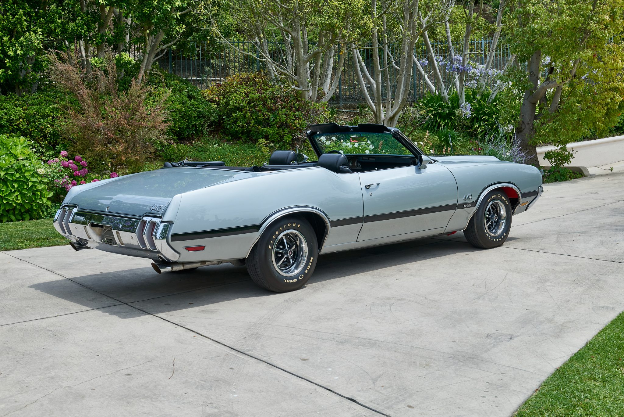 The Super Stock I 14″ wheels are mounted with reproduction Firestone Wide Oval tires. The car is equipped with power steering, and braking is provided by power-assisted front discs and rear drums.