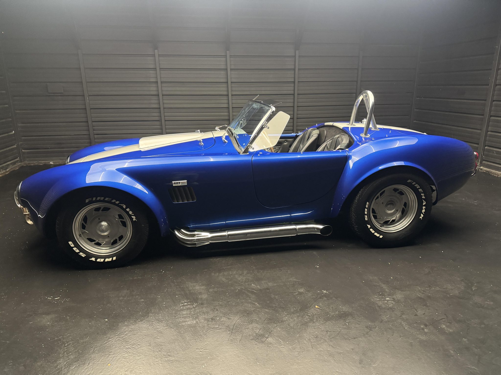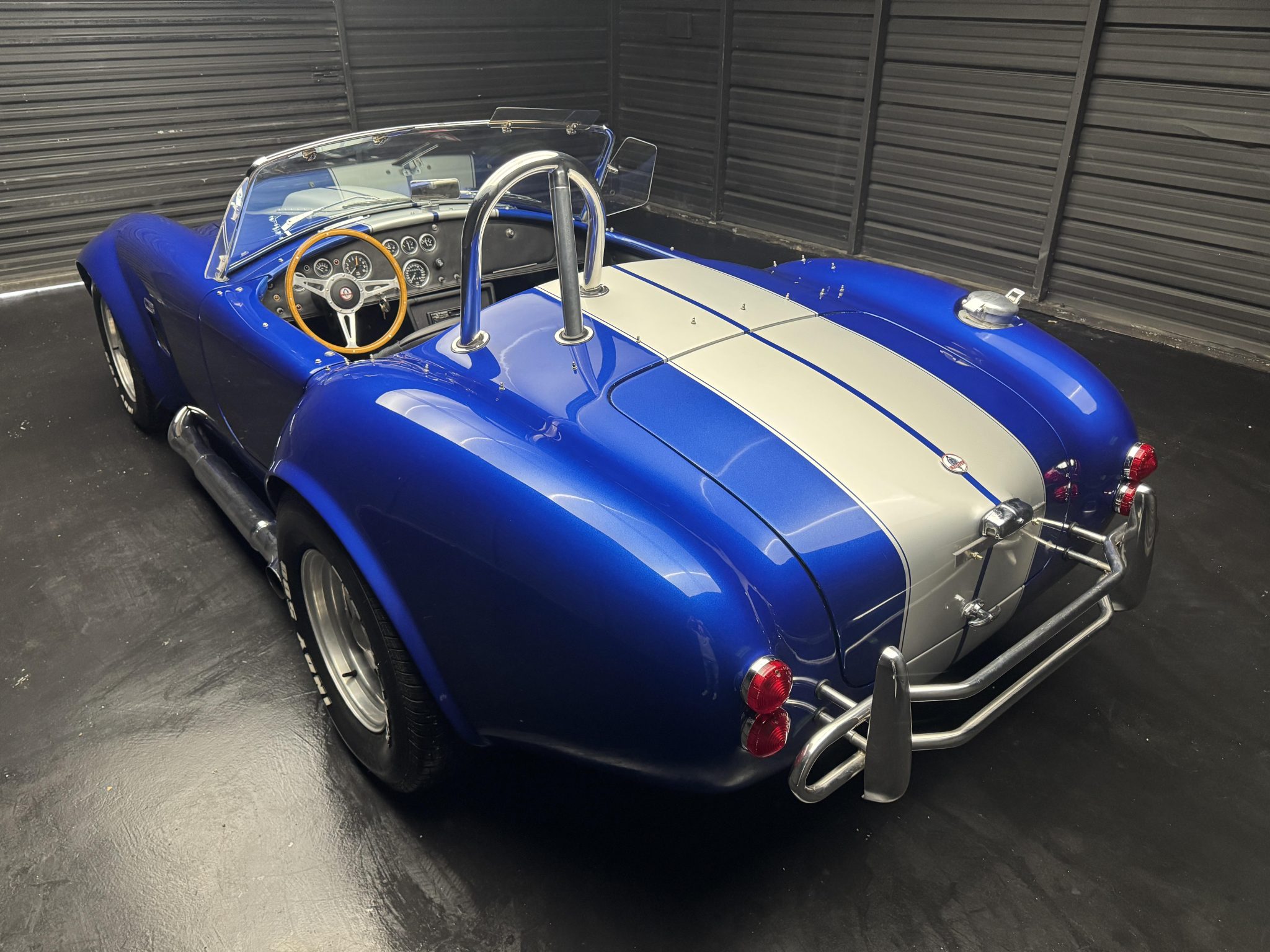 The 15″ Center Line wheels are mounted with Firestone Firehawk tires measuring 235/60 up front and 275/60 out back. The car is equipped with independent suspension, and stopping power is provided by four-wheel discs.