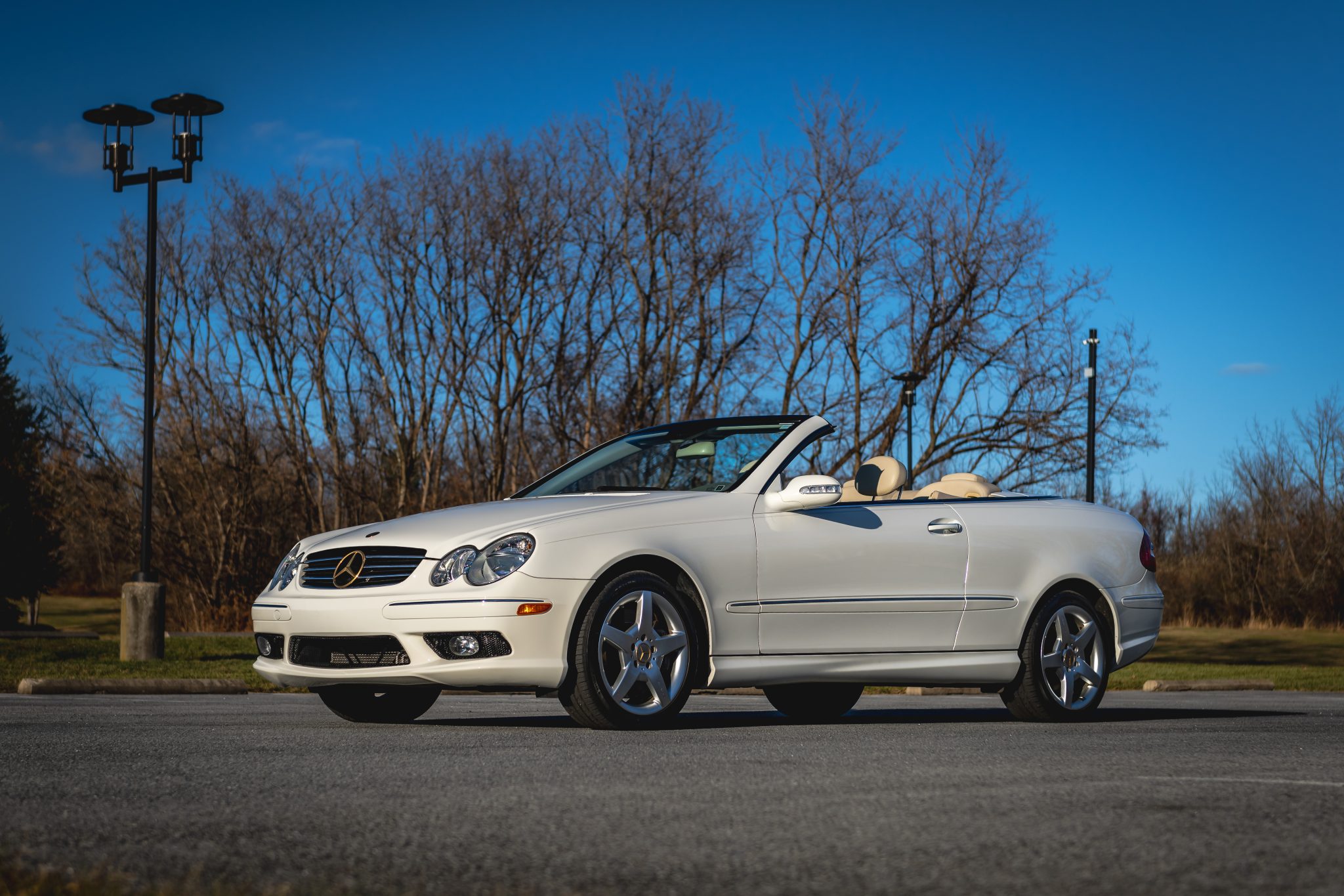 Silver 17″ five-spoke AMG wheels are mounted with Sailun Atrezzo tires. The car is equipped with an Electronic Stability Program (ESP) as well as an independent front and multilink rear suspension. Stopping power is provided by four-wheel discs.
