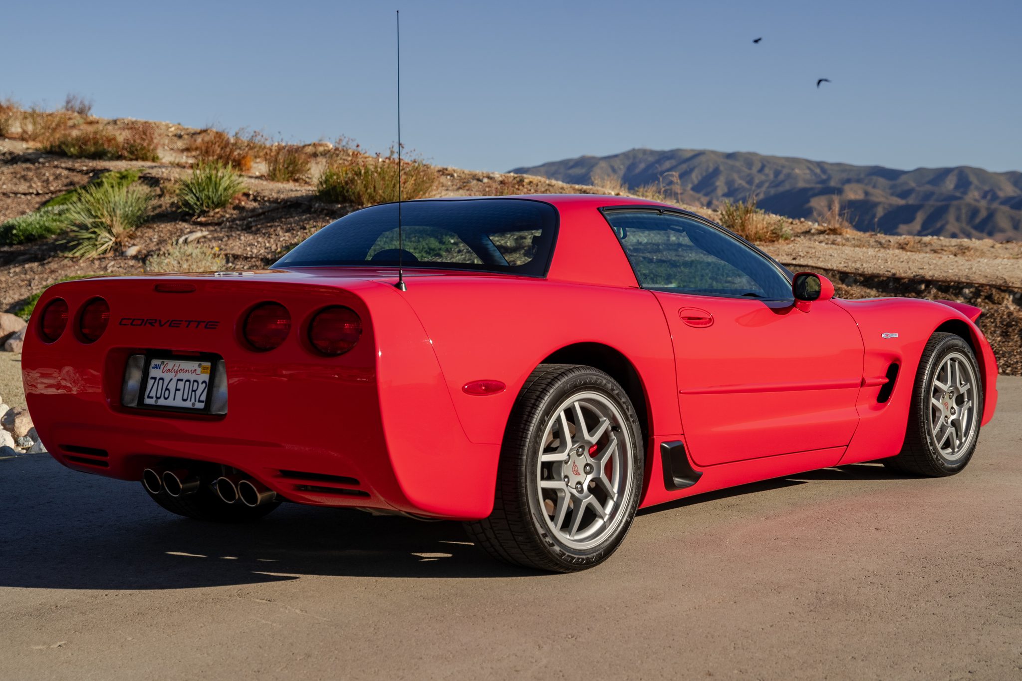 The 17″ and 18″ alloy wheels are mounted with Goodyear Eagle F1 tires. The Z06 suspension featured a larger front stabilizer bar, increased damping, and a higher spring rate than the standard Corvette. The car is equipped with active handling and traction control systems, speed-sensitive rack-and-pinion power steering, and ventilated disc brakes at all four corners.