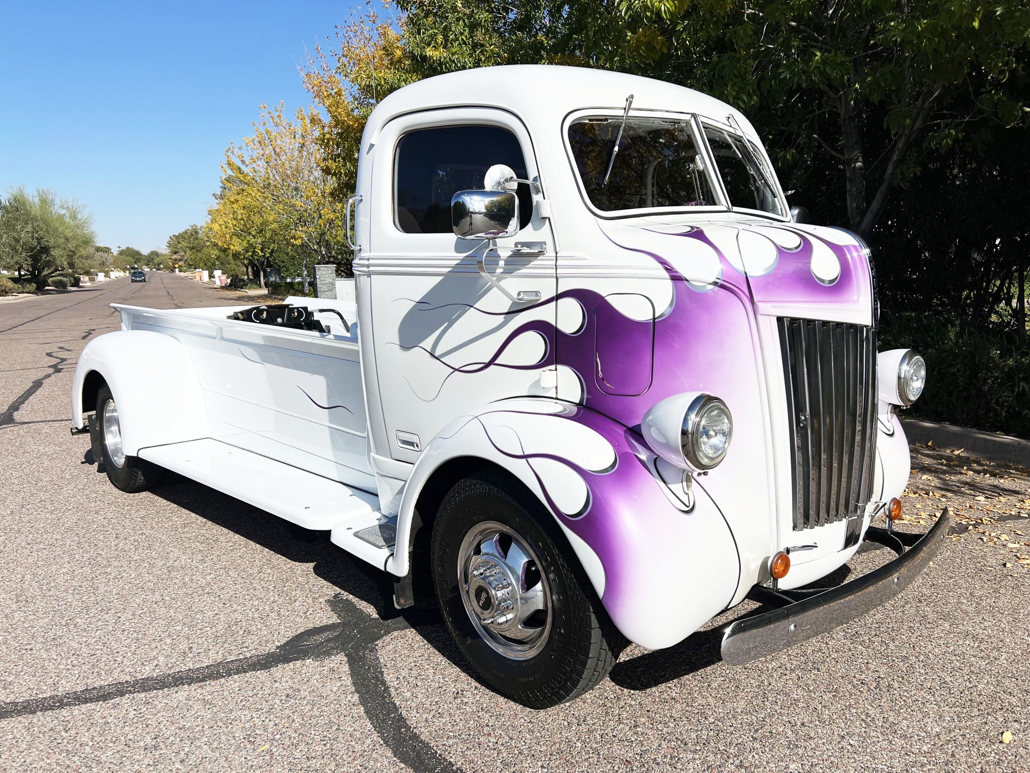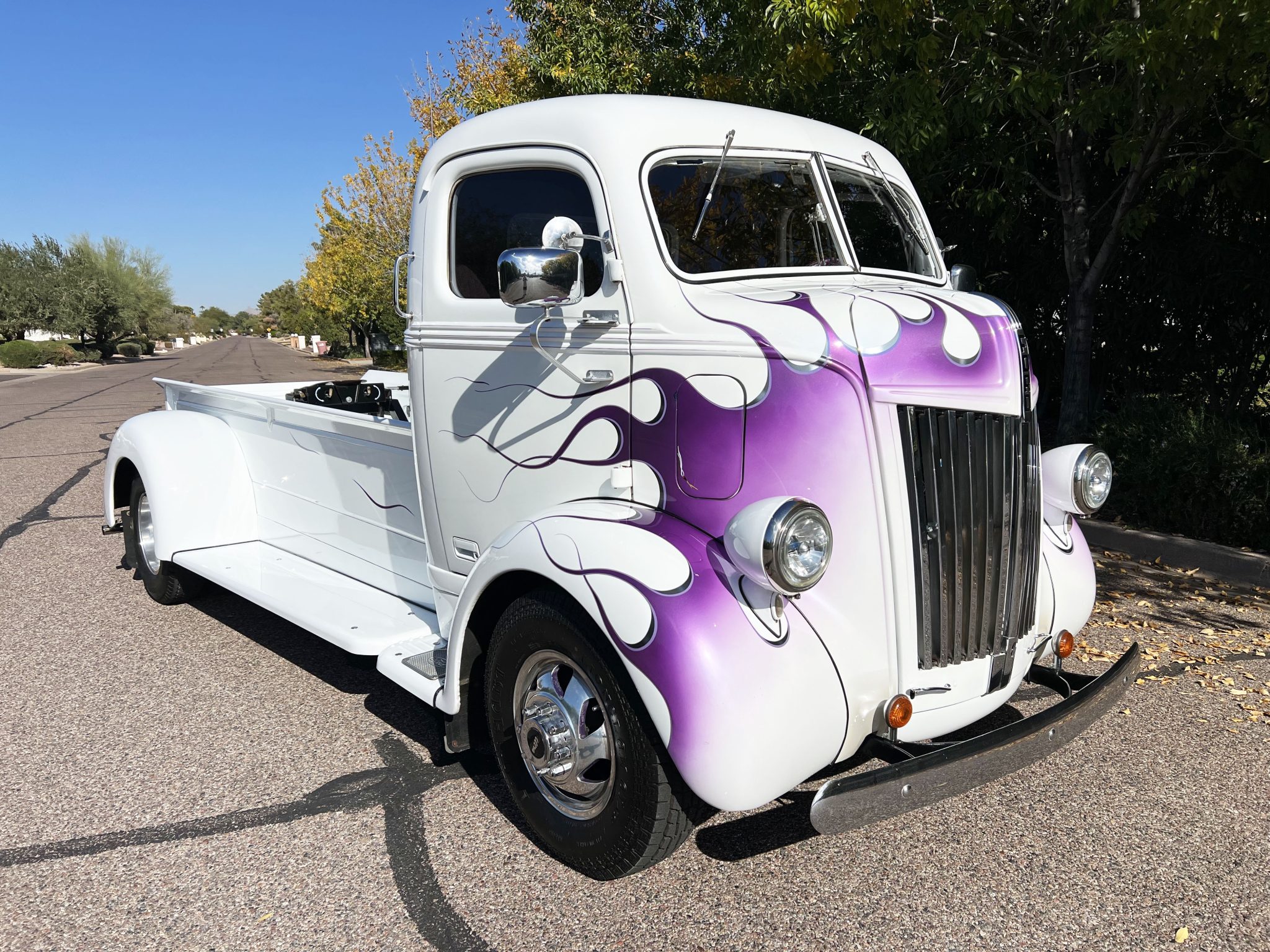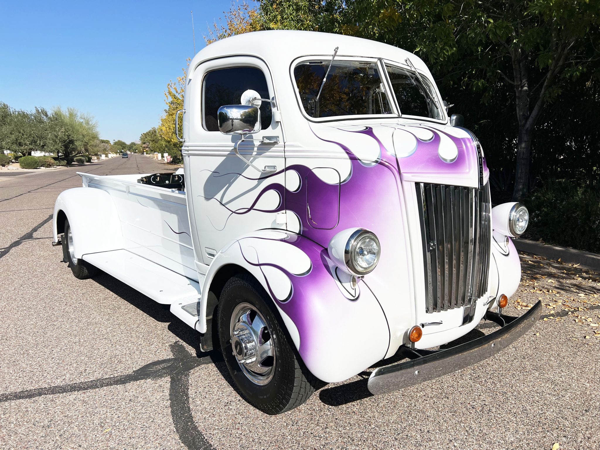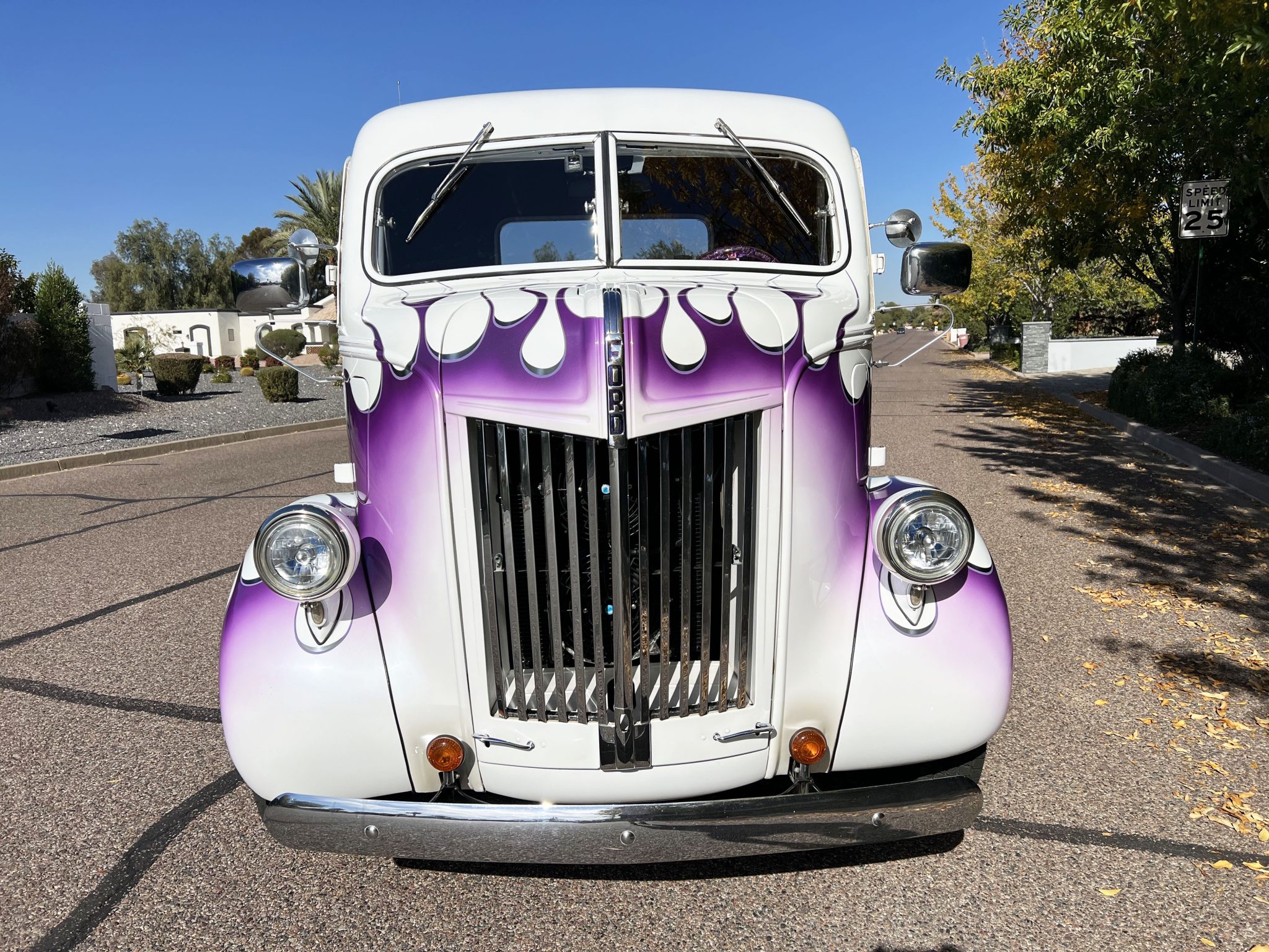 The truck rides on a modified replacement chassis with a custom front end and a dually rear axle equipped with an airbag setup. Front disc brakes and 16″ Ultra aluminum wheels are fitted.