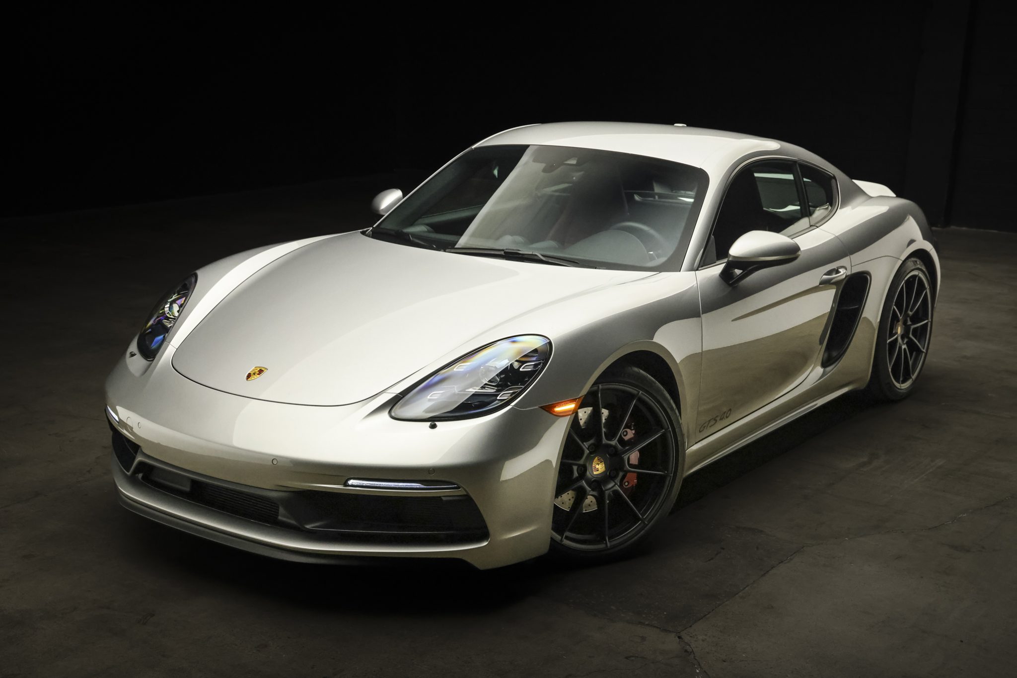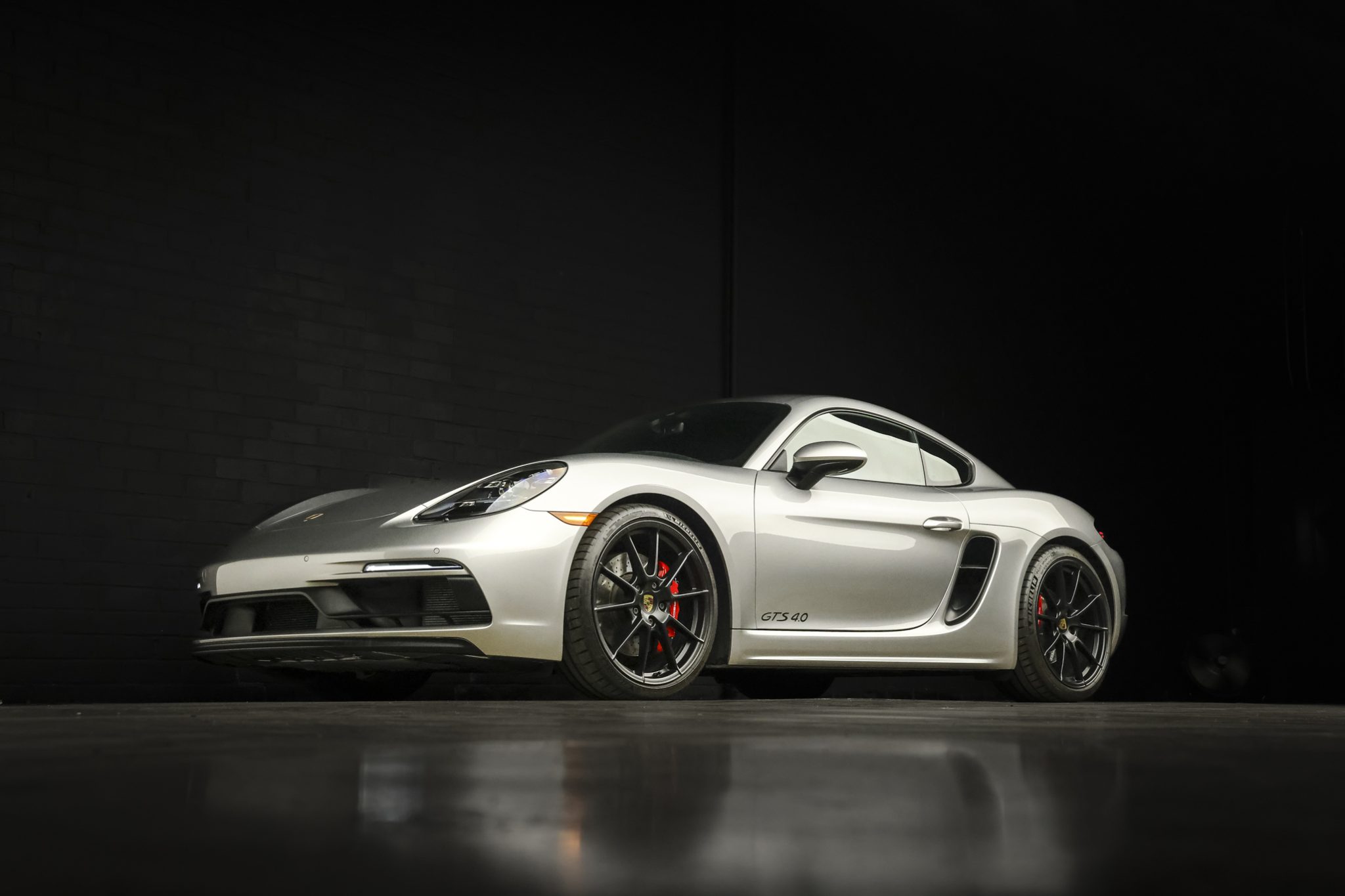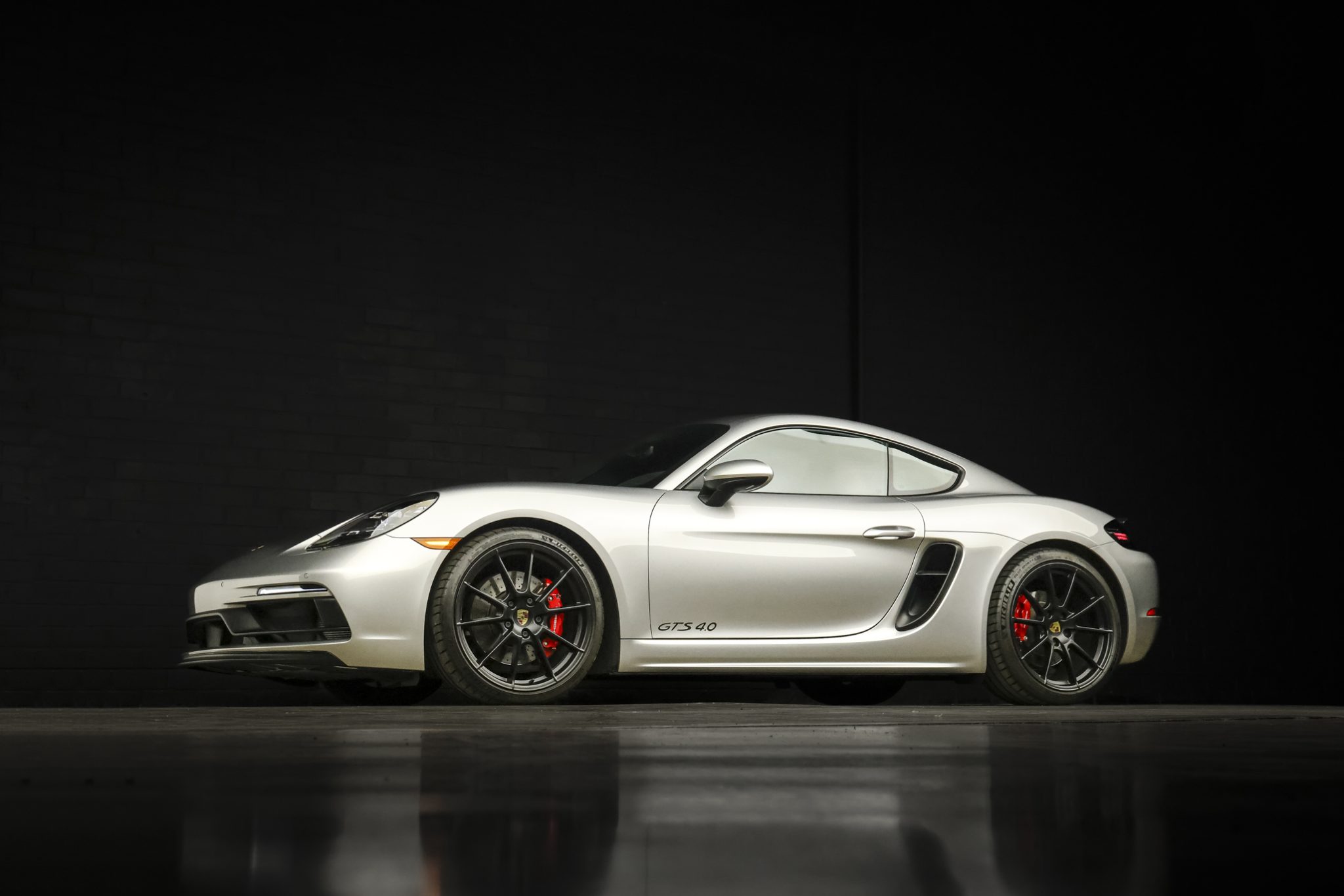 Black-finished 20″ 718 Sport alloy wheels are mounted with Michelin tires. The car is equipped with Porsche Active Suspension Management (PASM). The ride height of the GTS 4.0 is 20mm lower than the standard model, and stopping power is handled by cross-drilled and ventilated rotors and red-finished calipers.