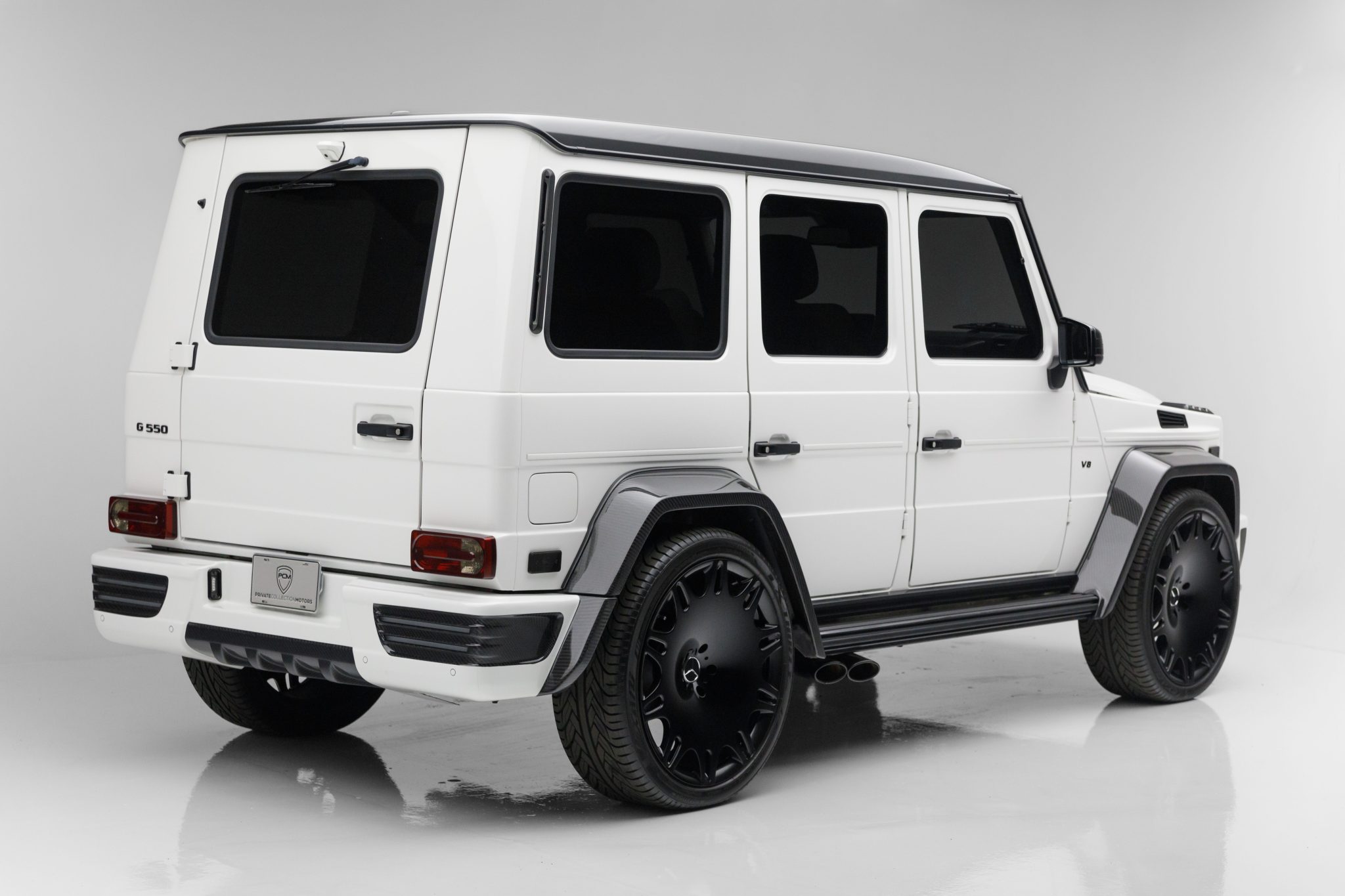 The black-finished 24″ wheels wear Mercedes-branded center caps and are mounted with 295/35 Lexani LX-Thirty tires. Stopping power is provided by four-wheel disc brakes.