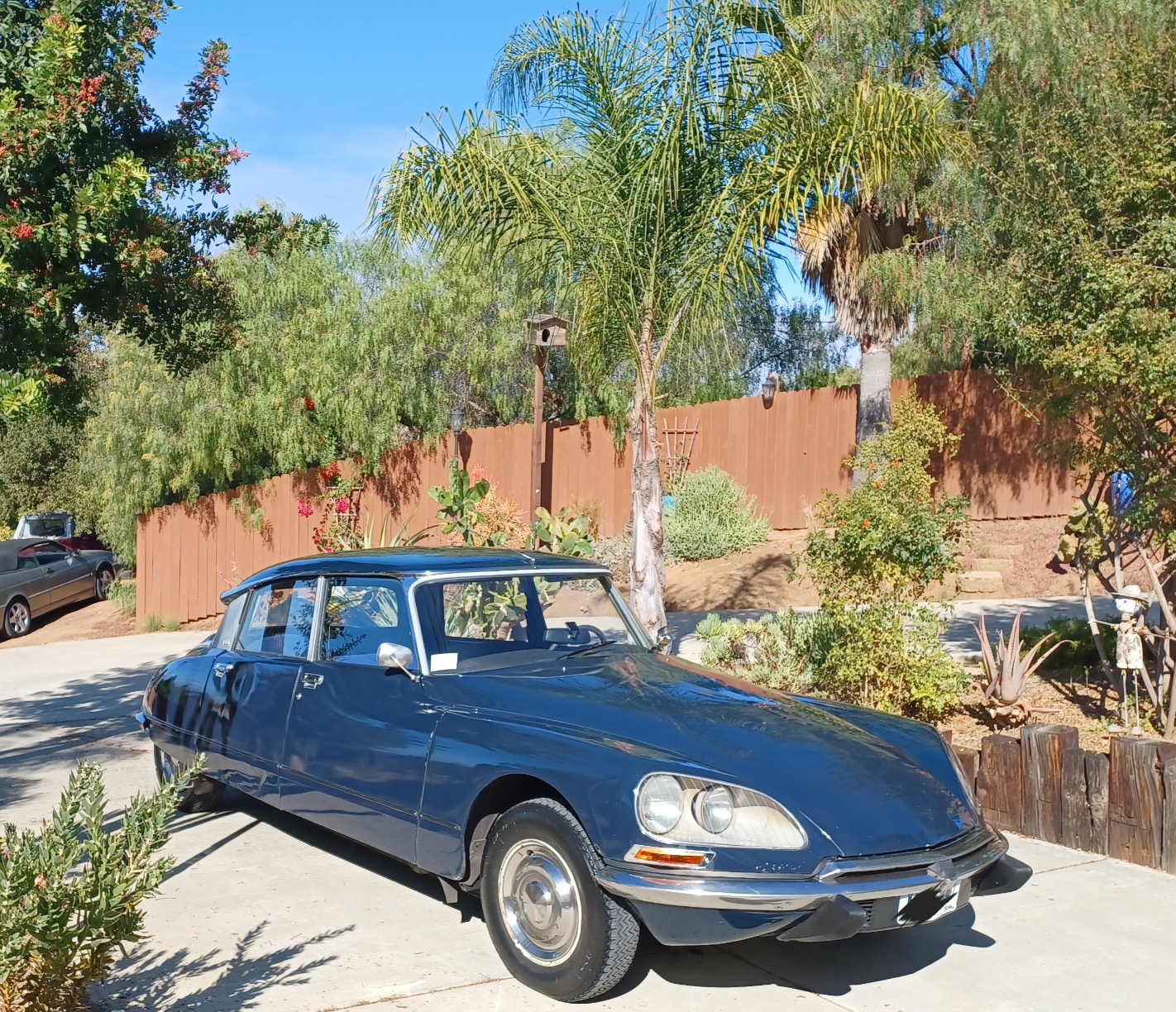 Ivory-finished 15″ steel wheels wearing polished covers are mounted with older 185/80 Retro RC-001 tires, and a spare with a Nexen tire is stored under the hood ahead of the engine. The hydropneumatic system serves the self-leveling, height-adjustable suspension and also provides assistance to the steering and braking systems. Stopping power is provided by inboard front disc and rear drum brakes. Work on the hydropneumatic system and suspension from 2020 to 2021 involved rebuilding the hydraulic pump and repairing the upper bump stop assembly as well as replacing the valve body, hydraulic spheres, lines, and one of the axles.