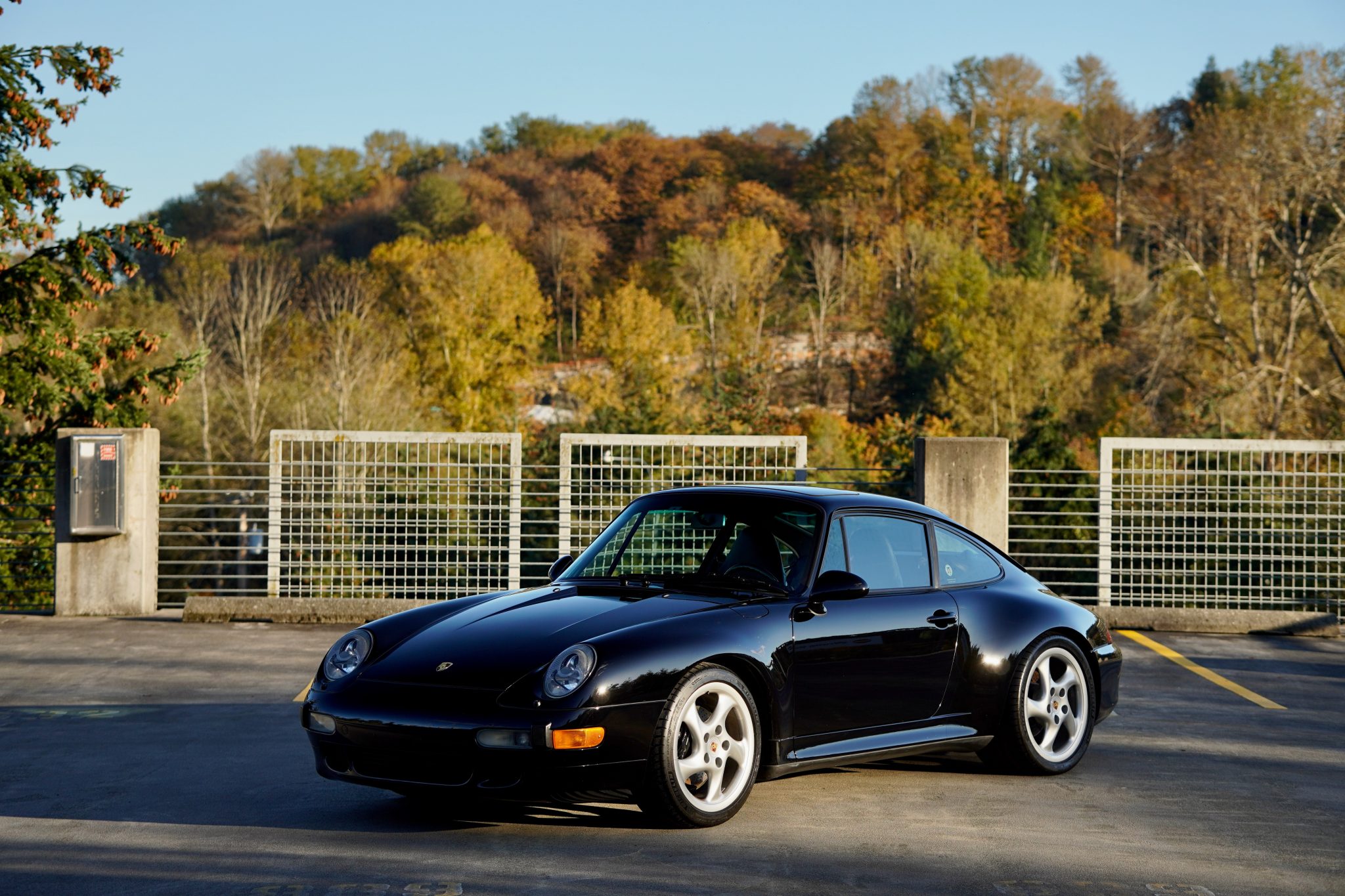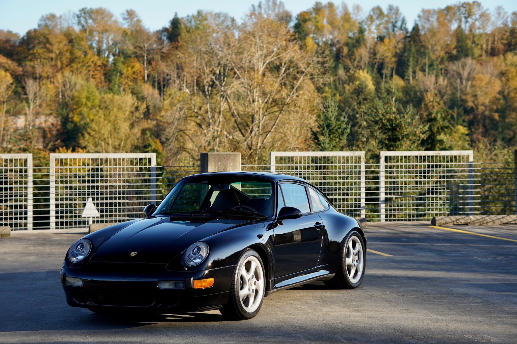 Silver-finished 18″ hollow-spoke Technology wheels are mounted with 225/40 front and 285/30 rear Michelin Pilot Sport 4 S tires that have 2024 production-date codes. Braking is handled by Porsche-branded calipers and cross-drilled rotors, and height-adjustable Bilstein HD shocks have been fitted to the factory sport suspension. The brake fluid was flushed in December 2023.