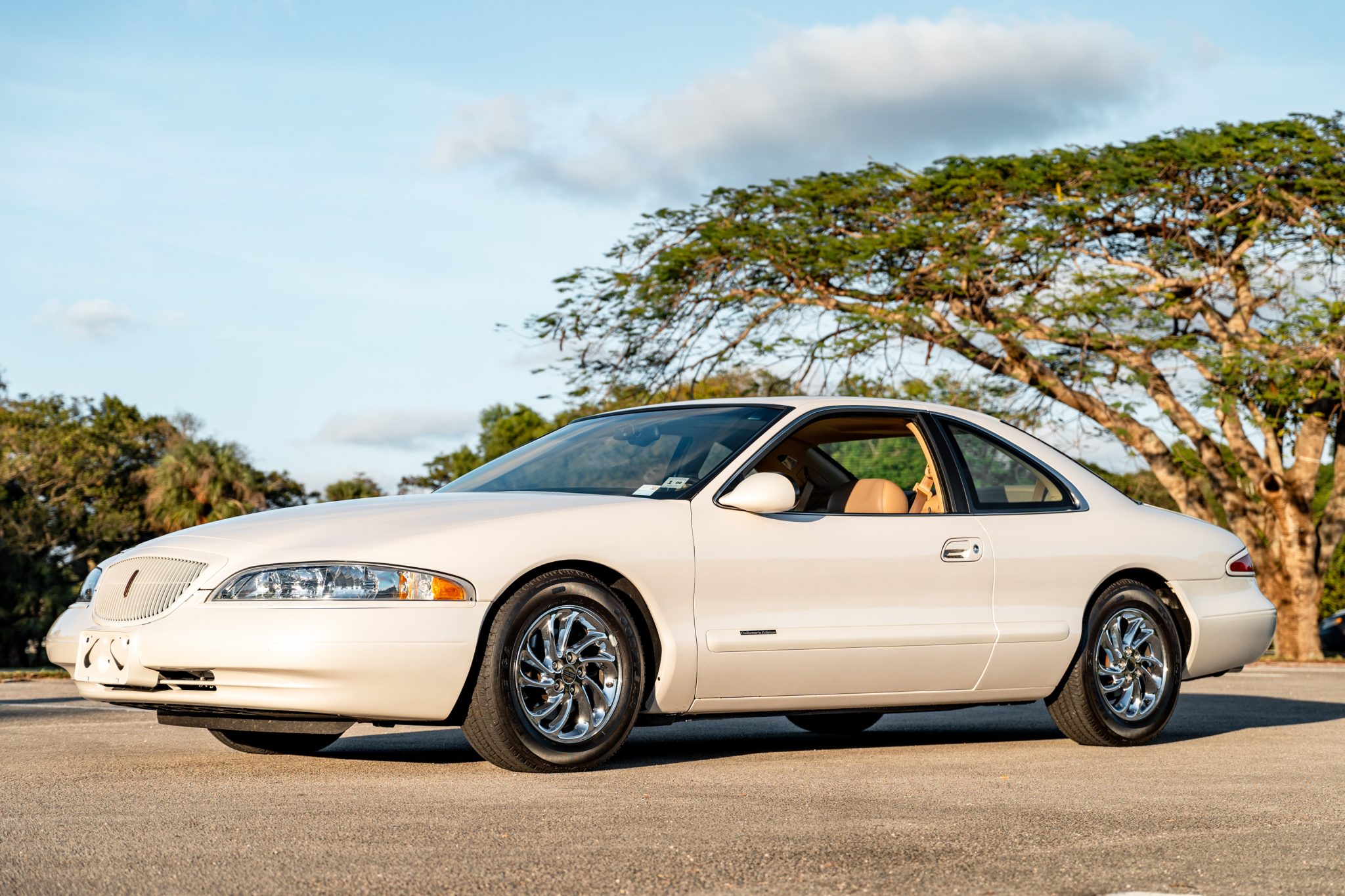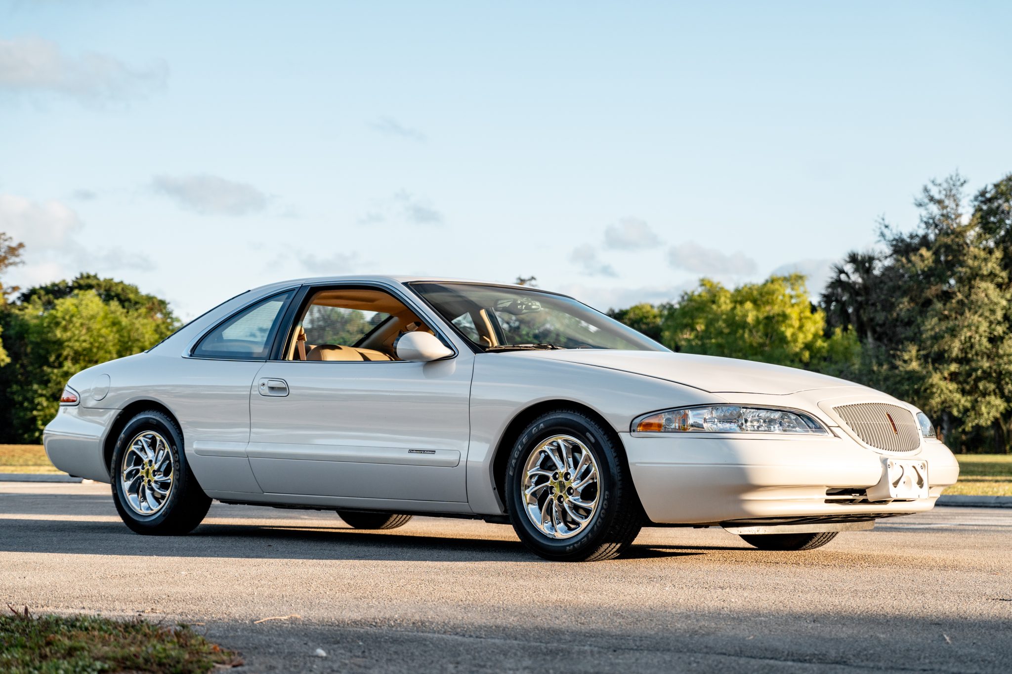 Chrome-finished 16″ directional wheels are mounted with older 225/60 Goodyear Eagle GA tires. The Collector’s edition was based on the LSC model, which was fitted with a firmer self-leveling air suspension and larger stabilizer bars as compared to the contemporary Mark VIII. The car is also equipped with traction control and four-wheel anti-lock disc brakes.