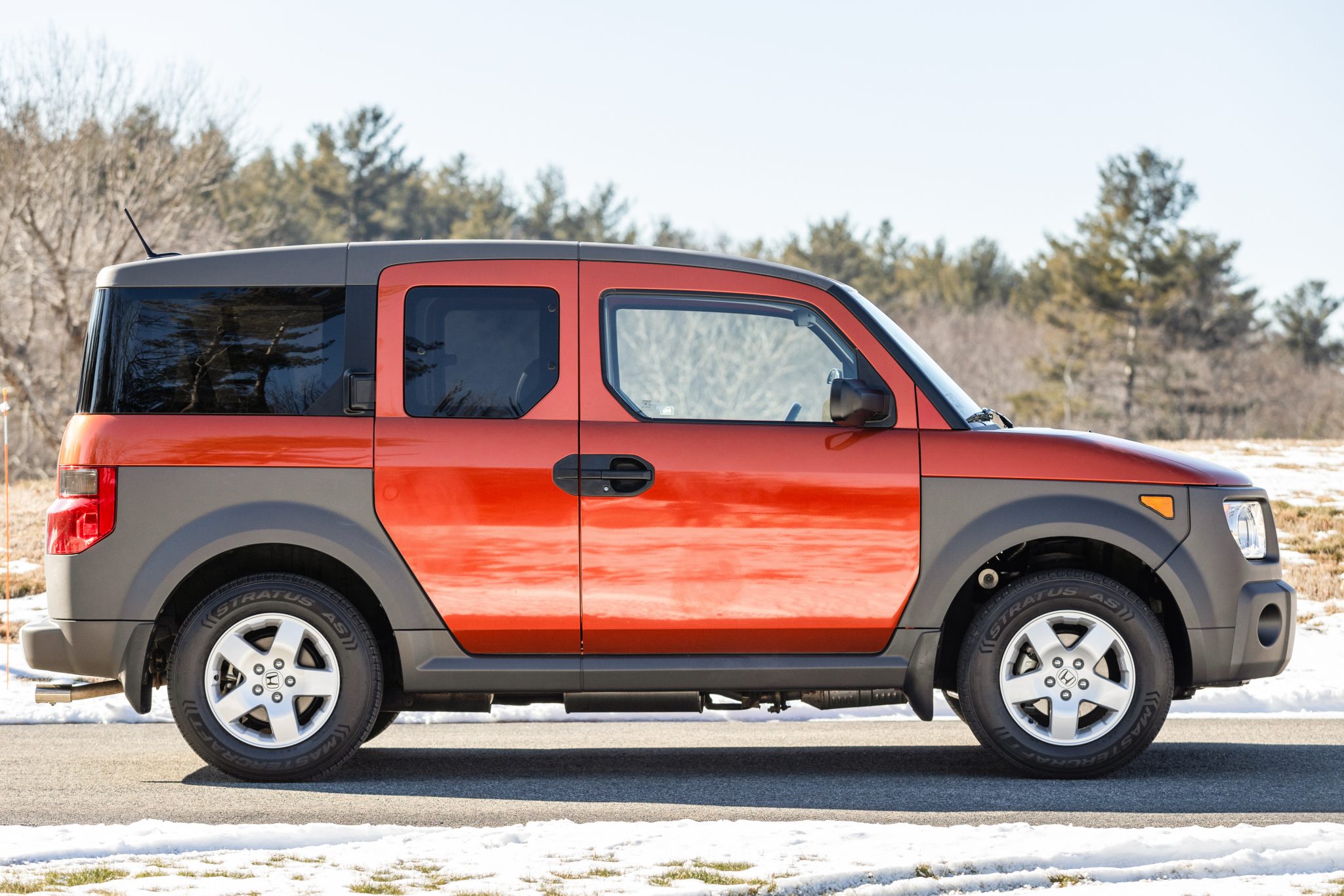 The 16″ five-spoke alloy wheels are fitted with Mastercraft Stratus AS tires that were mounted in 2022. Braking is handled by four-wheel discs, and the Element is equipped with a MacPherson-strut front suspension and a double-wishbone rear setup.