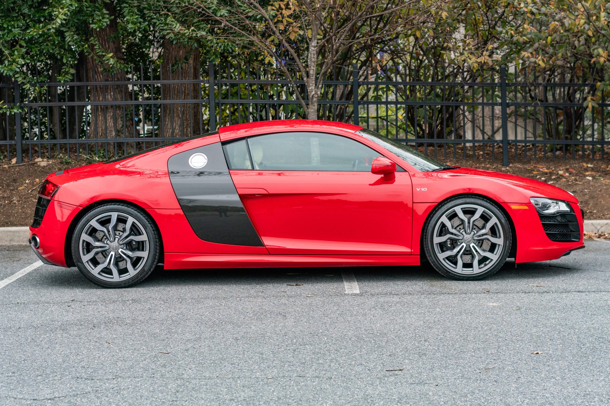 The 19″ Y-design wheels are mounted with Pirelli P Zero tires measuring 235/35 up front and 295/30 out back. Braking is handled by four-wheel ventilated and cross-drilled discs. Records indicate that all four Audi Magnetic Ride dampers were replaced between January 2018 and April 2020.