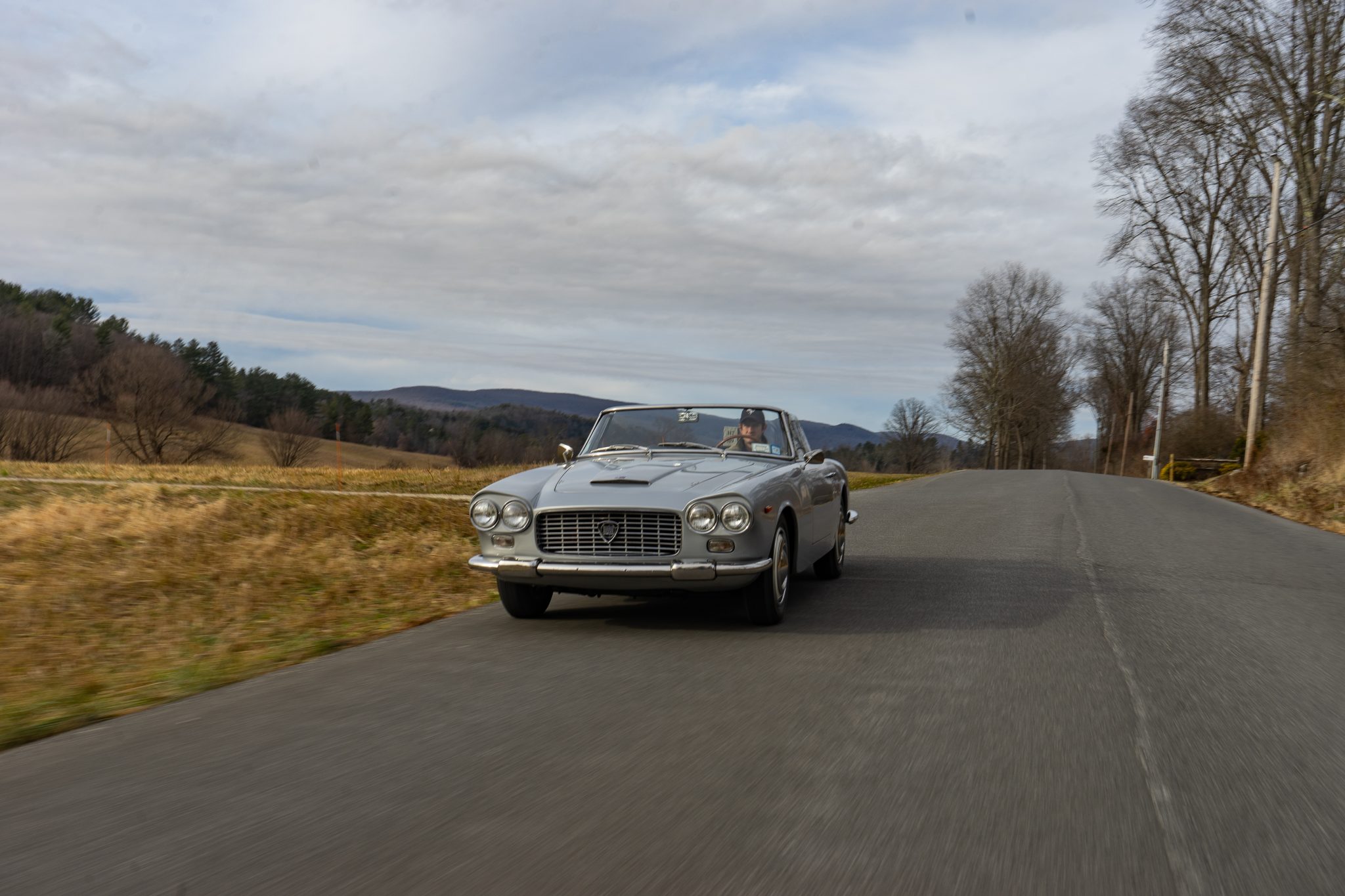 The cream-finished 400mm steel wheels wear polished trim rings as well as Lancia-branded hubcaps, and they are mounted with 165-series Michelin X tires. The Flaminia rides on a 99″ wheelbase and features an independent double-wishbone front suspension and a de Dion tube rear setup with an anti-roll bar. The car has been fitted with power-assisted steering, and braking is handled by four-wheel disc brakes with inboard-mounted rotors out back. The brake booster was repaired in July 2024, at which time the system was adjusted and bled.
