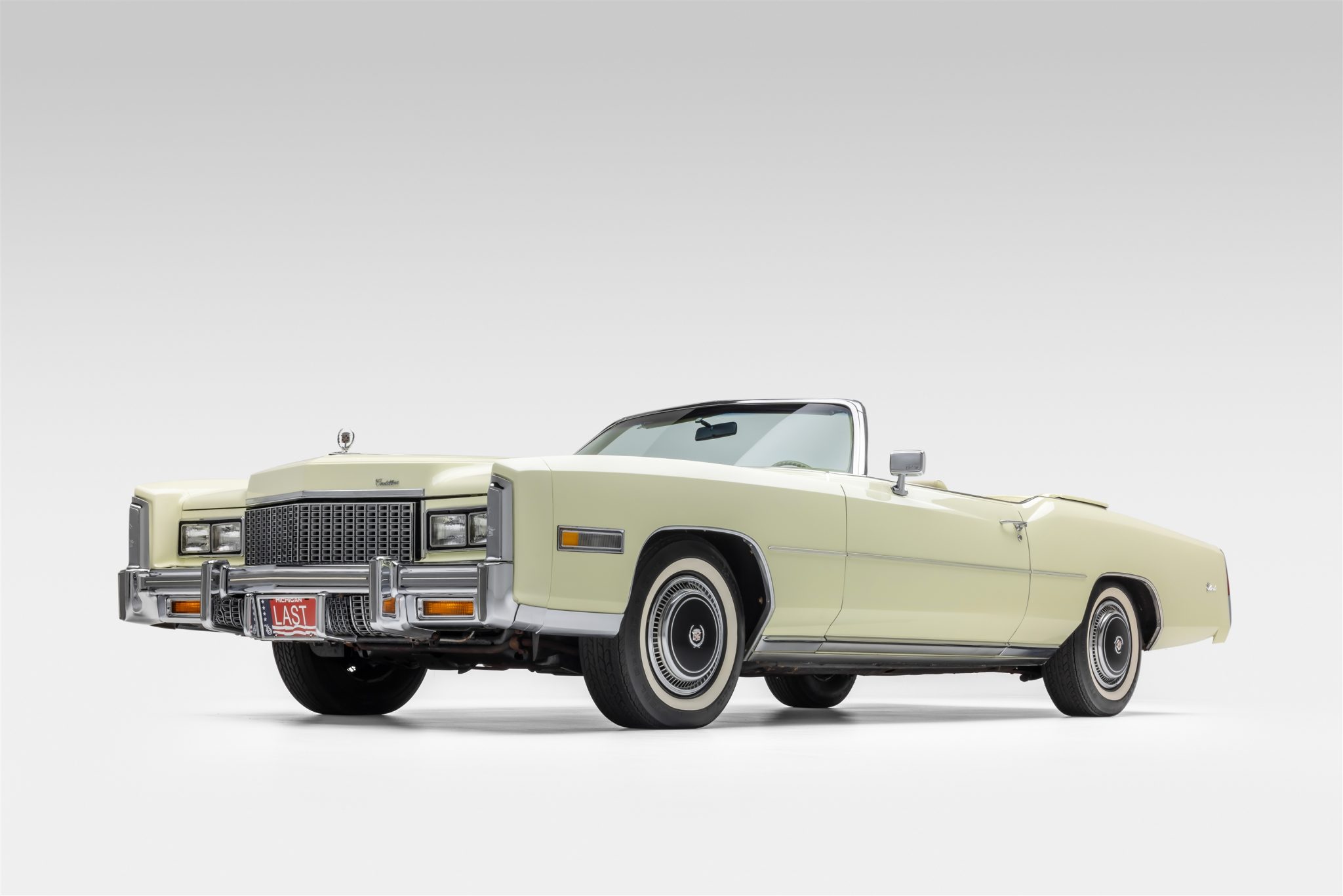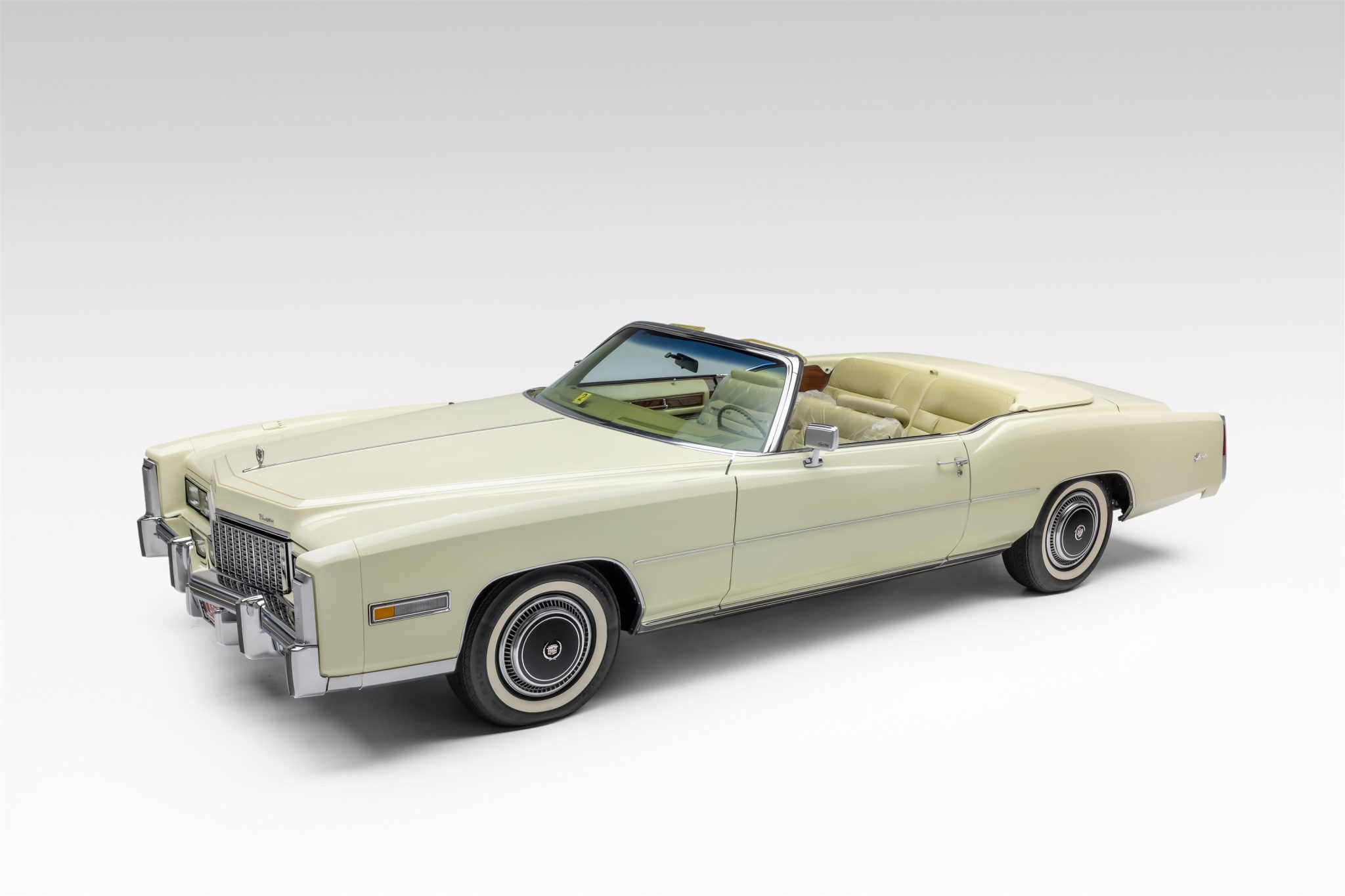 The 15″ steel wheels feature black-finished covers and are mounted with white-stripe tires. Stopping power is provided by disc brakes at all four corners. The Eldorado featured a torsion bar front suspension and a coil-sprung solid rear axle along with Automatic Level Control and power steering.