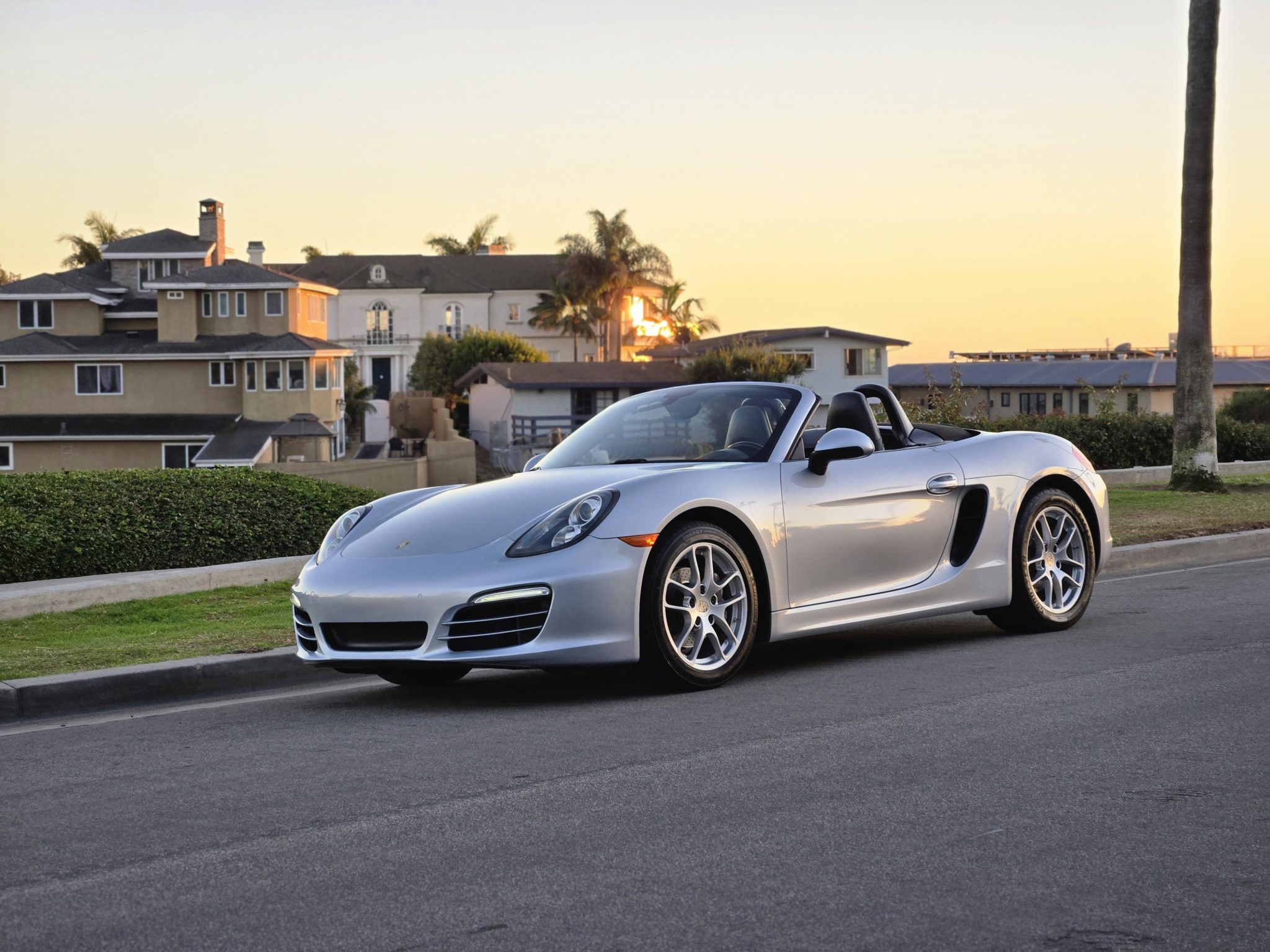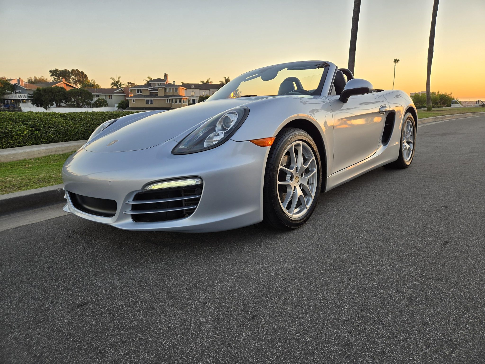 The 18″ Cayman alloy wheels are mounted with Michelin front and Goodyear rear tires. Braking is handled by four-wheel cross-drilled and ventilated discs with silver-painted Porsche-branded calipers.