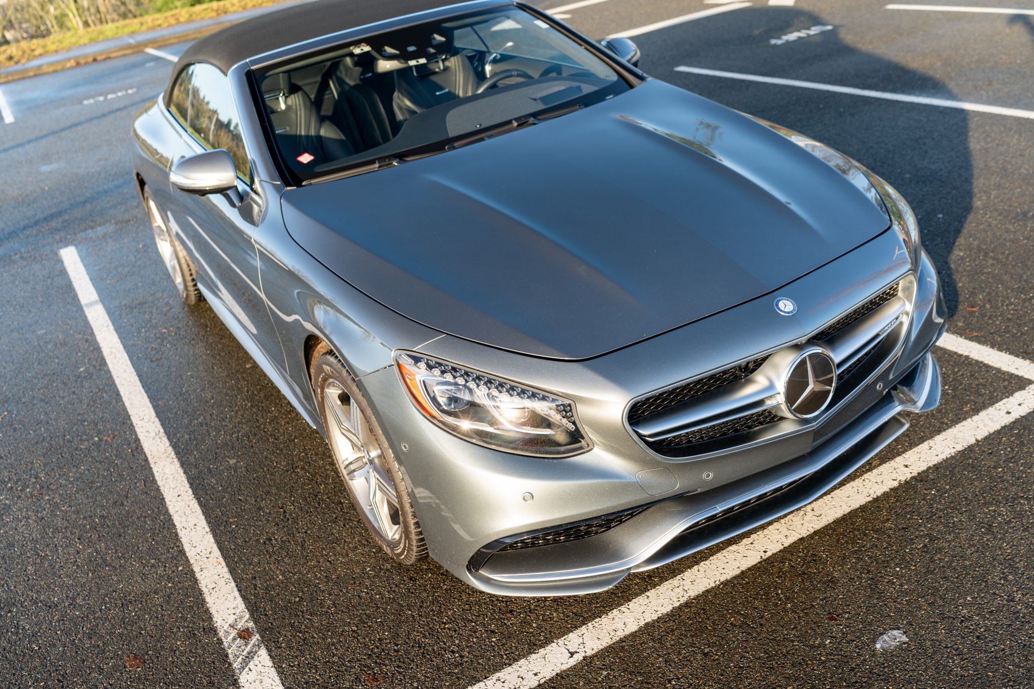 The 20″ AMG five-spoke wheels are mounted with Michelin Pilot Sport tires. The car is equipped with an AMG Adaptive Sport Suspension with Airmatic self-leveling, and stopping power is provided by cross-drilled discs.