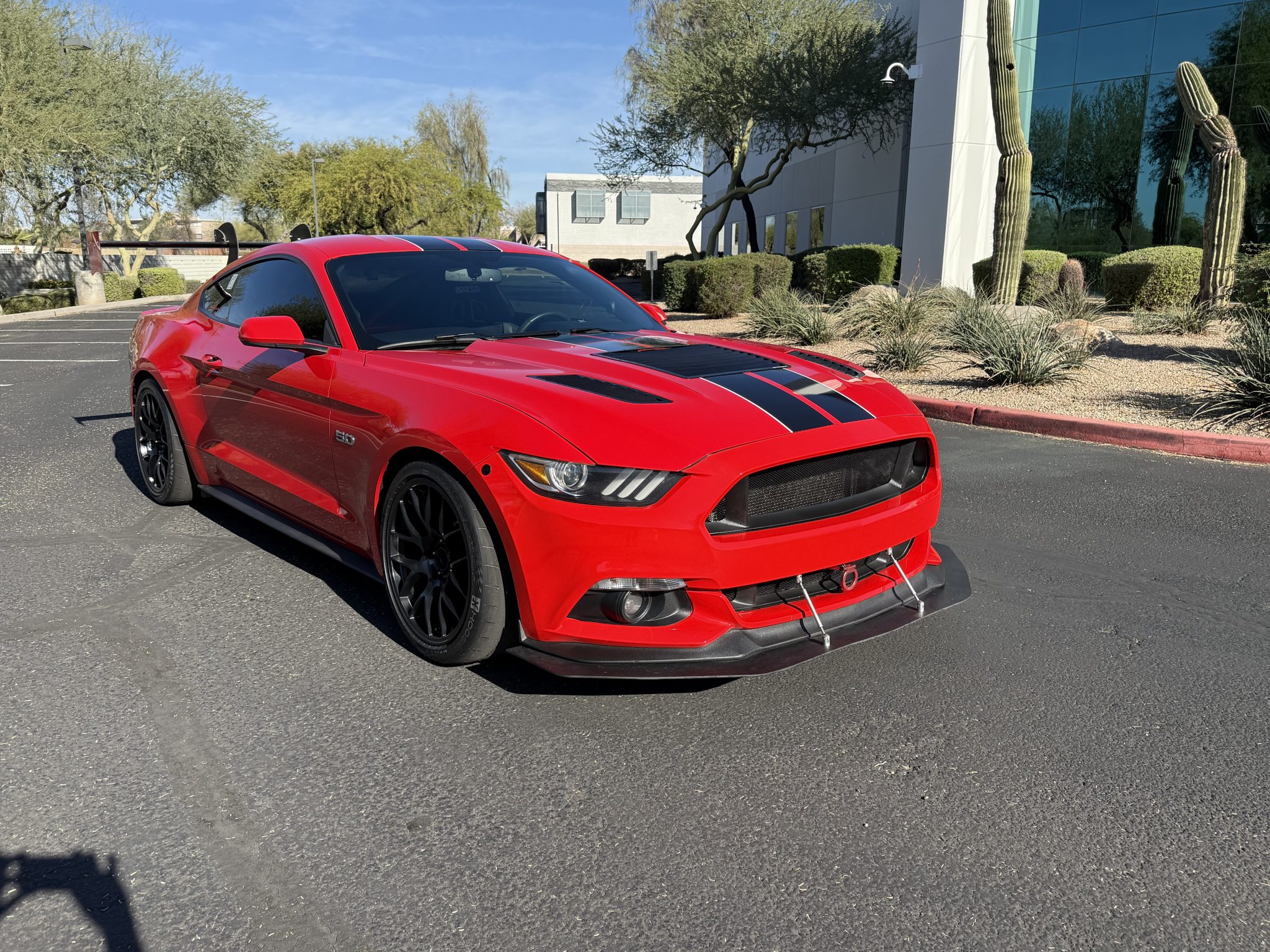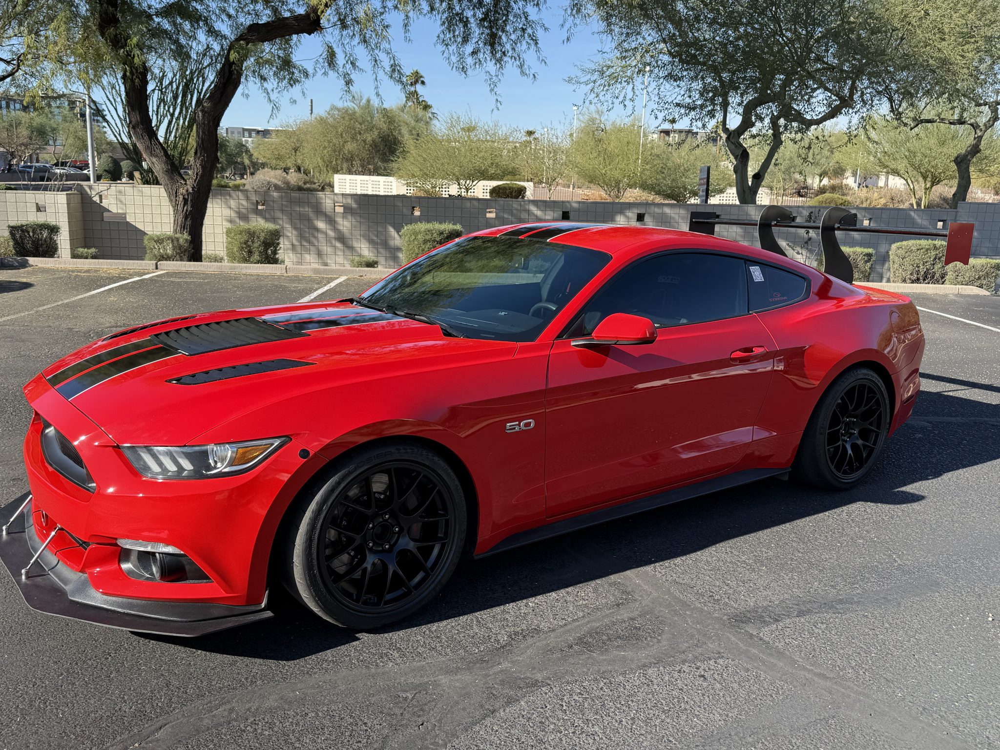 The 19×11″ Apex EC-7 wheels are finished in satin black and mounted with 305/30 Hoosier TrackAttack tires. The GT Performance Package added a front strut-tower brace as well as Brembo six-piston front brake calipers. The following Steeda modifications have been installed under current ownership: