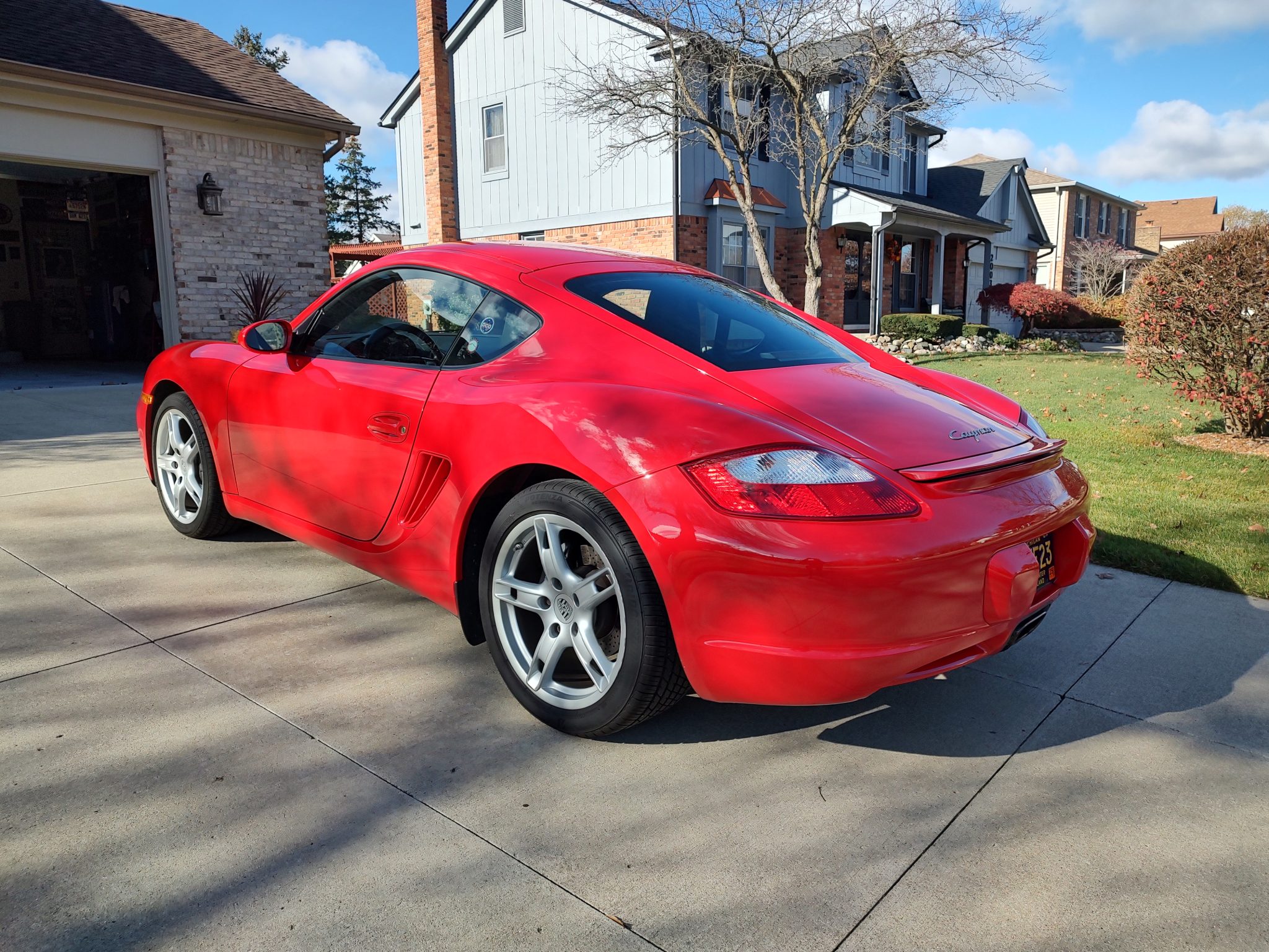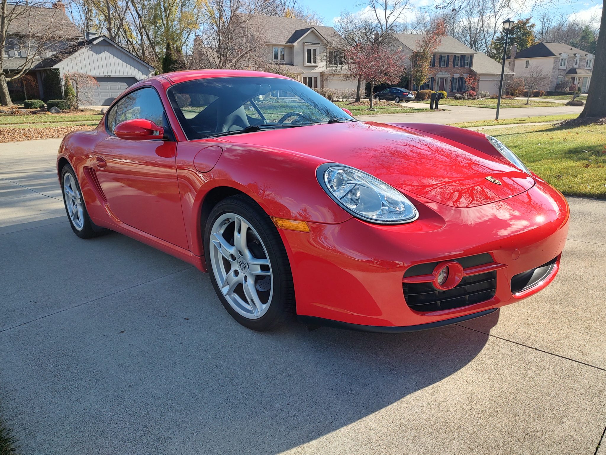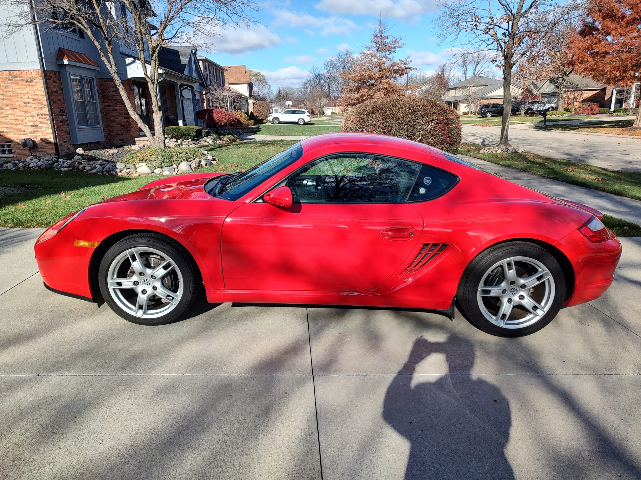 The 18″ Boxster S wheels are mounted with 235/40 front and 265/40 rear Bridgestone Potenza tires that the seller notes were installed in 2020. The car is equipped with Porsche Stability Management, and braking is handled by four-piston Porsche-branded calipers over cross-drilled rotors.