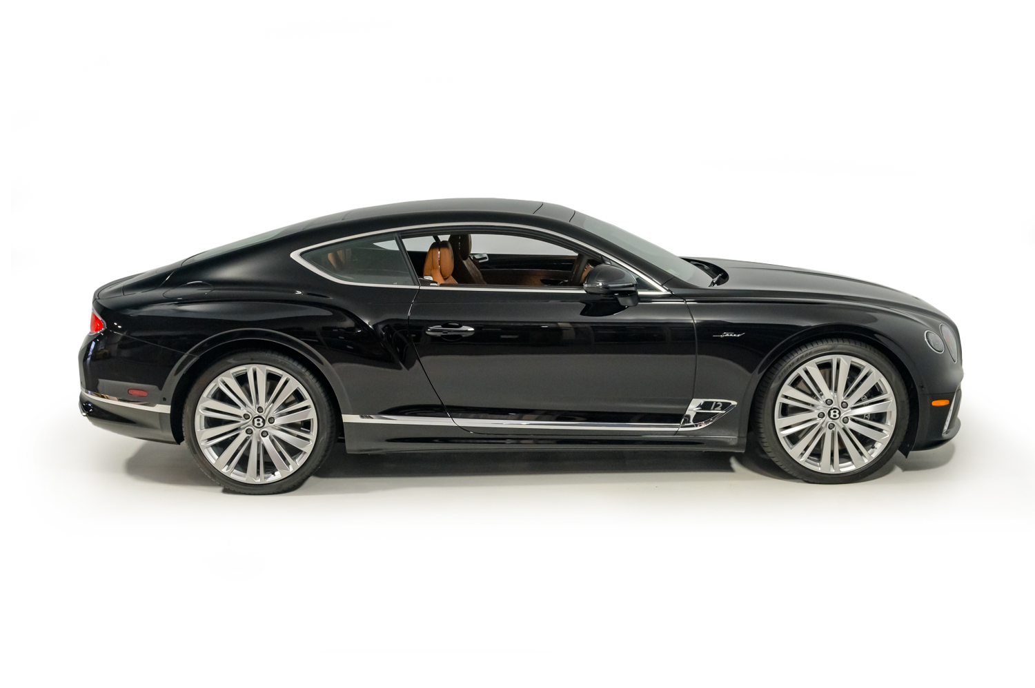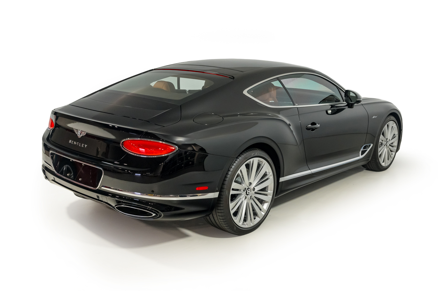 The 22″ Speed split 10-spoke alloy wheels are mounted with optional self-leveling Bentley-branded center caps as well as 275/35 front and 315/30 rear Pirelli P Zero tires. The car came factory-equipped with an electronically controlled torque-vectoring rear differential as well as an air suspension featuring Continuous Damping Control.