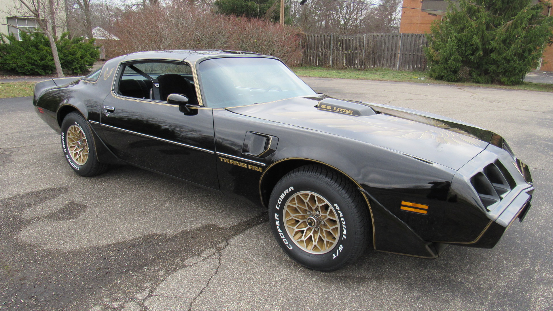The 15″ gold-finished snowflake wheels were mounted with 225/70 Cooper Cobra Radial G/T tires in December 2024. The car is equipped with power steering, and stopping power is provided by power-assisted front discs and rear drums. The selling dealer states that brake work in November 2024 included replacing the booster, master cylinder, proportioning valve, lines, hoses, calipers, pads, drums, and wheel cylinders.