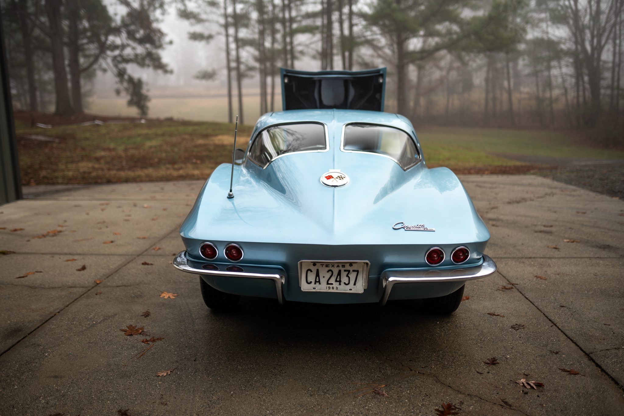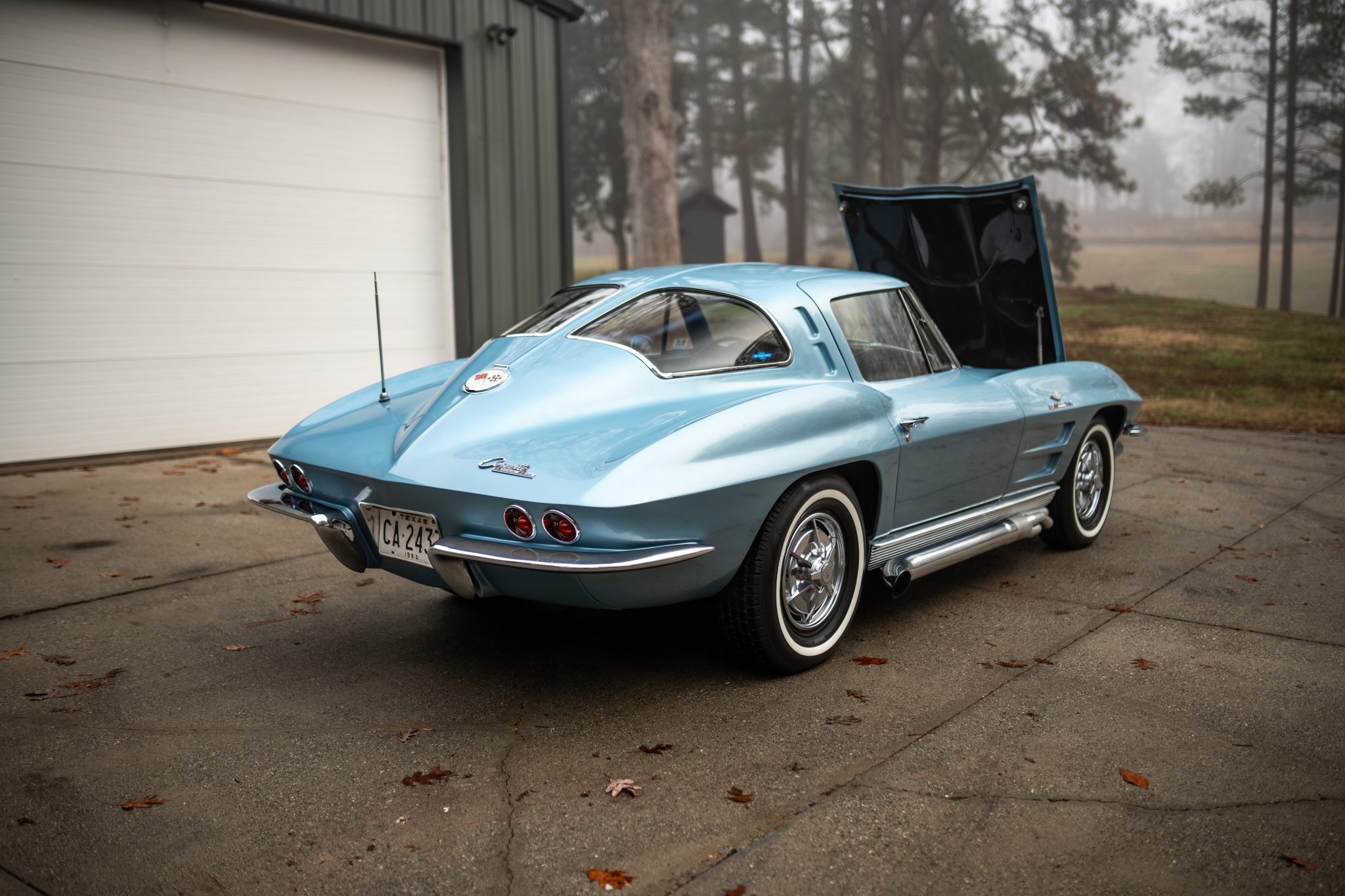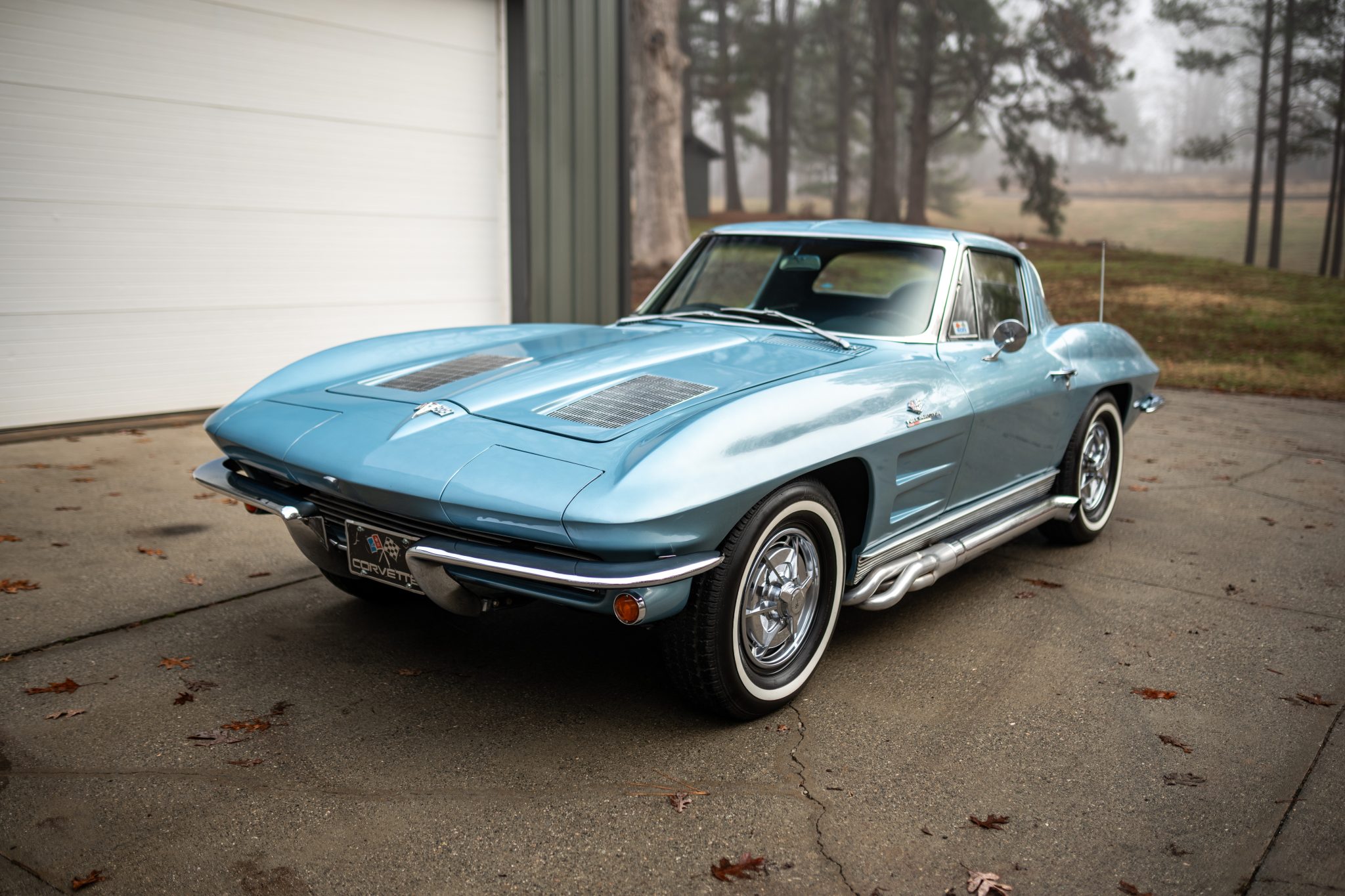 Silver-finished 15” steel wheels feature three-eared knock-off spinner-style hubcaps and are mounted with 205/75 American Classic whitewall tires. The C2 was the first Corvette to offer fully independent suspension, with upper and lower control arms at the front and a three-link setup with an aftermarket fiberglass transverse leaf spring at the rear. Braking is handled by four-wheel drums.