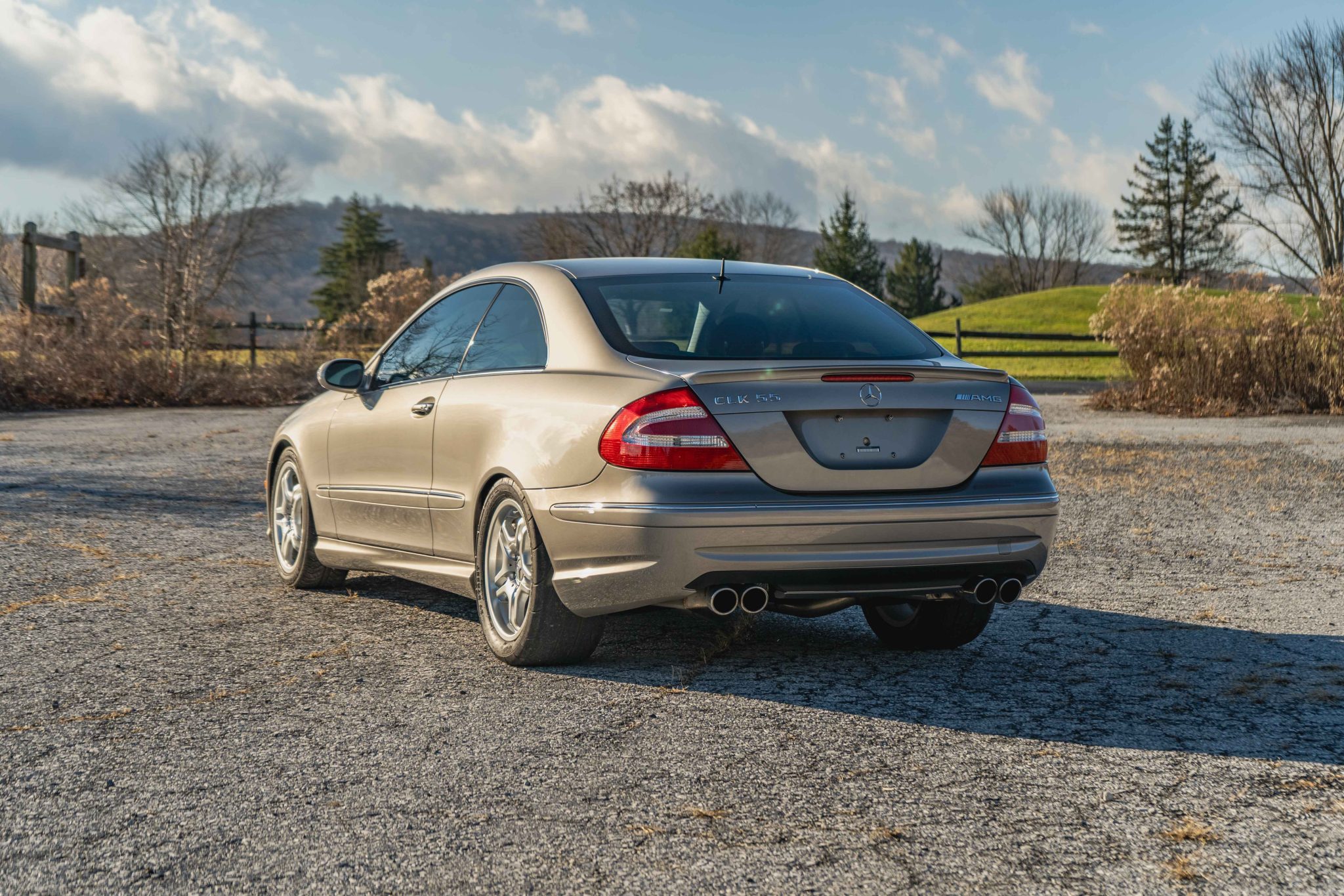 The 17″ split-spoke AMG aluminum alloy wheels are mounted with 225/45 Michelin Pilot Sport tires up front and 275/40 Mickey Thompson ET Street rubber out back. The car is equipped with an Electronic Stability Program (ESP) as well as an independent front and multilink rear AMG-tuned suspension with Eibach lowering springs. Braking is handled by AMG-enhanced four-wheel discs with cross-drilled rotors up front.