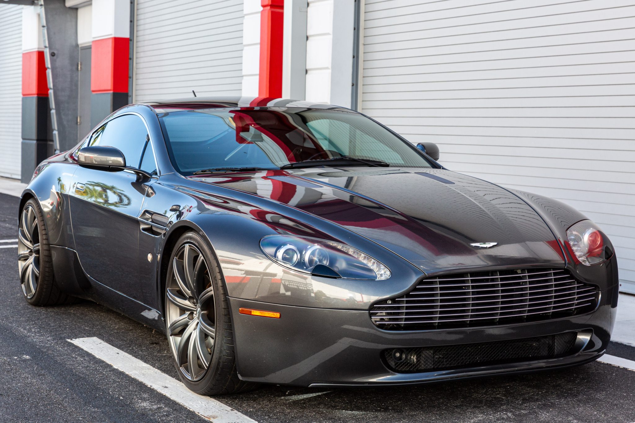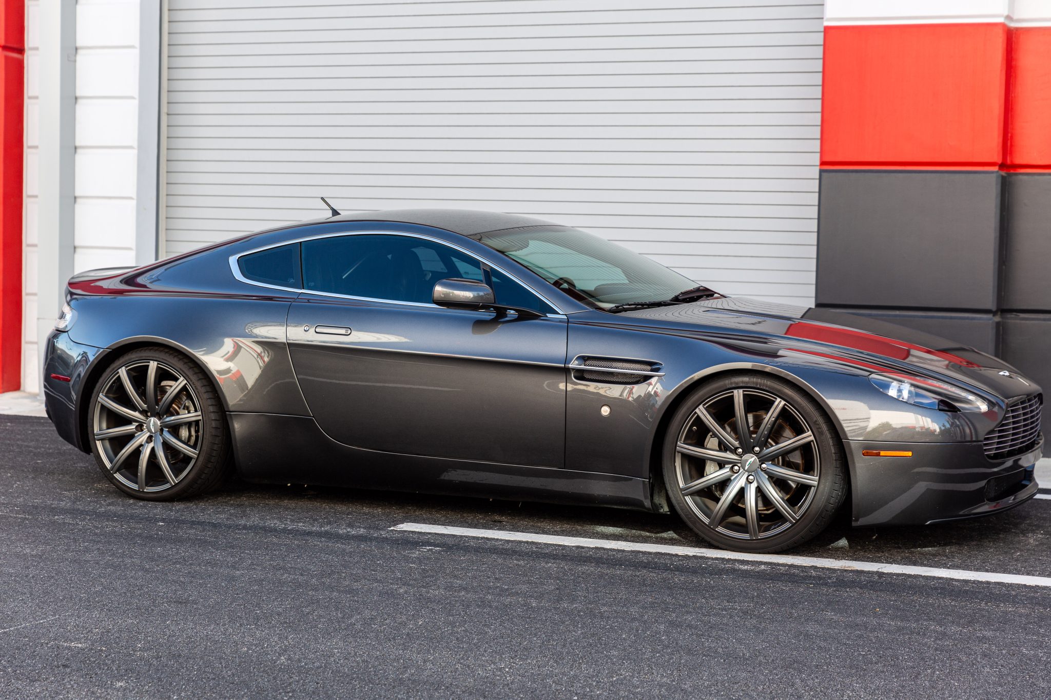 The 20″ Project Kahn RS-V wheels are mounted with Hankook Ventus V12 Evo 2 tires. Braking is from Aston Martin-branded gray calipers over slotted rotors at all four corners. The rear brake pads were replaced in preparation for the sale, per the selling dealer.