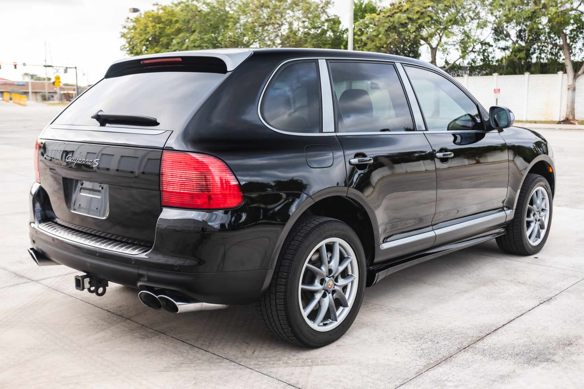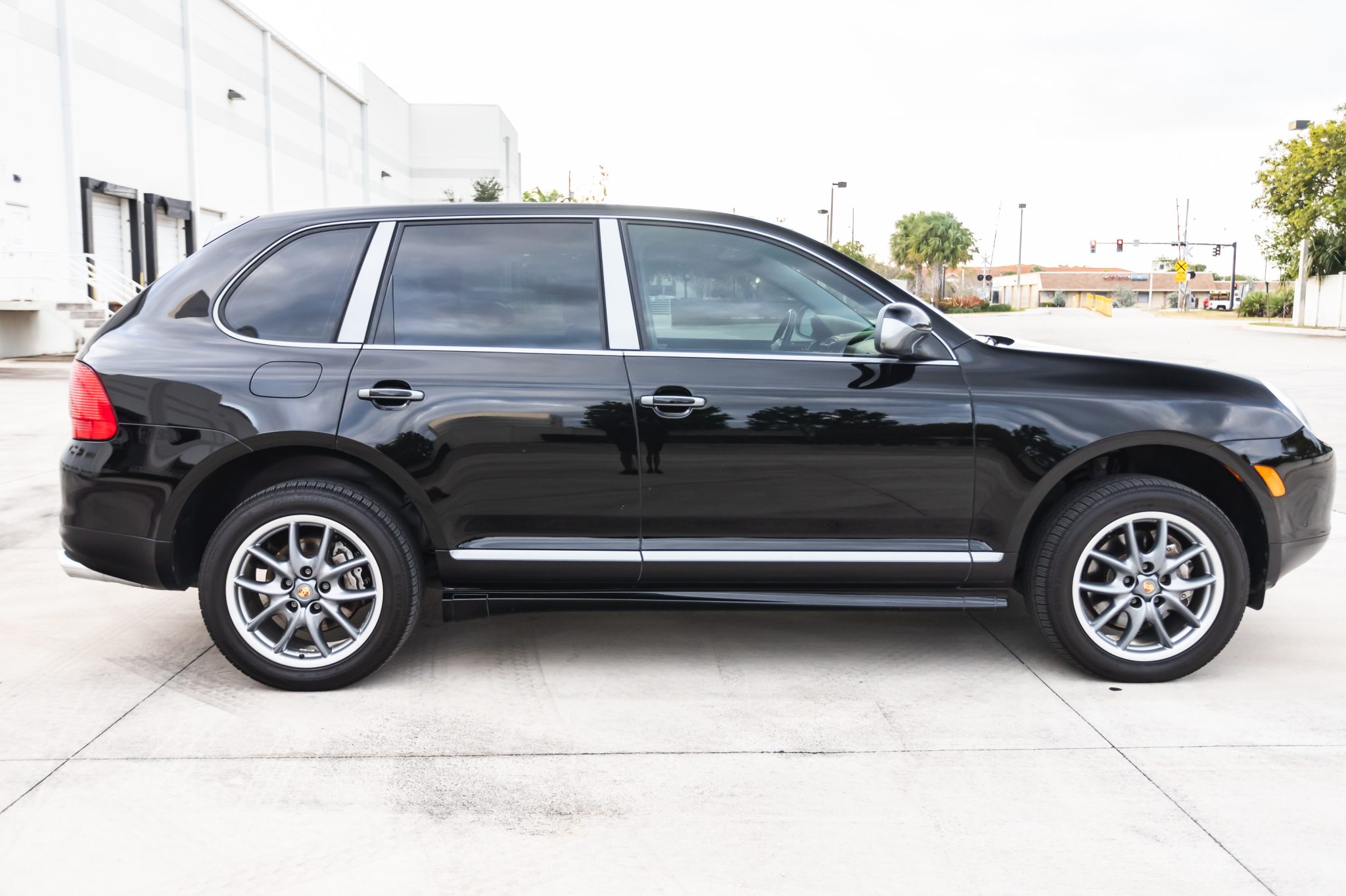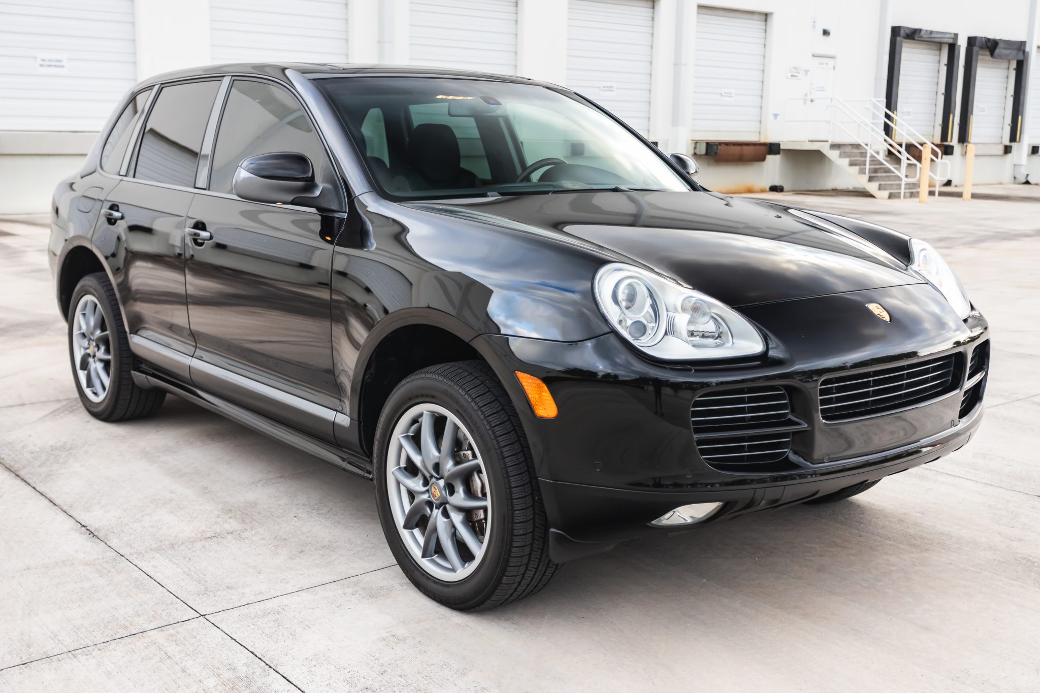 Two-tone 19″ Cayenne Design alloy wheels are mounted with 275/45 Continental 4×4 Contact tires. Variable-assist power steering was optioned, and stopping power is from Porsche-branded calipers over ventilated rotors at each corner.
