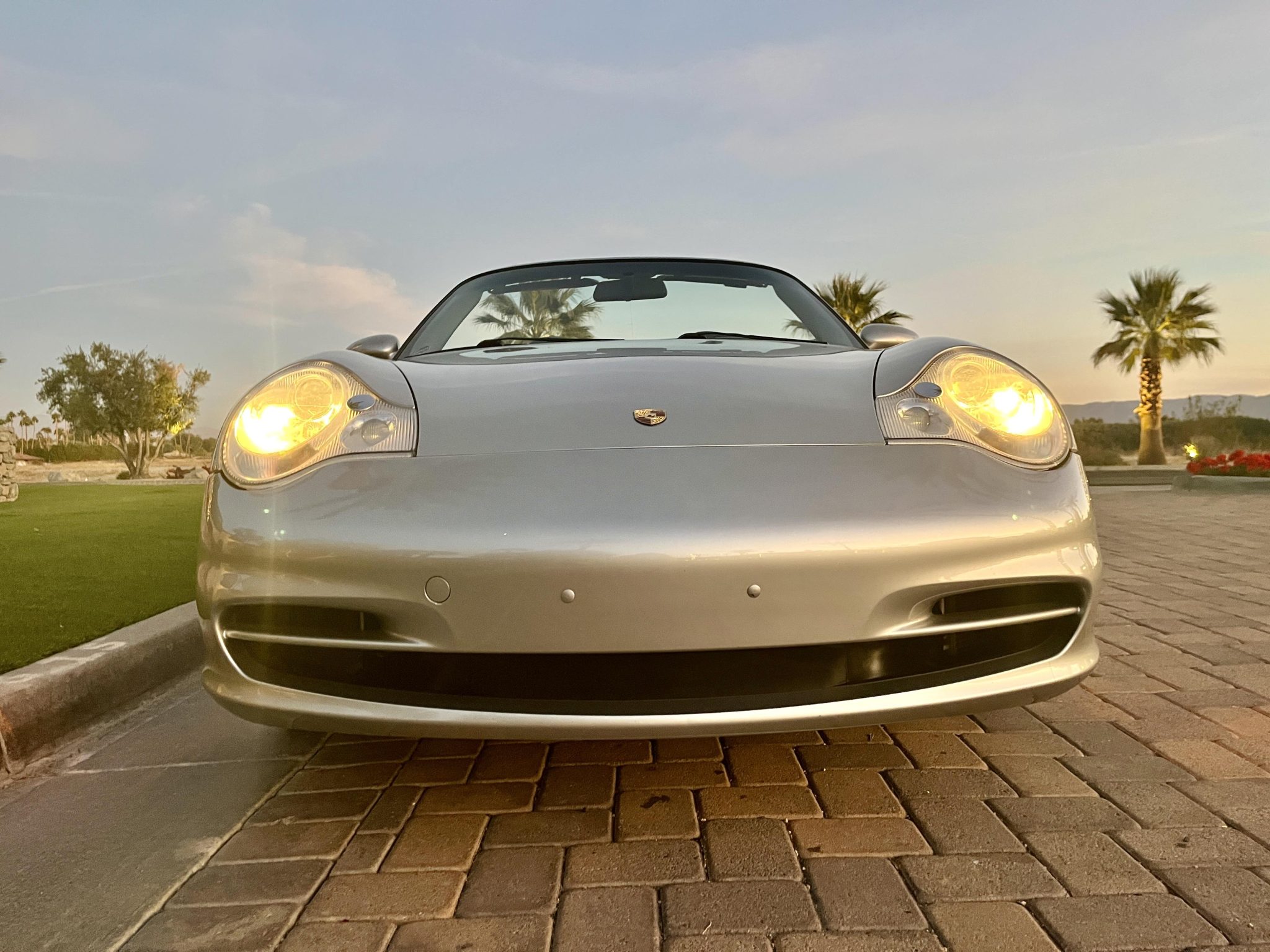 Silver 18″ five-spoke wheels are mounted with Pirelli tires. Braking is handled by black-finished four-piston calipers fitted over cross-drilled rotors at all four corners.