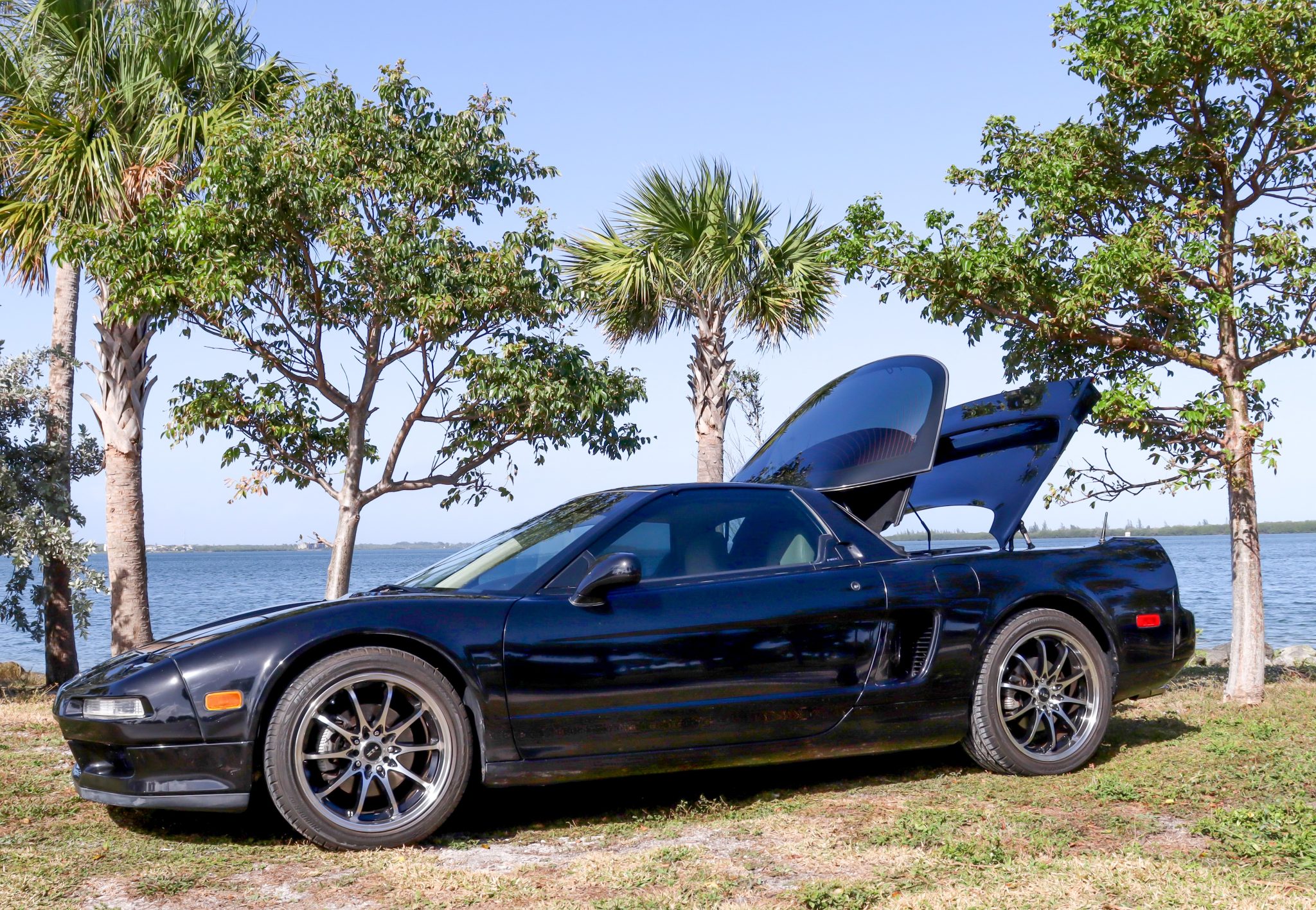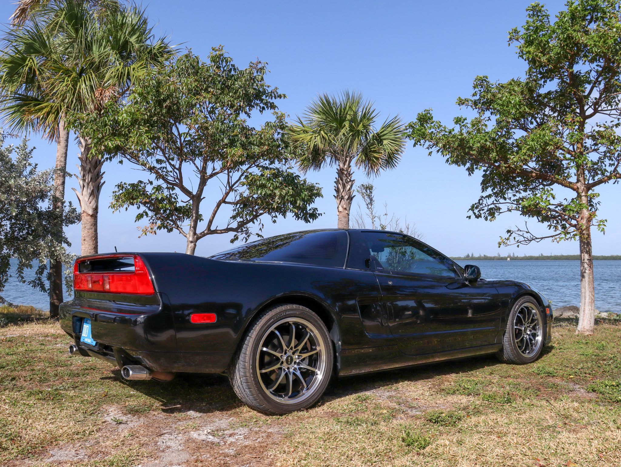 The multi-spoke NS wheels measure 17″ up front and 18″ out back, and they are mounted with Delinte Thunder D7 tires. The car features a four-wheel double-wishbone suspension with front and rear stabilizer bars, and braking is handled by NSX-branded calipers over vented rotors at each corner.