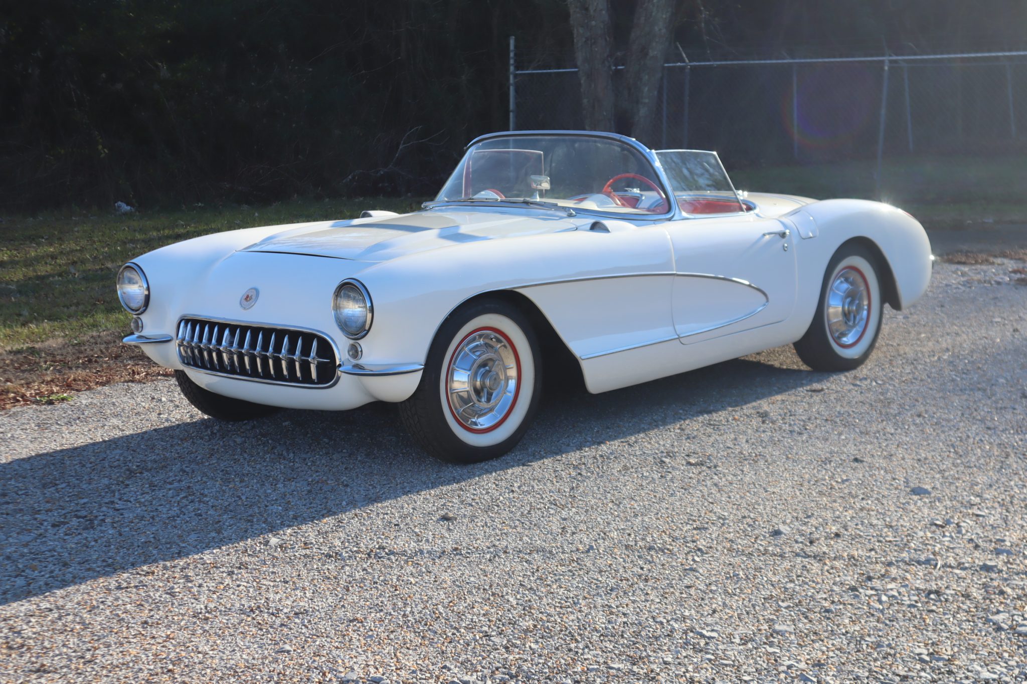 The 15″ steel wheels wear covers with faux knock-off spinners and are wrapped in 205/75 Coker Classic whitewall tires. The car came equipped from the factory with an independent front suspension and semi-elliptical rear leaf springs. Braking is handled by drums at each corner.