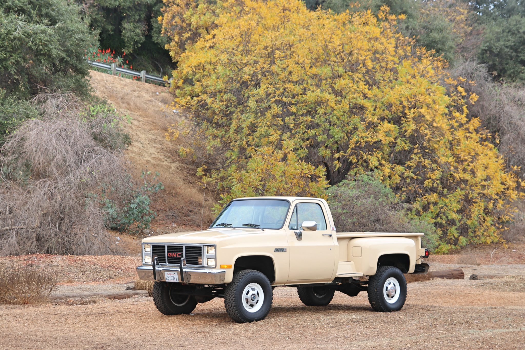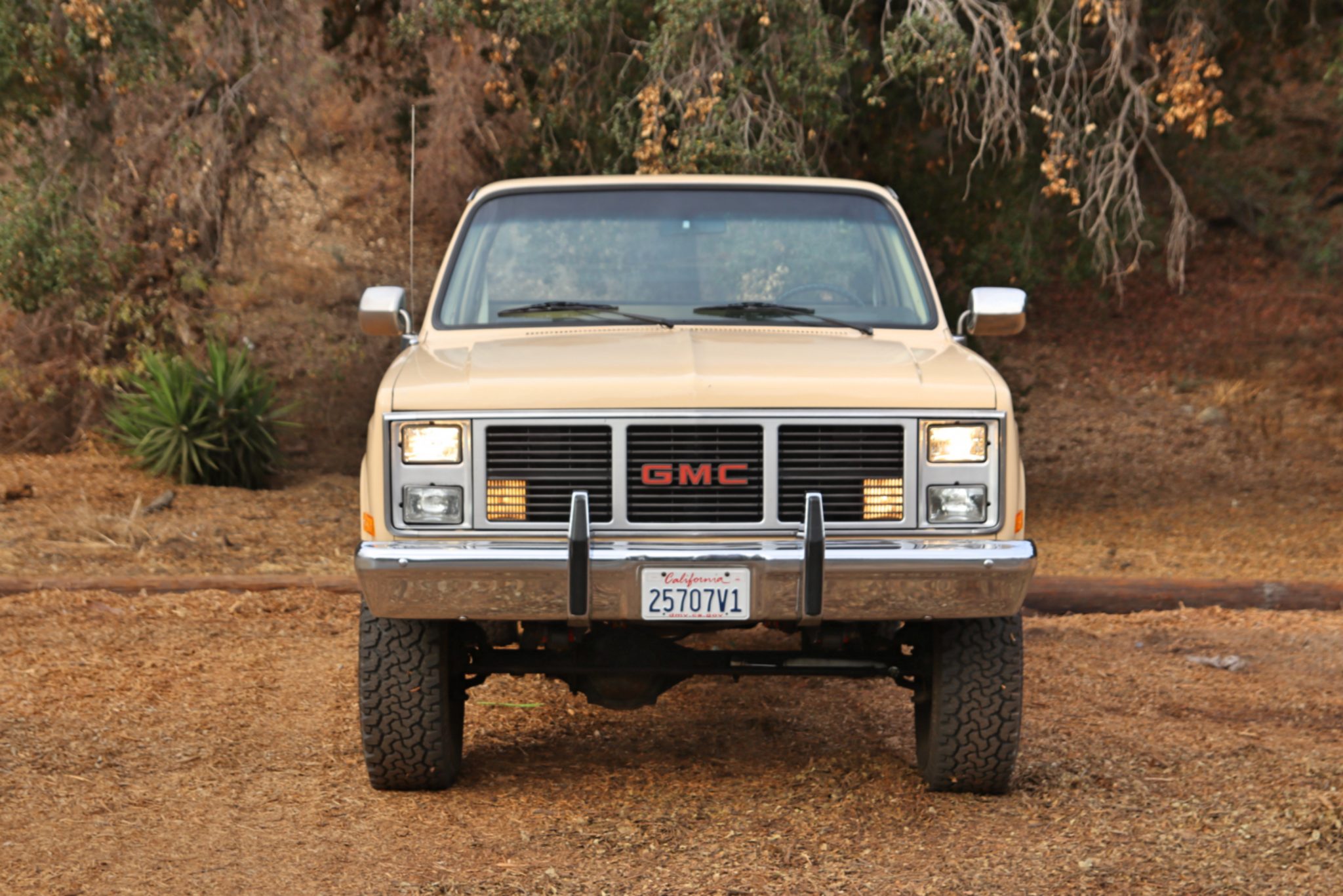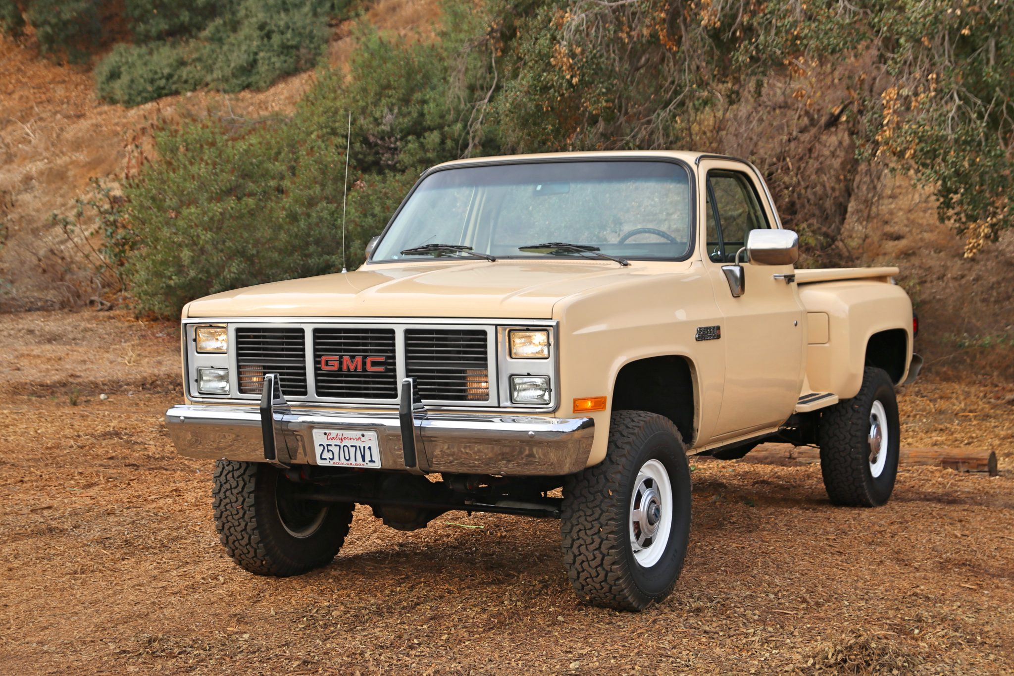 The 16″ steel wheels have bright hubcaps and are mounted with 285/75 BFGoodrich All-Terrain T/A KO tires. The power steering pump and front brake pads were replaced in 2022 along with sway bar and shift linkage bushings. The brake master cylinder, booster, and proportioning valve were replaced in 2023.