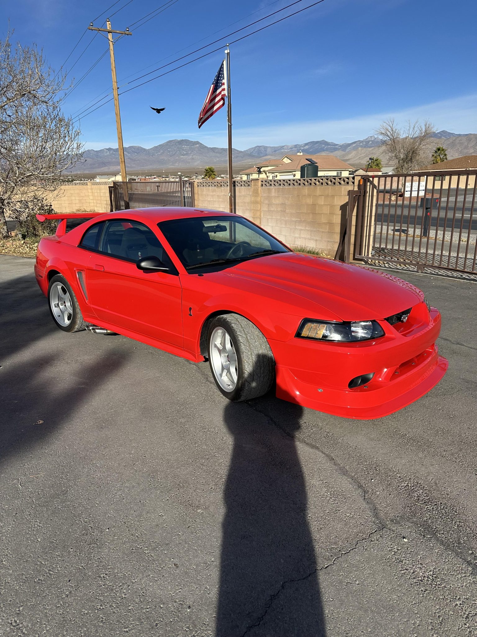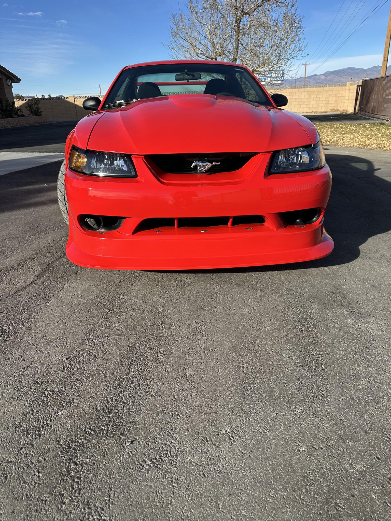 The 18″ five-spoke cast aluminum wheels are mounted with 265/40 BFGoodrich g-Force T/A tires. The Cobra R package features an independent rear suspension along with Bilstein shocks, stiffer Eibach springs, and larger sway bars than the contemporary SN95 Mustang. Braking is handled by four-wheel ventilated discs with four-piston Brembo front calipers.