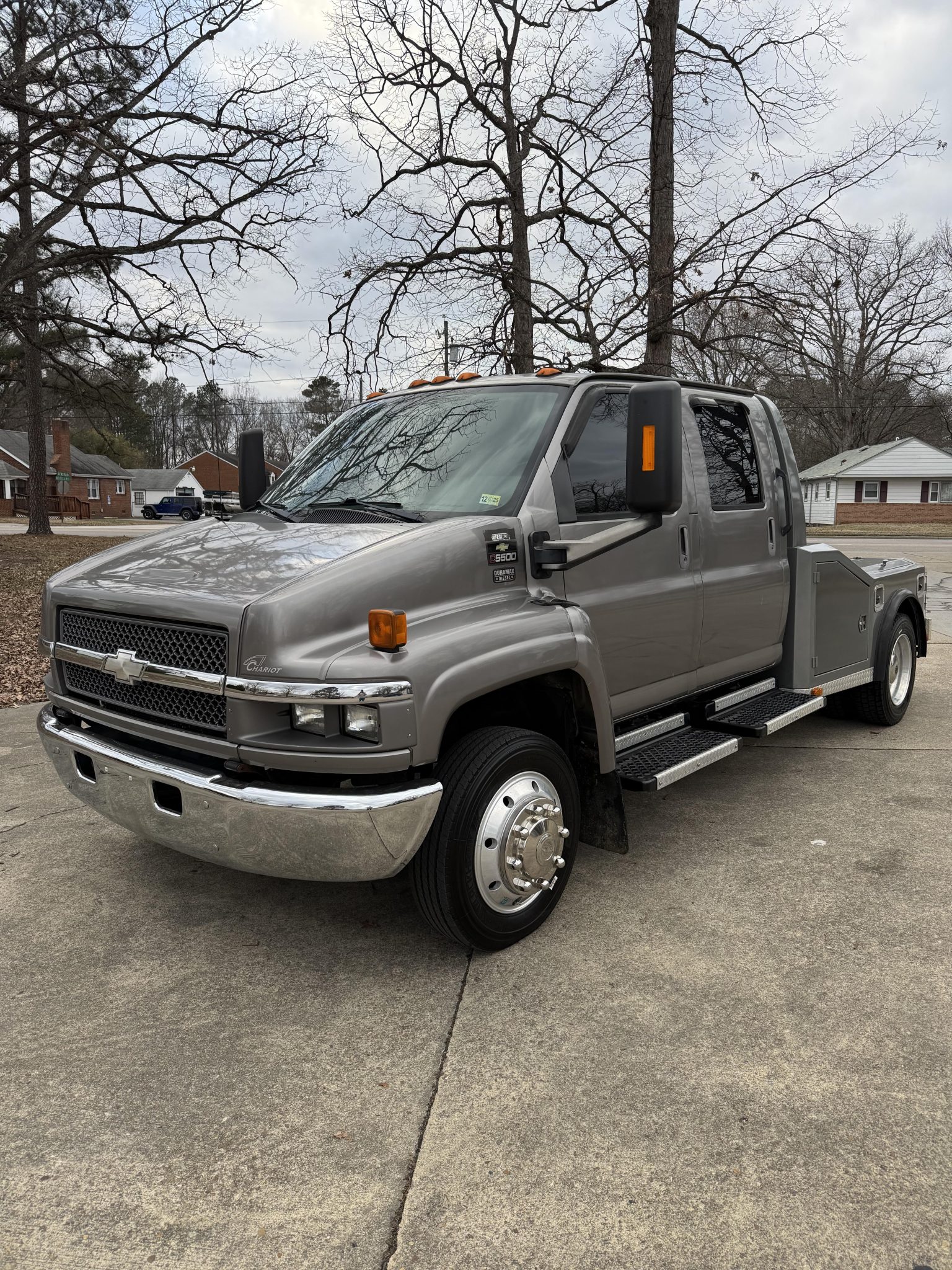 The 19.5″ wheels are mounted with Blackhawk tires. The trucks rides on an adjustable Kelderman air suspension system.