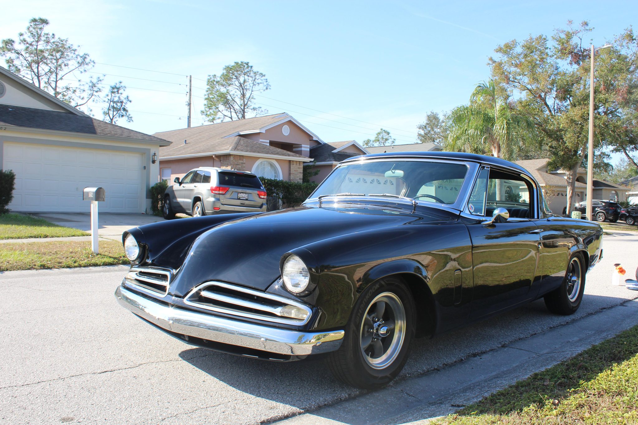 Crestline 15″ mag wheels wear Studebaker center caps and staggered Hankook Kinergy ST tires measuring 205/75 and 215/75. The front springs have been cut by one coil, and traction bars have been added at the rear. Braking is provided by discs all around. The rear brake hoses were replaced in 2021.