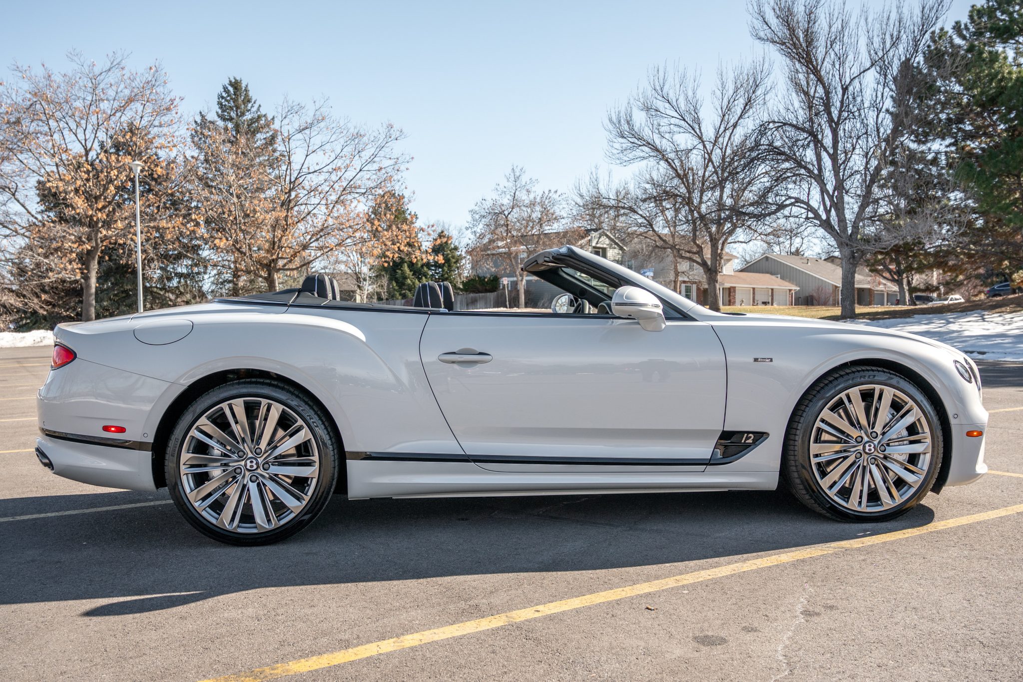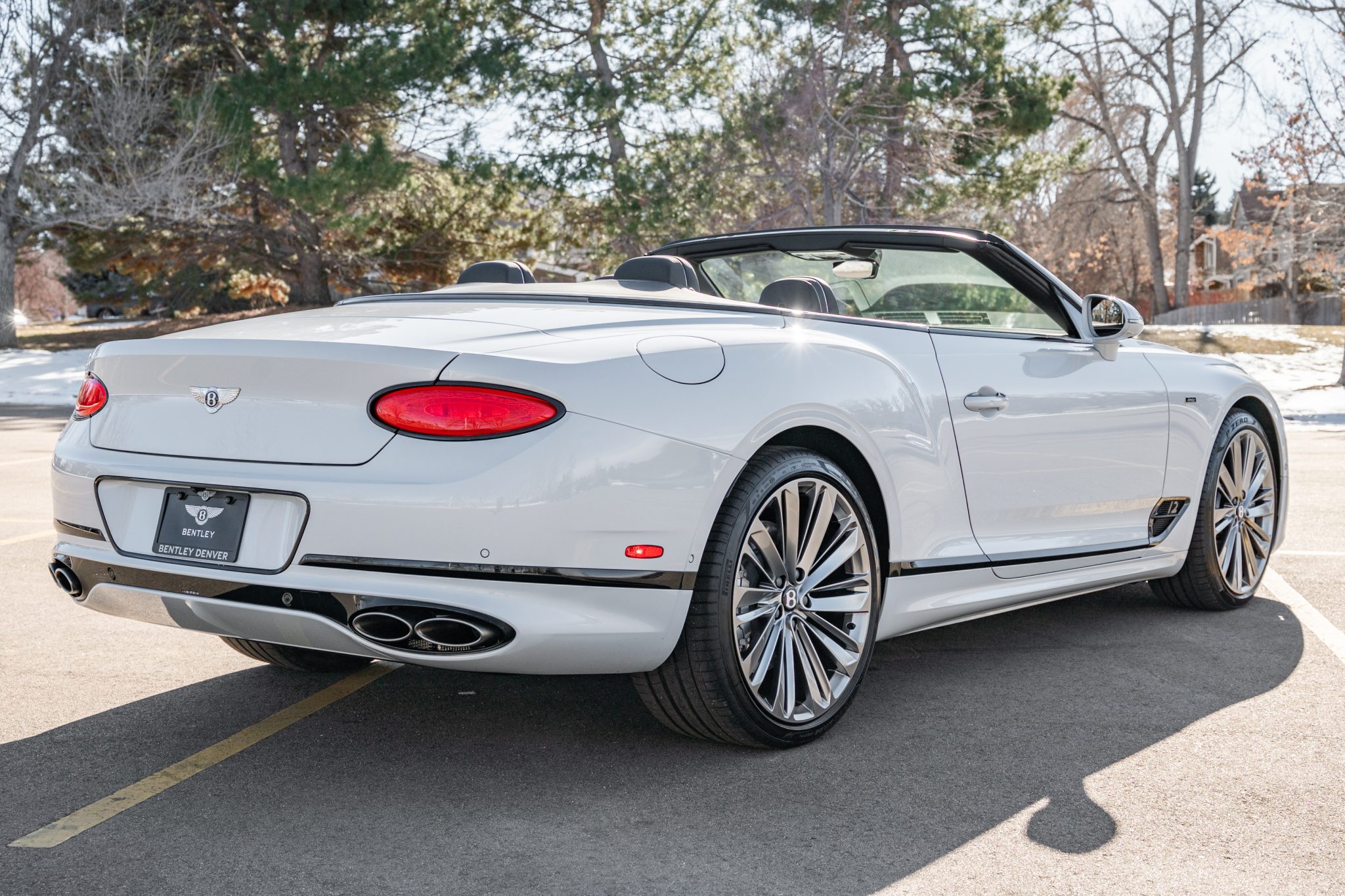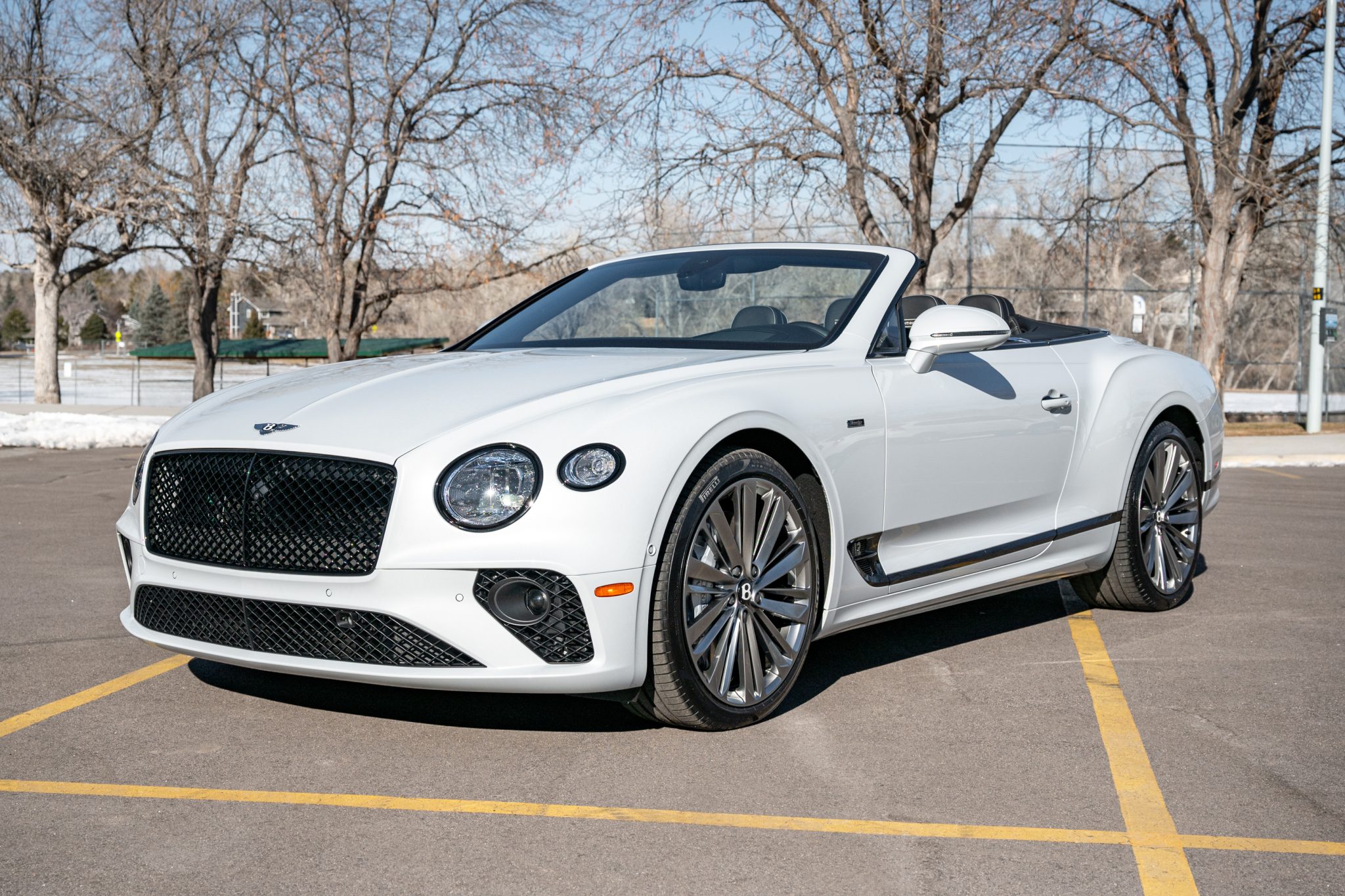 The 22″ Speed split 10-spoke alloy wheels are mounted with 275/35 front and 315/30 rear Pirelli P Zero tires, and braking is handled by ventilated discs at each corner. The car came factory equipped with an electronically controlled torque-vectoring rear differential as well as an air suspension featuring Continuous Damping Control. Stopping power is provided by four-wheel disc brakes with silver-finished calipers.