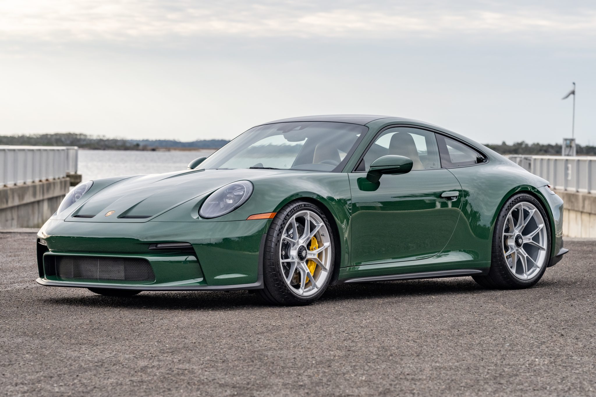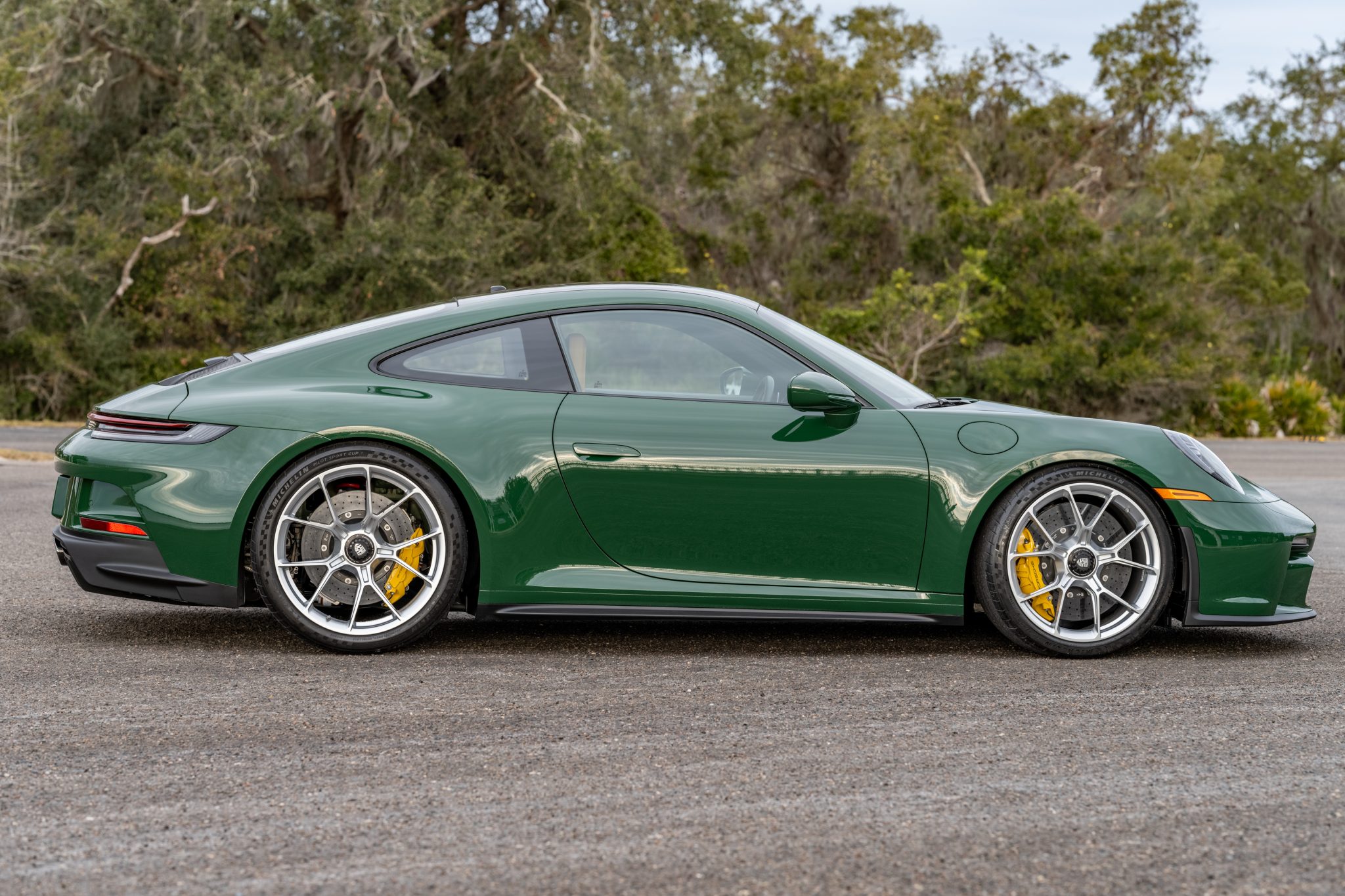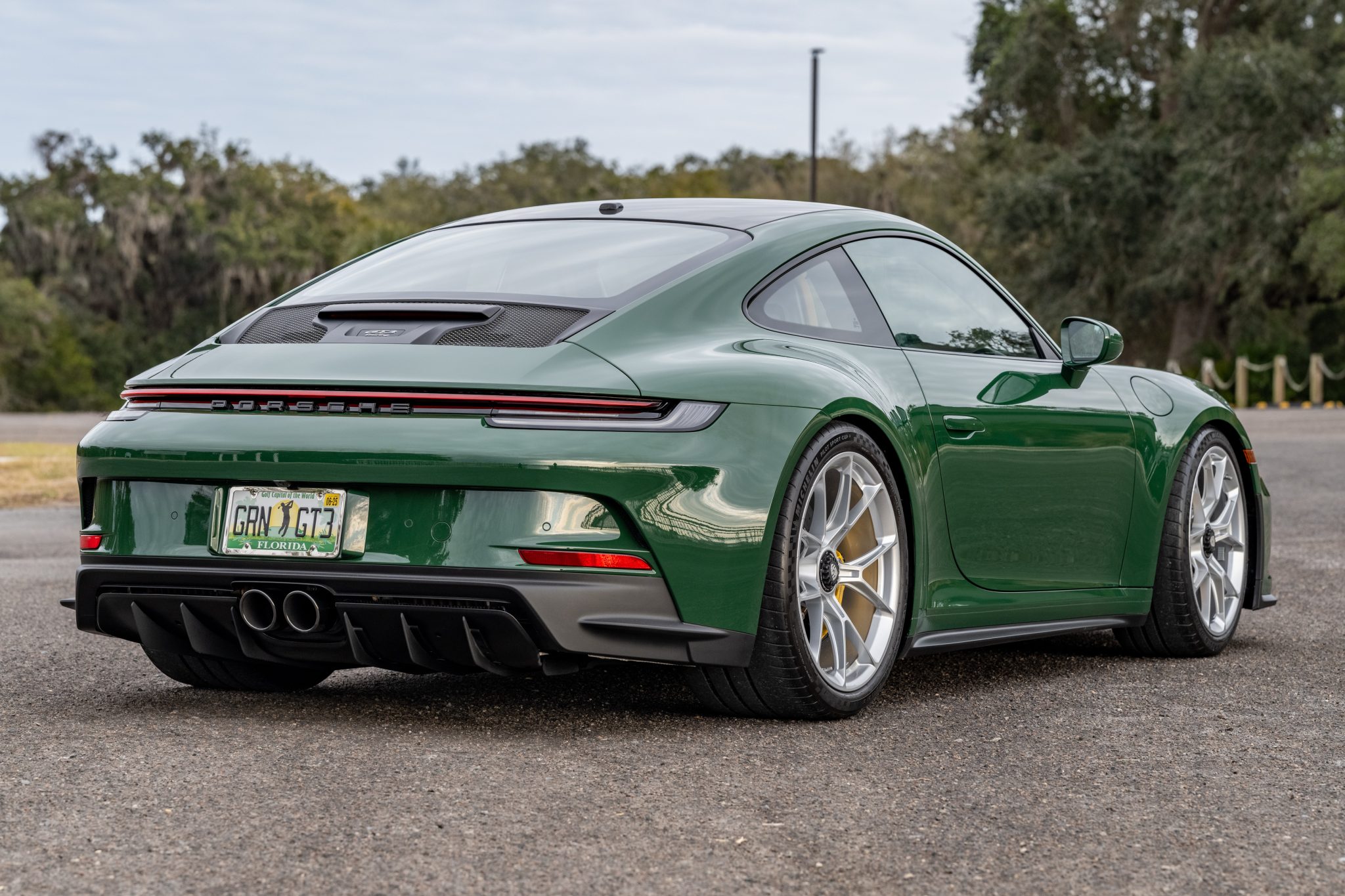The 20″ front and 21″ rear GT3 center-lock wheels are mounted with Michelin Pilot Sport Cup 2 tires. Stopping power is provided by Porsche Ceramic Composite Brakes (PCCB) with cross-drilled and ventilated discs at each corner. The car is equipped with a front-axle lift system and rear-axle steering.