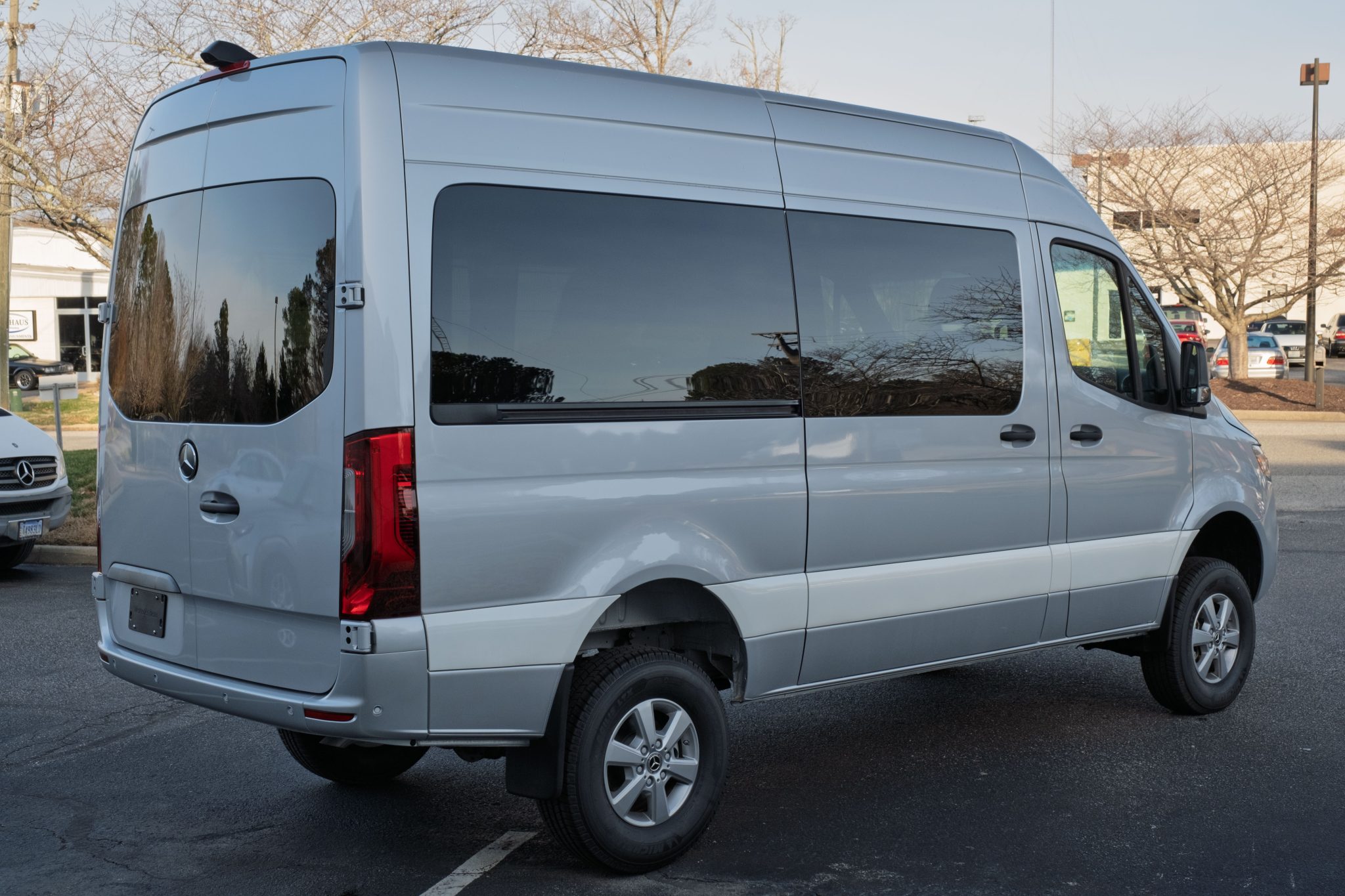 The 16″ six-spoke alloy wheels are mounted with Michelin tires. The van rides on independent front suspension and a solid rear axle, and braking is handled by discs at all four corners. The chassis is equipped with an Electronic Stability Program (ESP) and the RV Suspension Bundle.