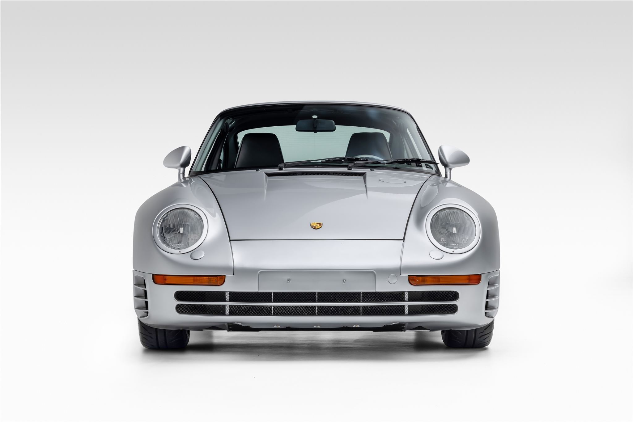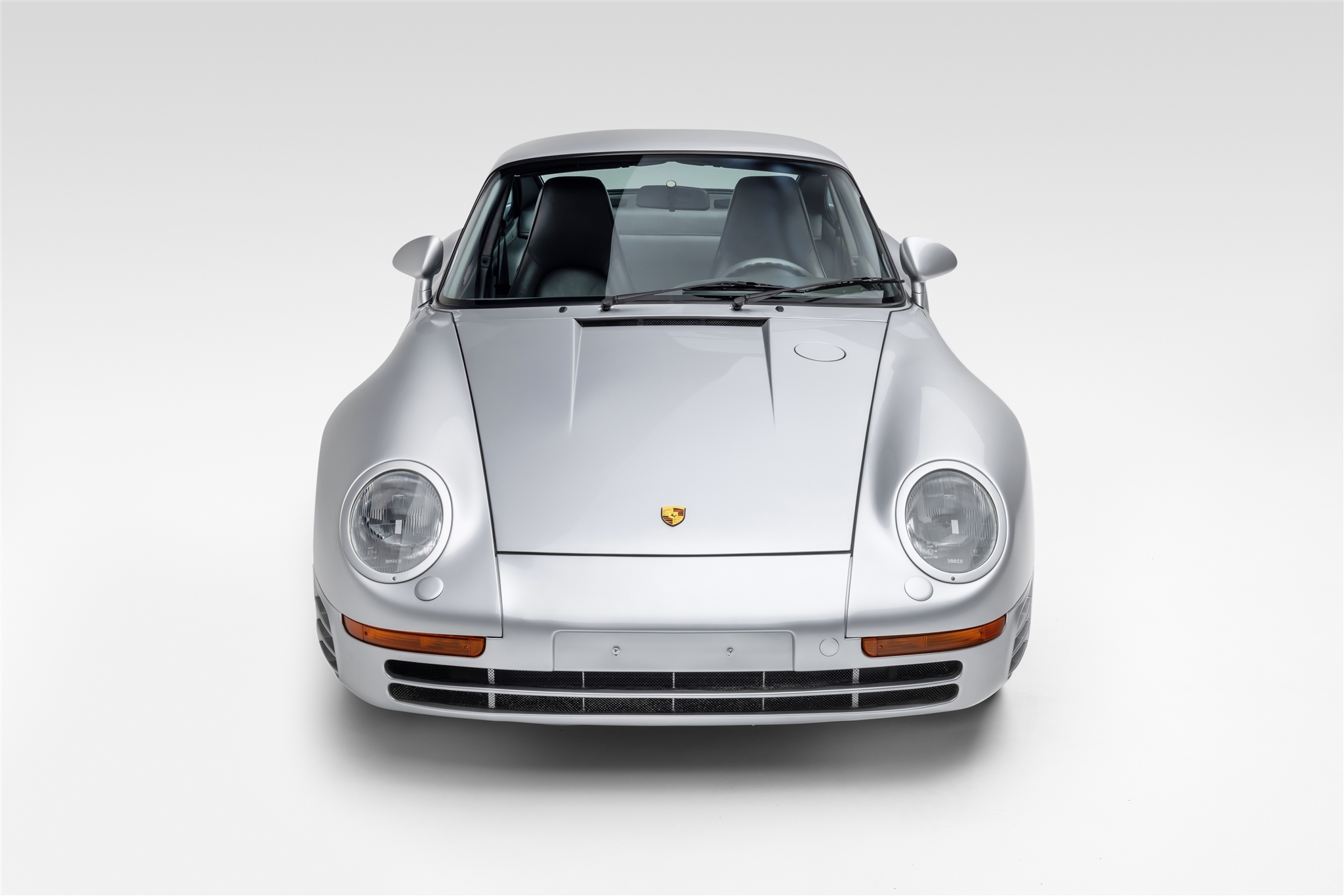 Construction of the 959 was carried out at Karosserie Baur in Stuttgart, Germany, and incorporated a steel shell with fiberglass-reinforced Kevlar body panels, Nomex floors, a polyurethane nose section, and an aluminum front trunk lid and doors. Styling was designed to eliminate aerodynamic lift while minimizing drag and includes flared fenders, covered headlights, an integrated rear wing, and intake vents on each flank. This example is finished in Silver Metallic (L980) and is said to have received paintwork on its doors under previous ownership, reportedly to address creasing in the metal due to the side-mirror mounting design. The paint protective film was replaced in late 2024 with the application of a body-color film combined with an additional clear film. Most of the listing photos were taken prior to the film replacement, and closeups of the new film can be seen in the photo gallery below.