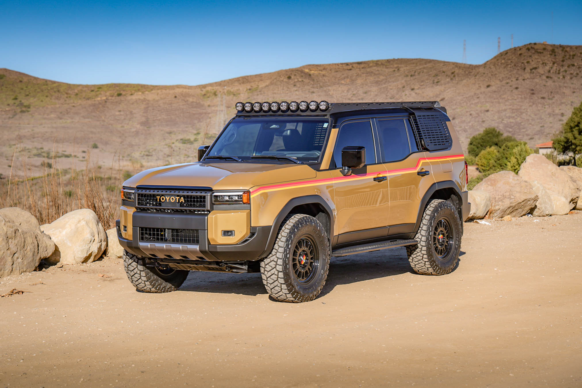 Black-finished 18″ Method Race wheels are mounted with 35×12.5″ Toyo Open Country R/T Trail tires. A Westcott Designs 2.5″ lift kit has been added. The truck is equipped with a front stabilizer bar disconnect mechanism along with Crawl Control, Multi-Terrain Select, and Downhill Assist Control.